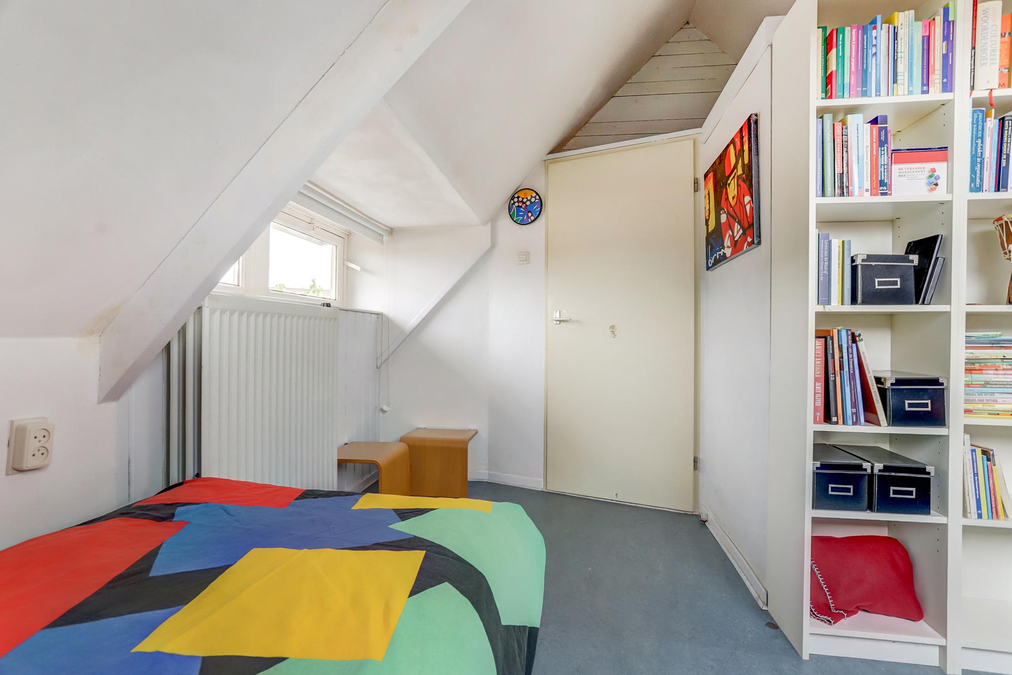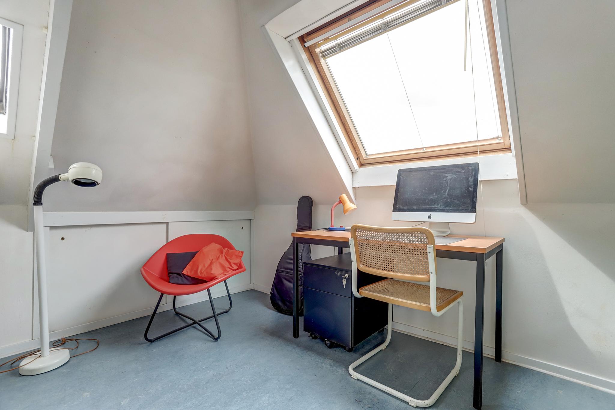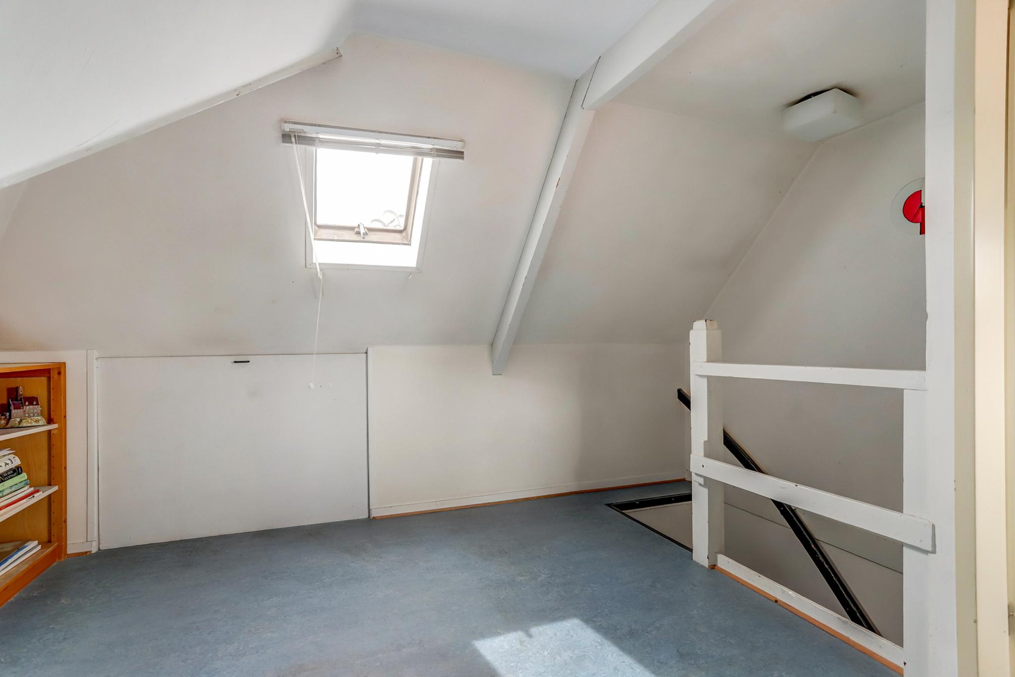 Tweede verdieping: via een vaste trap bereik je een ruime voorzolder waar ook de cv-ketel staat. Daarnaast bevindt zich een lichte gezellige zolder slaapkamer met groot Velux raam en de orginele dakkapel. Op deze verdieping is veel bergruimte.