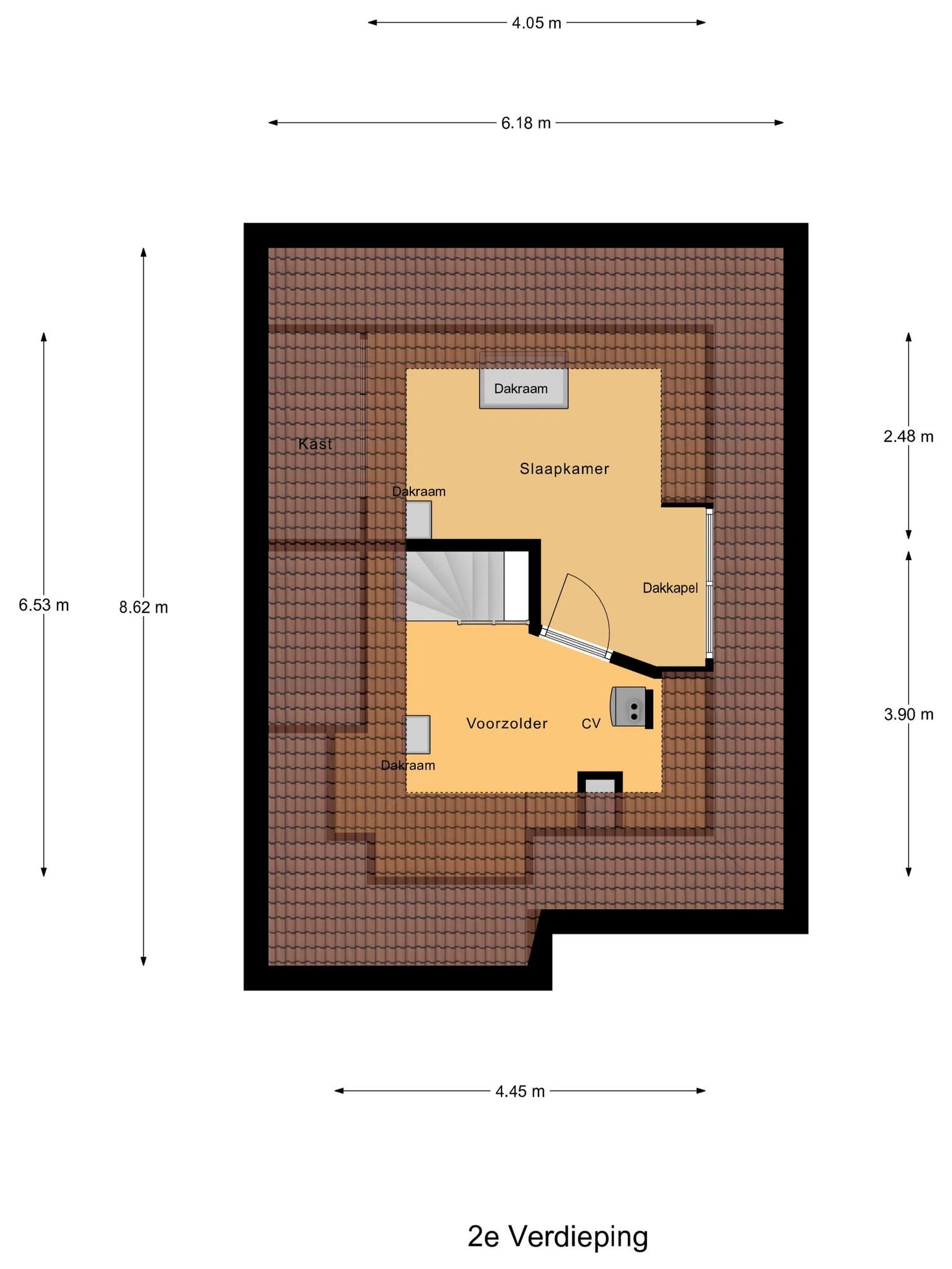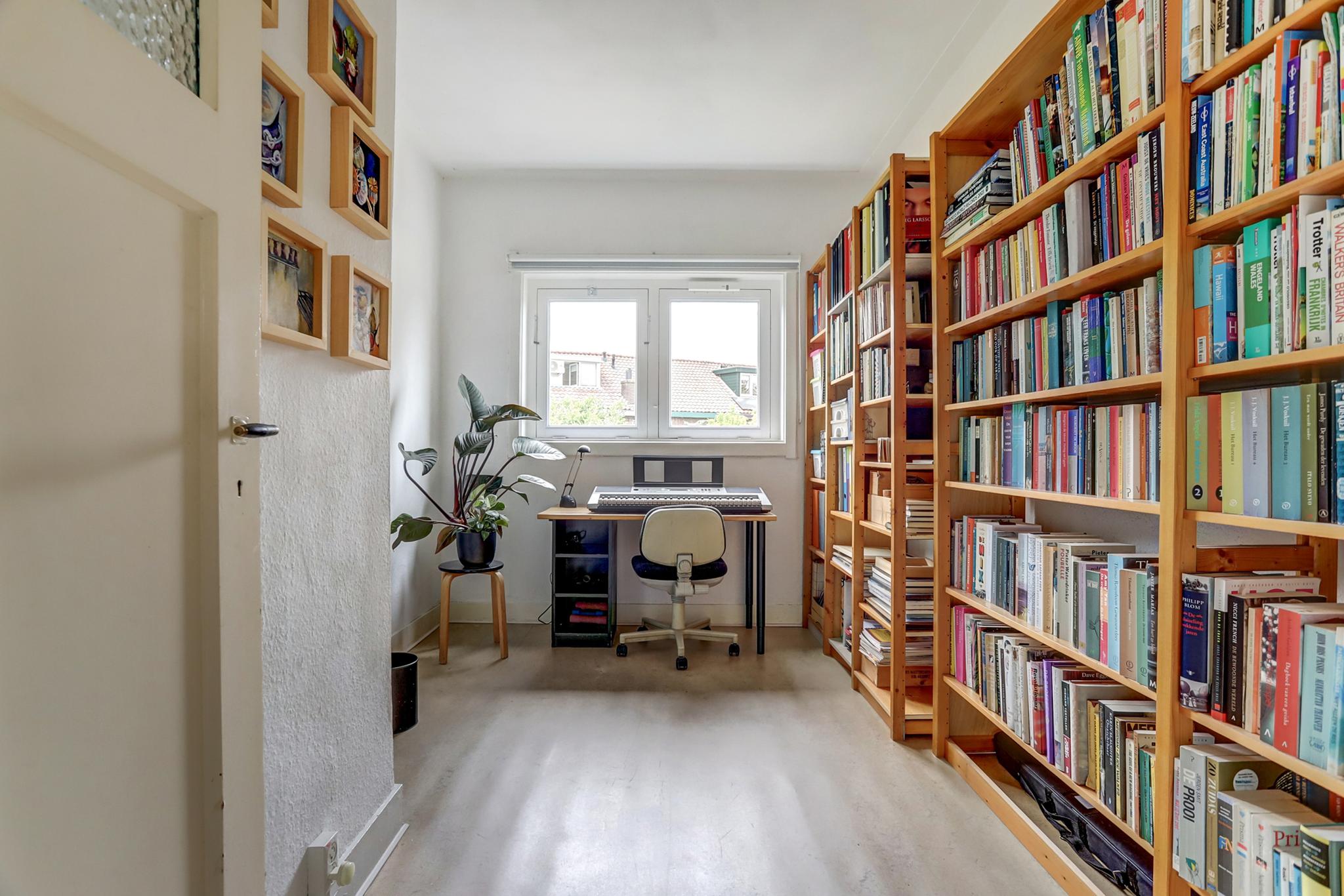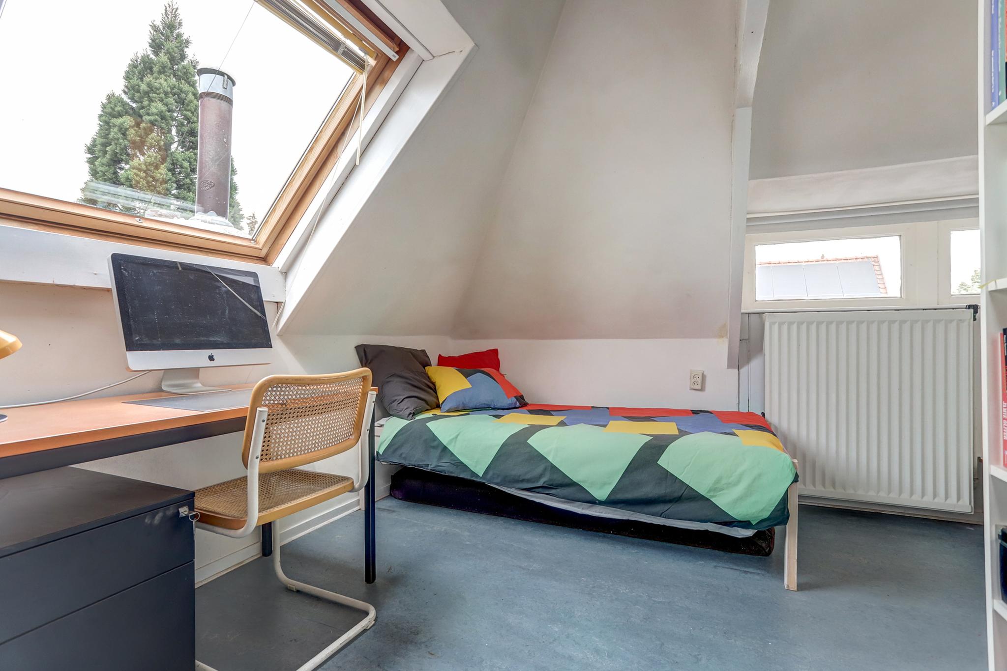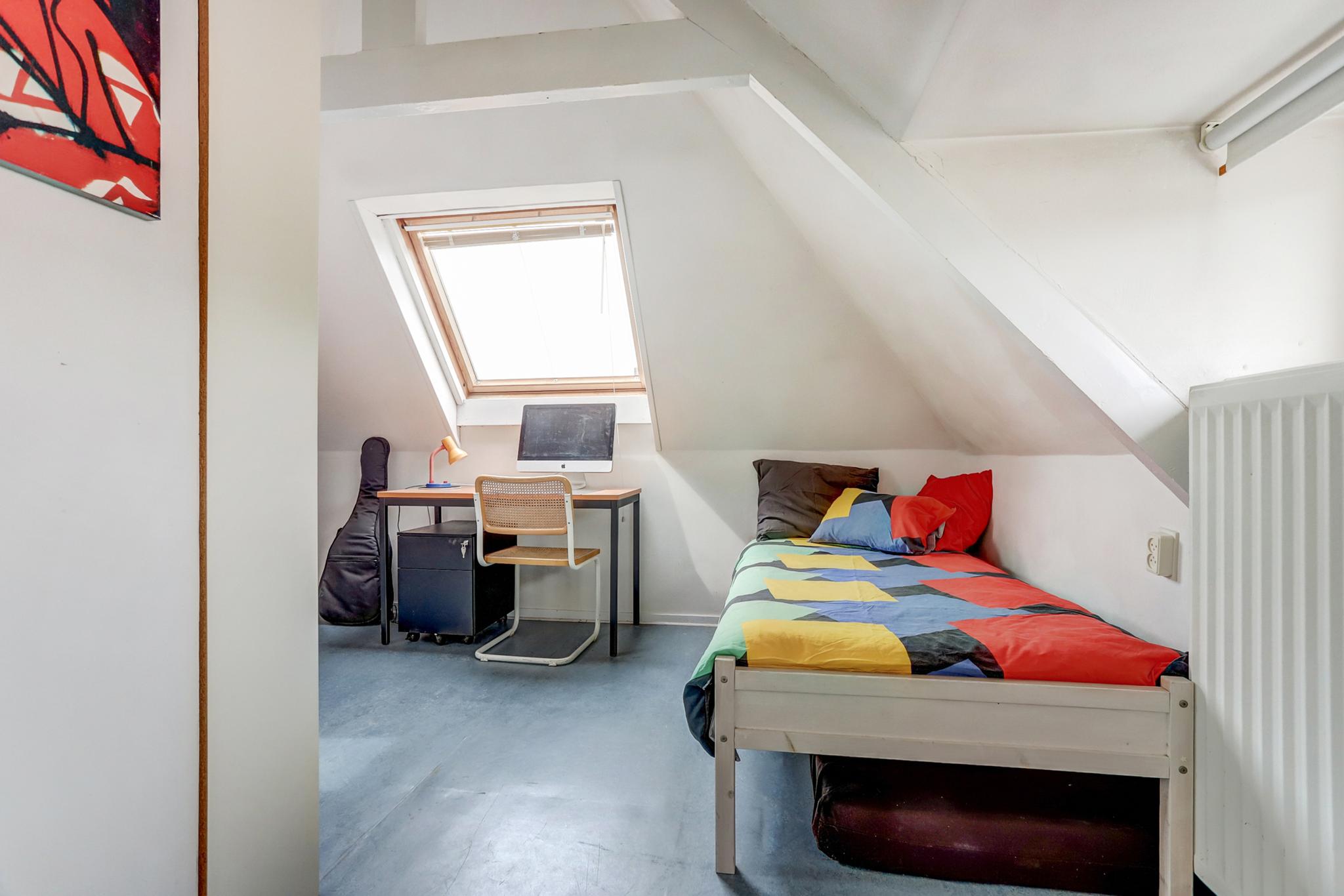 Tweede verdieping: via een vaste trap bereik je een ruime voorzolder waar ook de cv-ketel staat. Daarnaast bevindt zich een lichte gezellige zolder slaapkamer met groot Velux raam en de orginele dakkapel. Op deze verdieping is veel bergruimte.