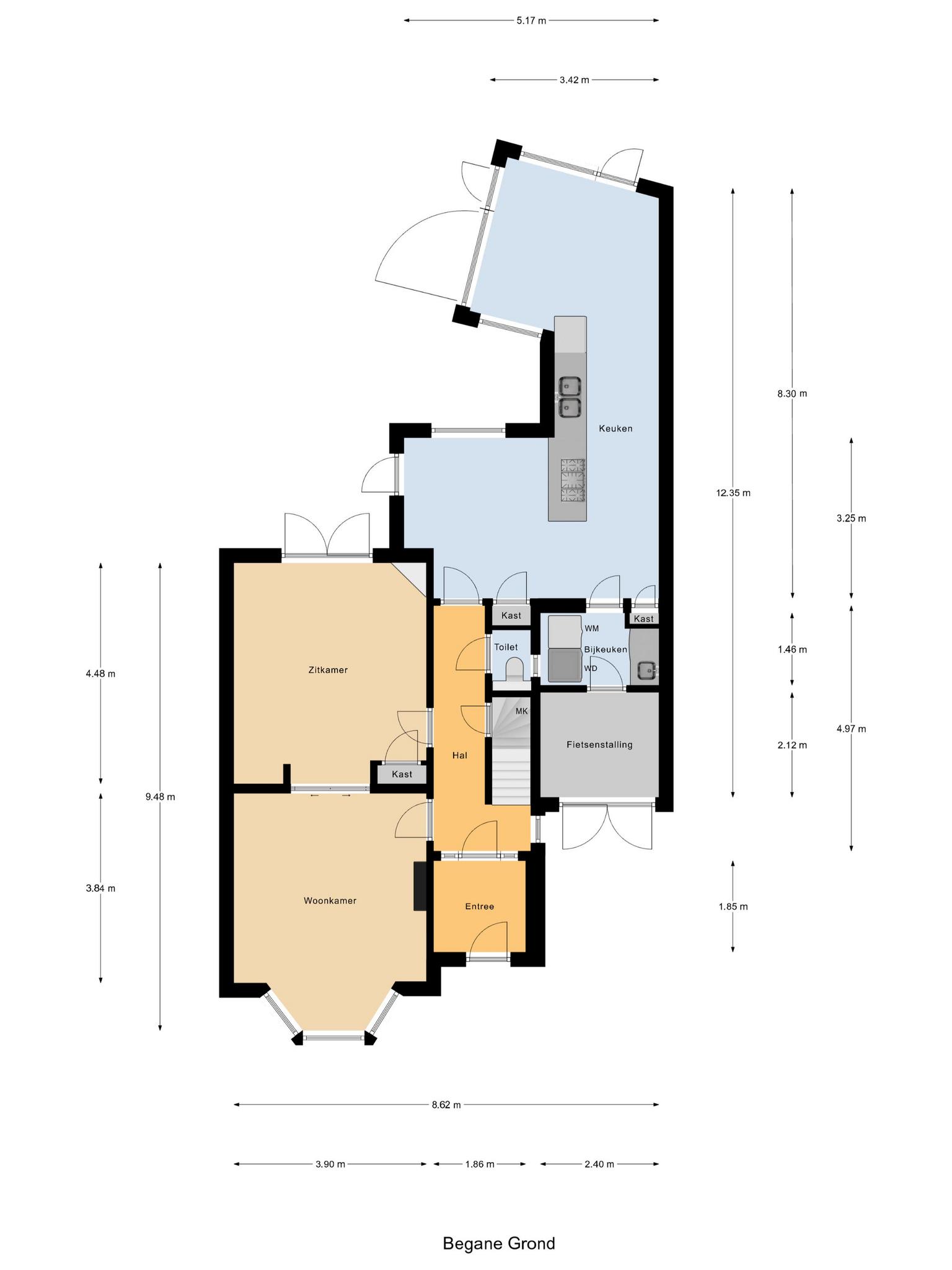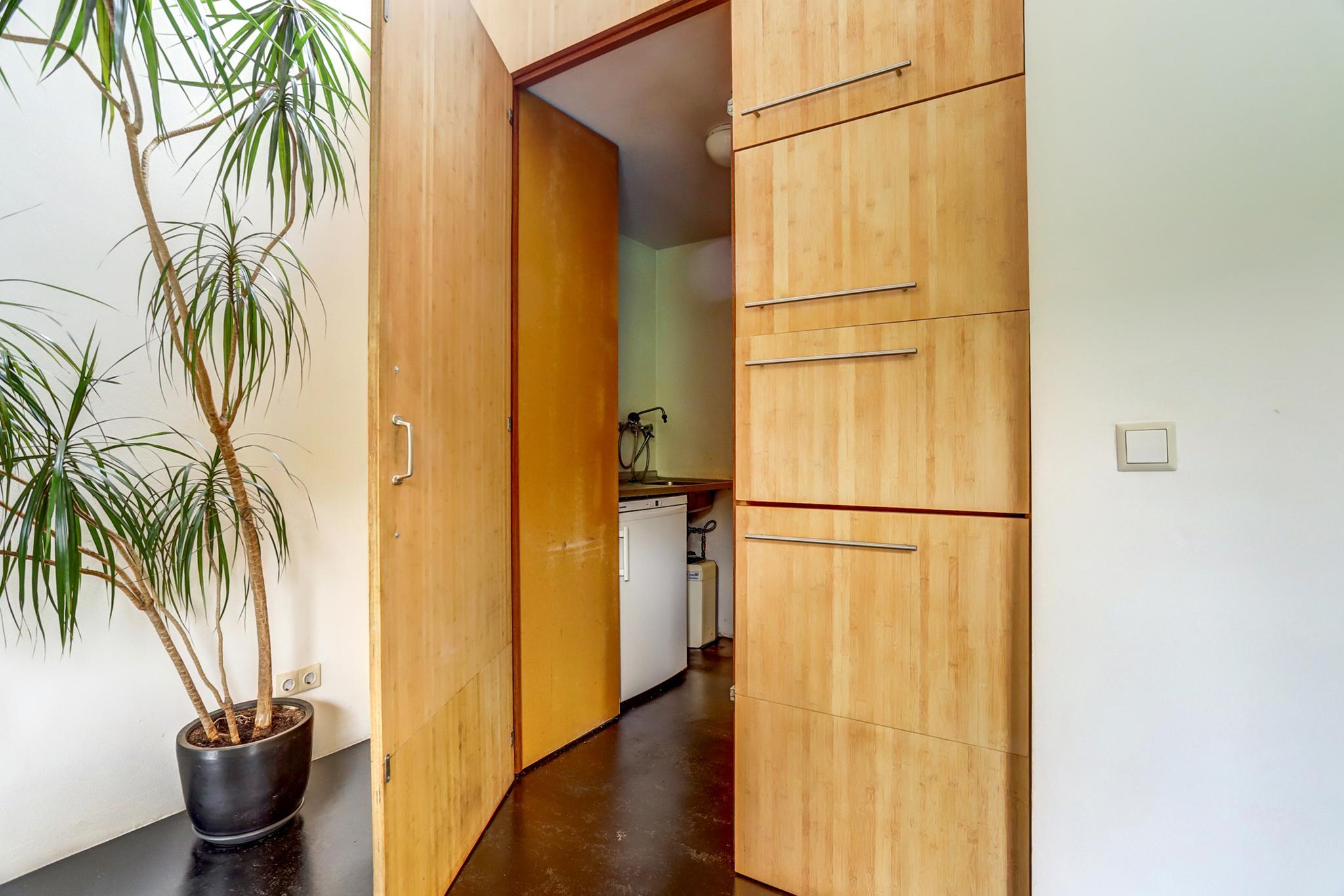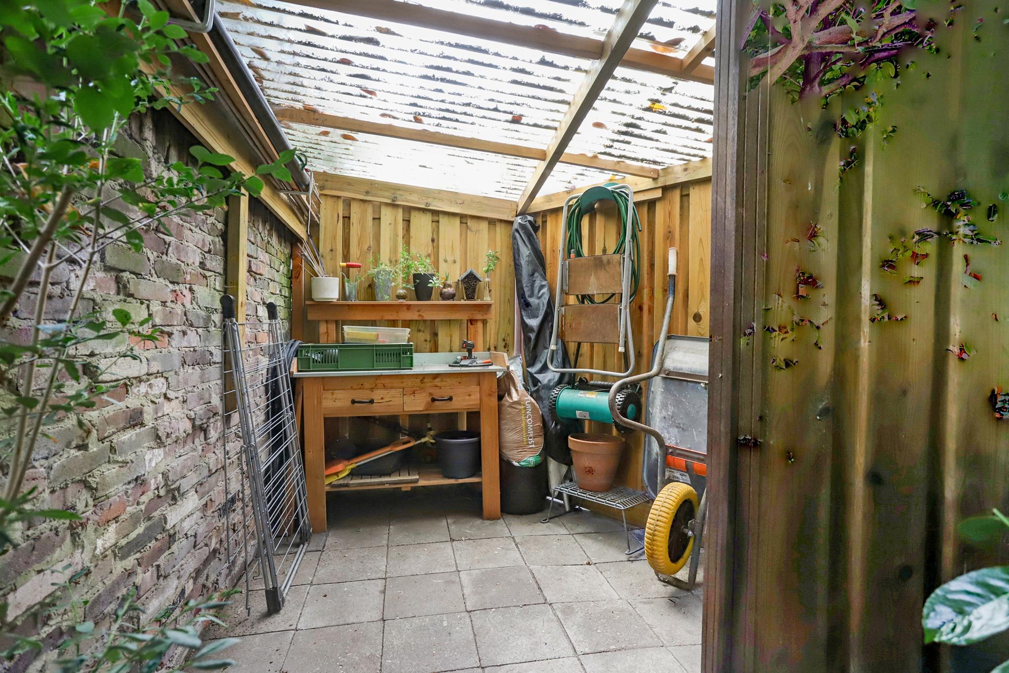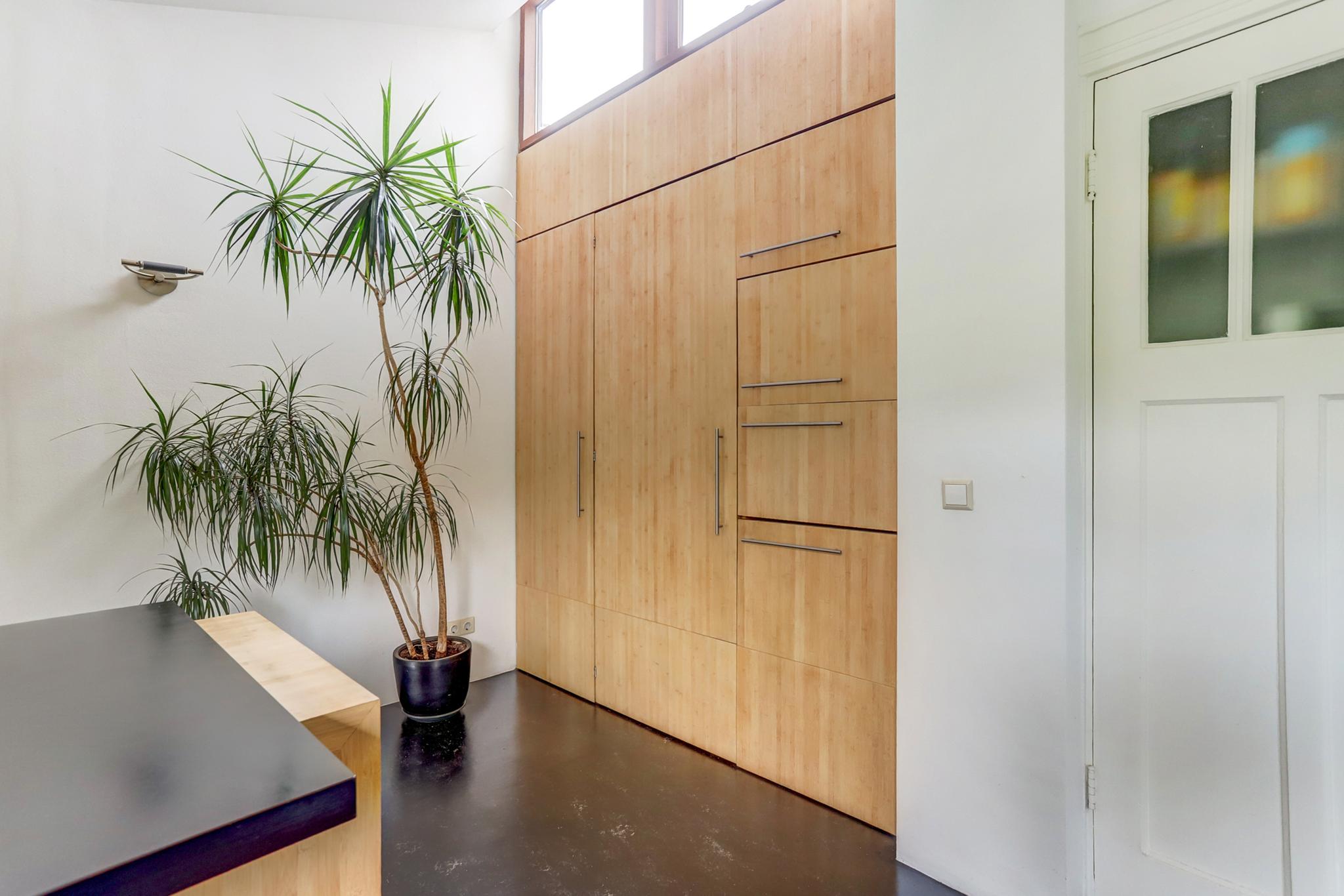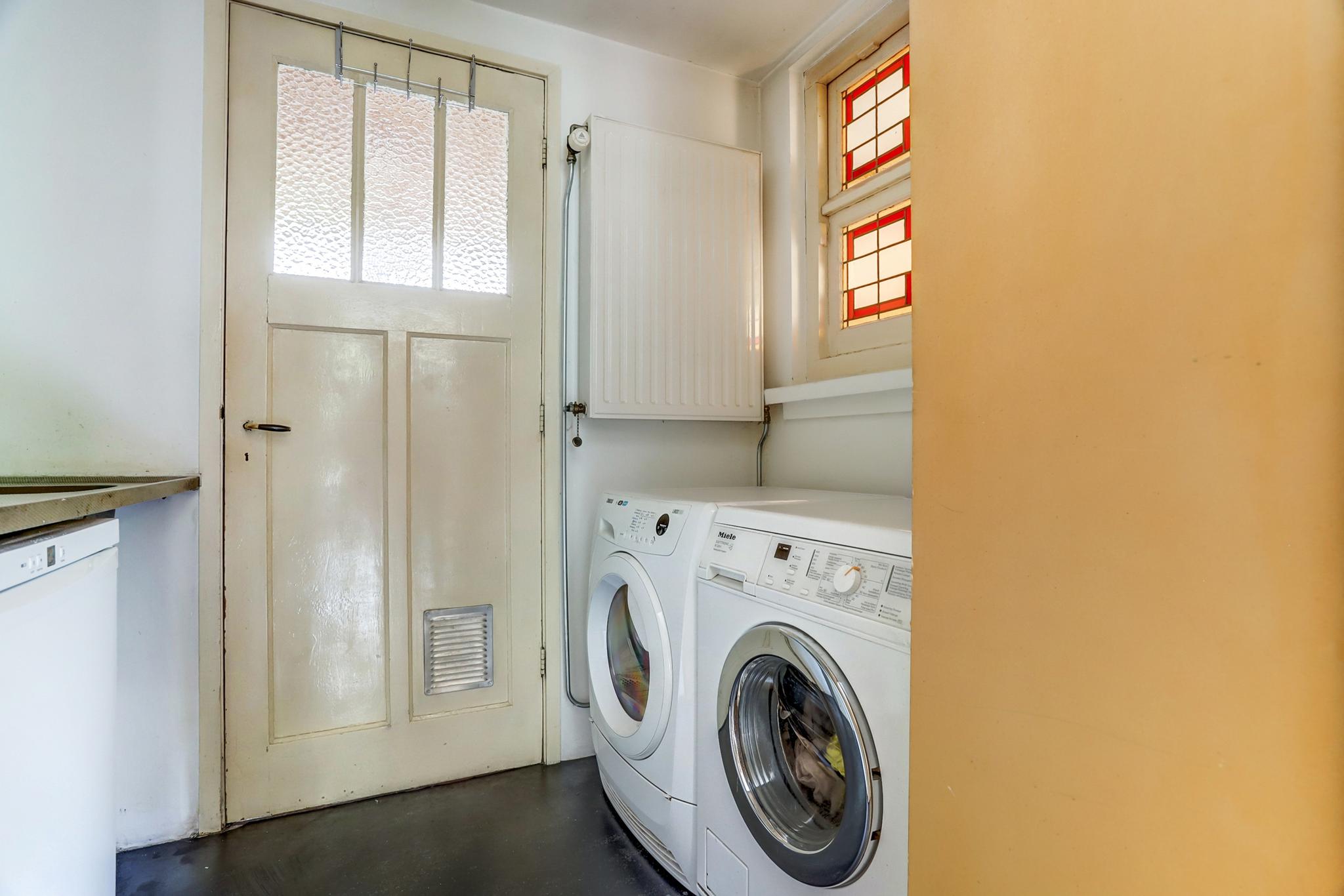 Via een ingenieuze constructie is vanuit de keuken de bijkeuken bereikbaar, voorzien van spoelbak en aanrecht, de wasmachine-en drogeraansluiting en plaats voor diepvrieskast. Achter de bijkeuken bereik je de berging waar voldoende ruimte is voor meerdere fietsen en andere spullen.