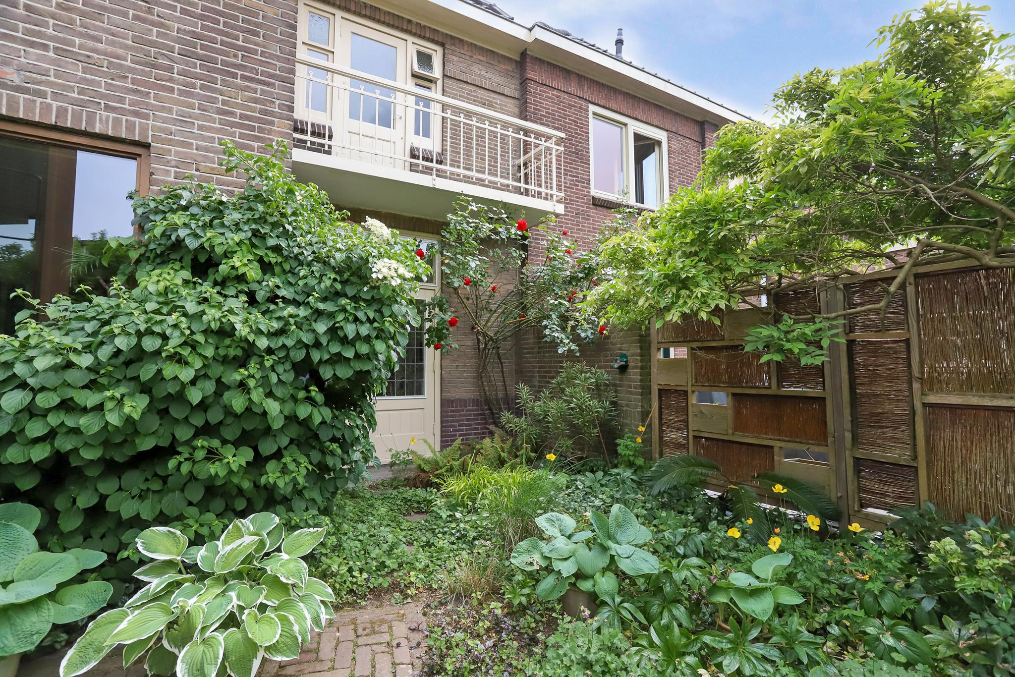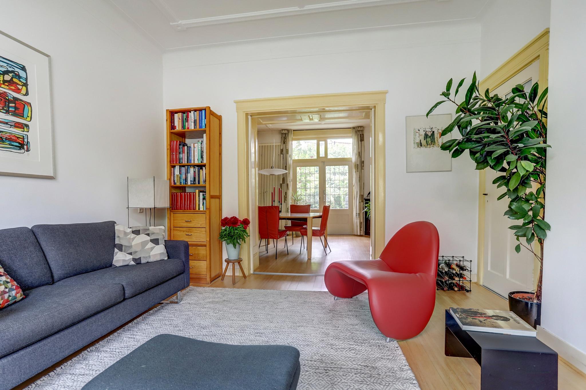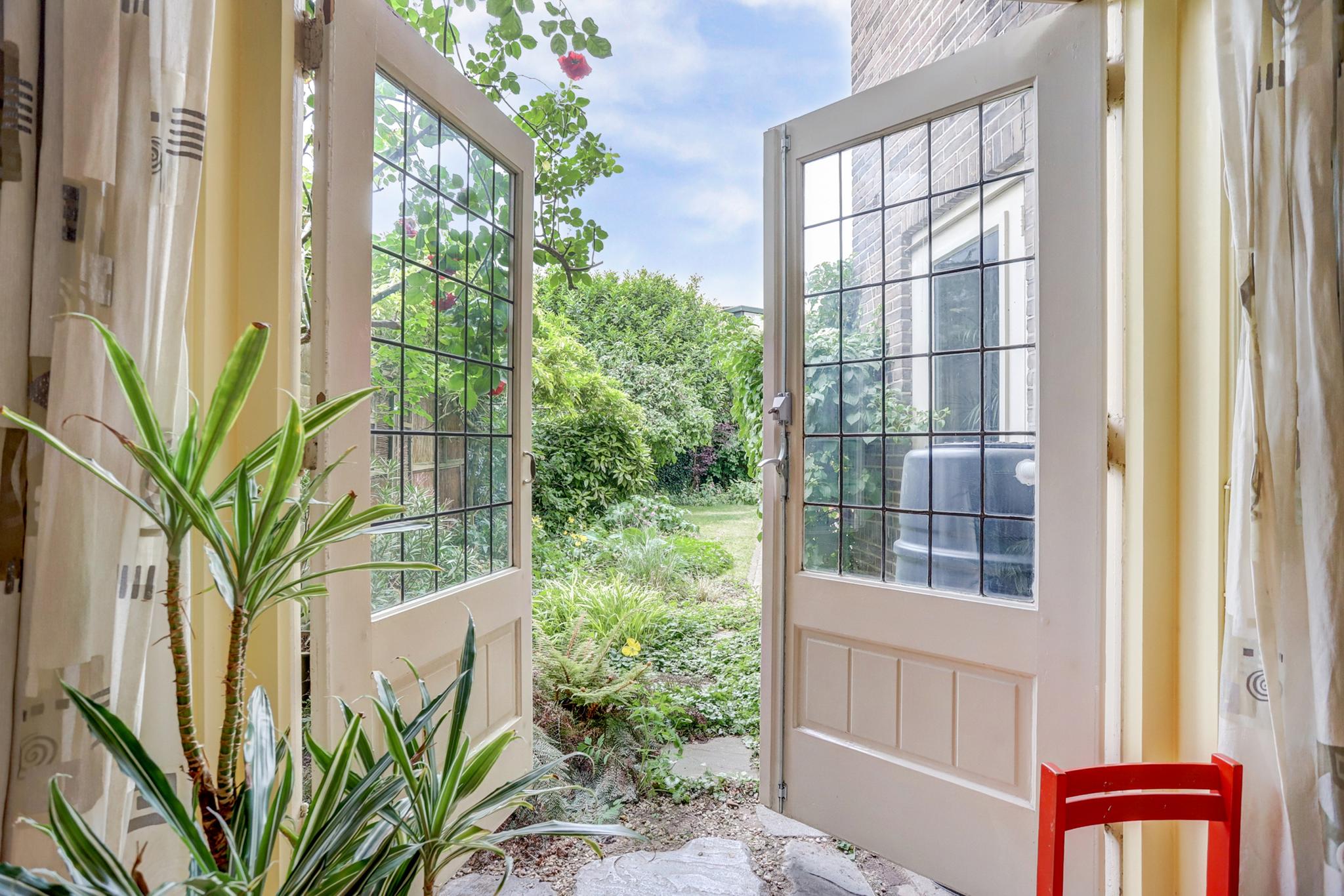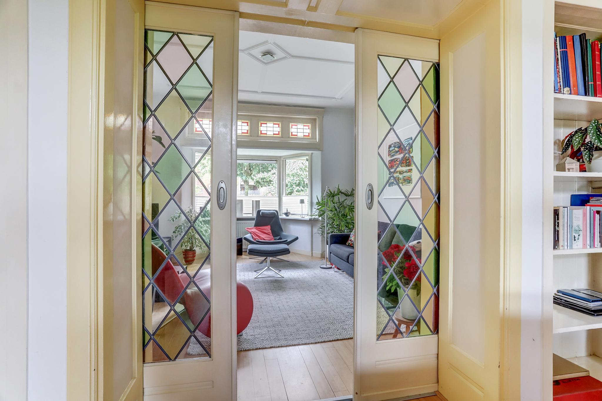 Begane grond: entree via een vestibule, gangpartij met toegang tot de provisiekelder en het toilet. De sfeervolle woonkamer en-suite heeft een fraaie erker aan de voorzijde, de originele schuifdeuren en een gezellige sfeer. De openslaande deuren aan de achterzijde geven toegang tot de mooie, diepe en zonnige tuin. Via de gang is eveneens de bijzondere woonkeuken bereikbaar. Deze lichte ruimte heeft een moderne inrichting inclusief diverse apparatuur en de ruimte voor een eettafel. Vanuit de woonkeuken zijn er verschillende toegangen via openslaande deuren naar omringend terras en tuin.