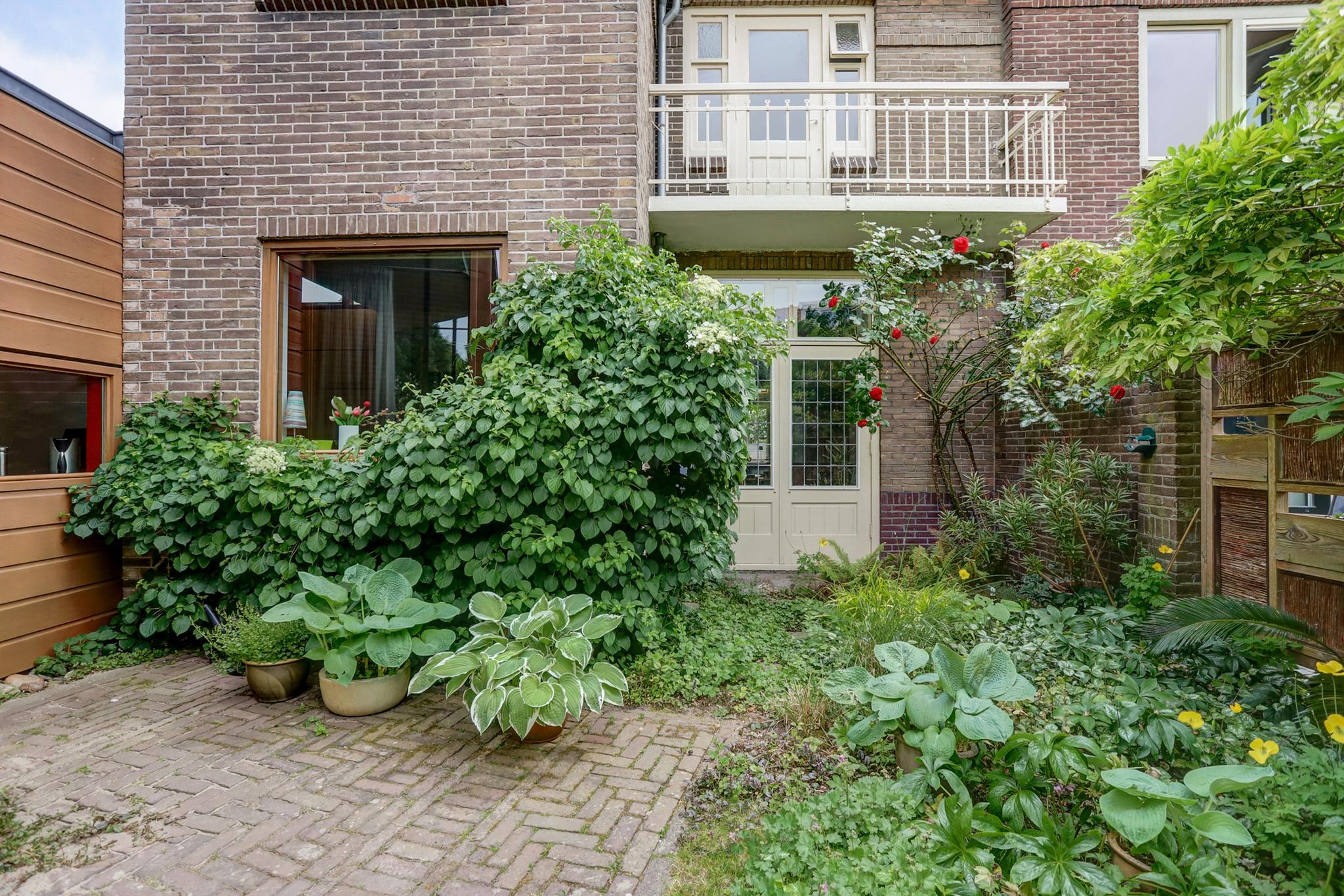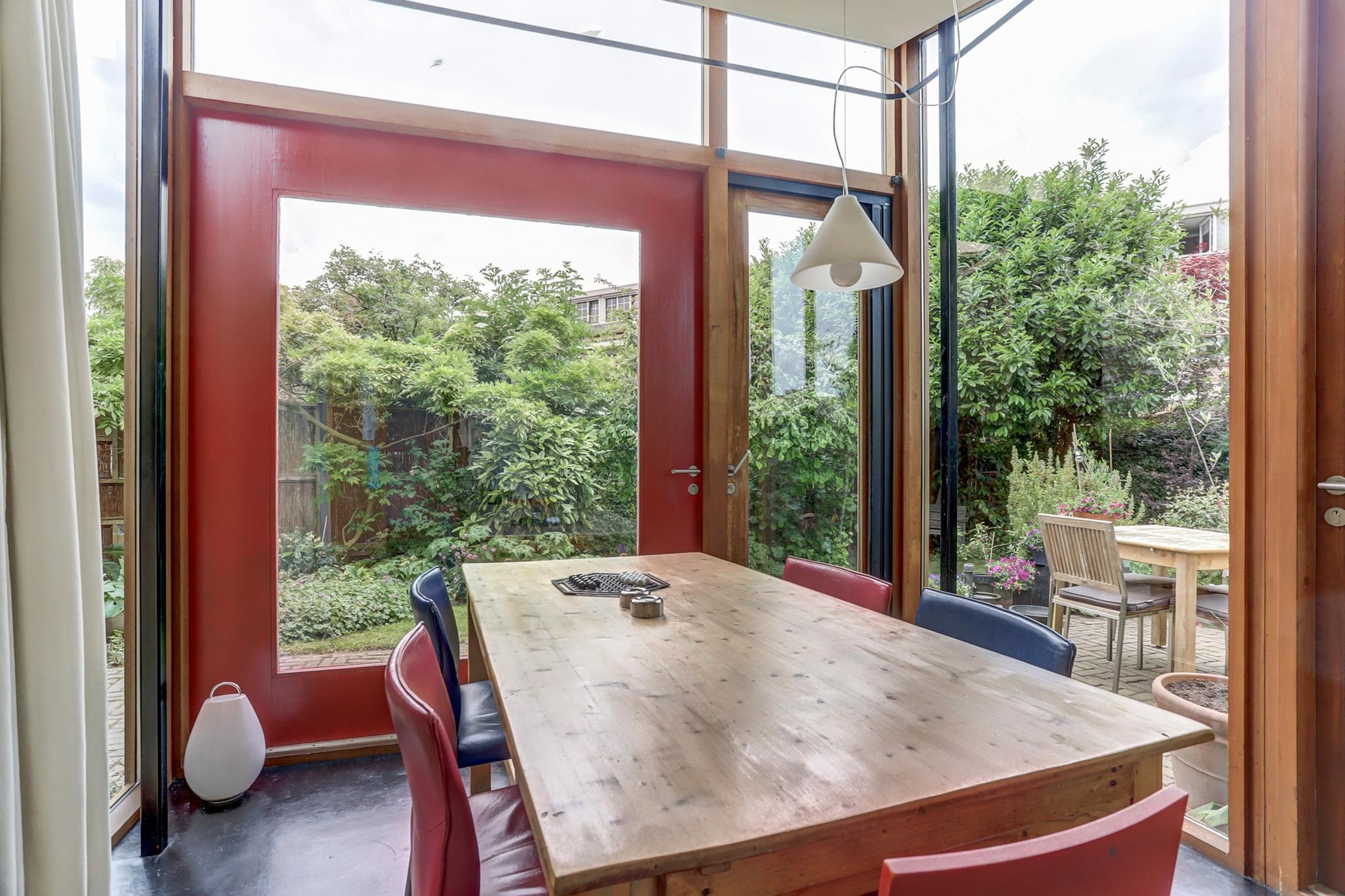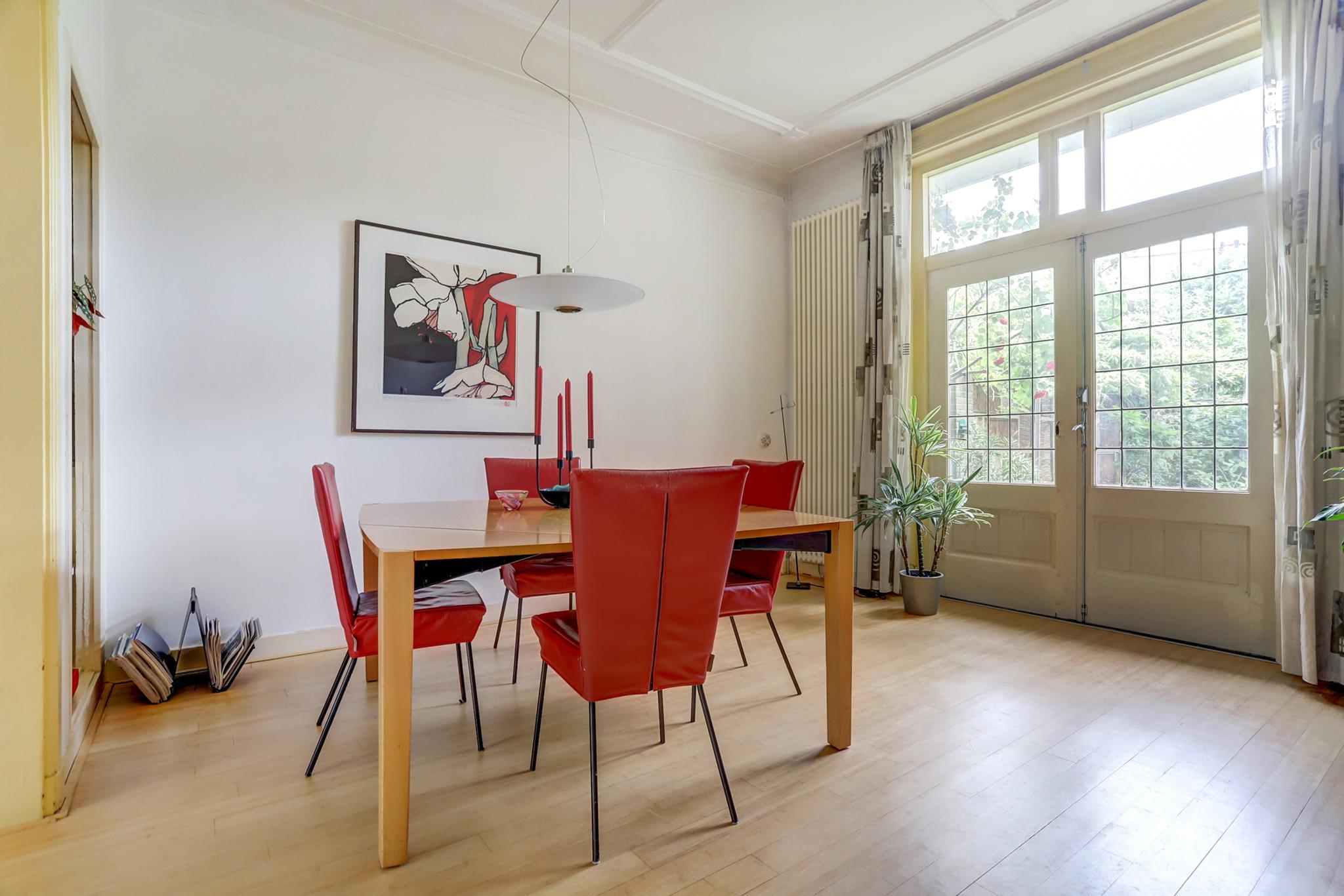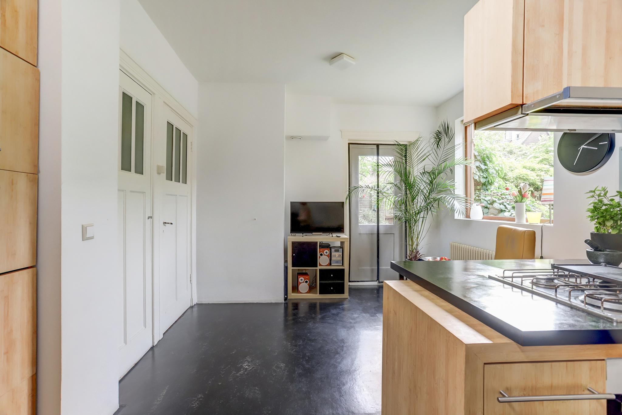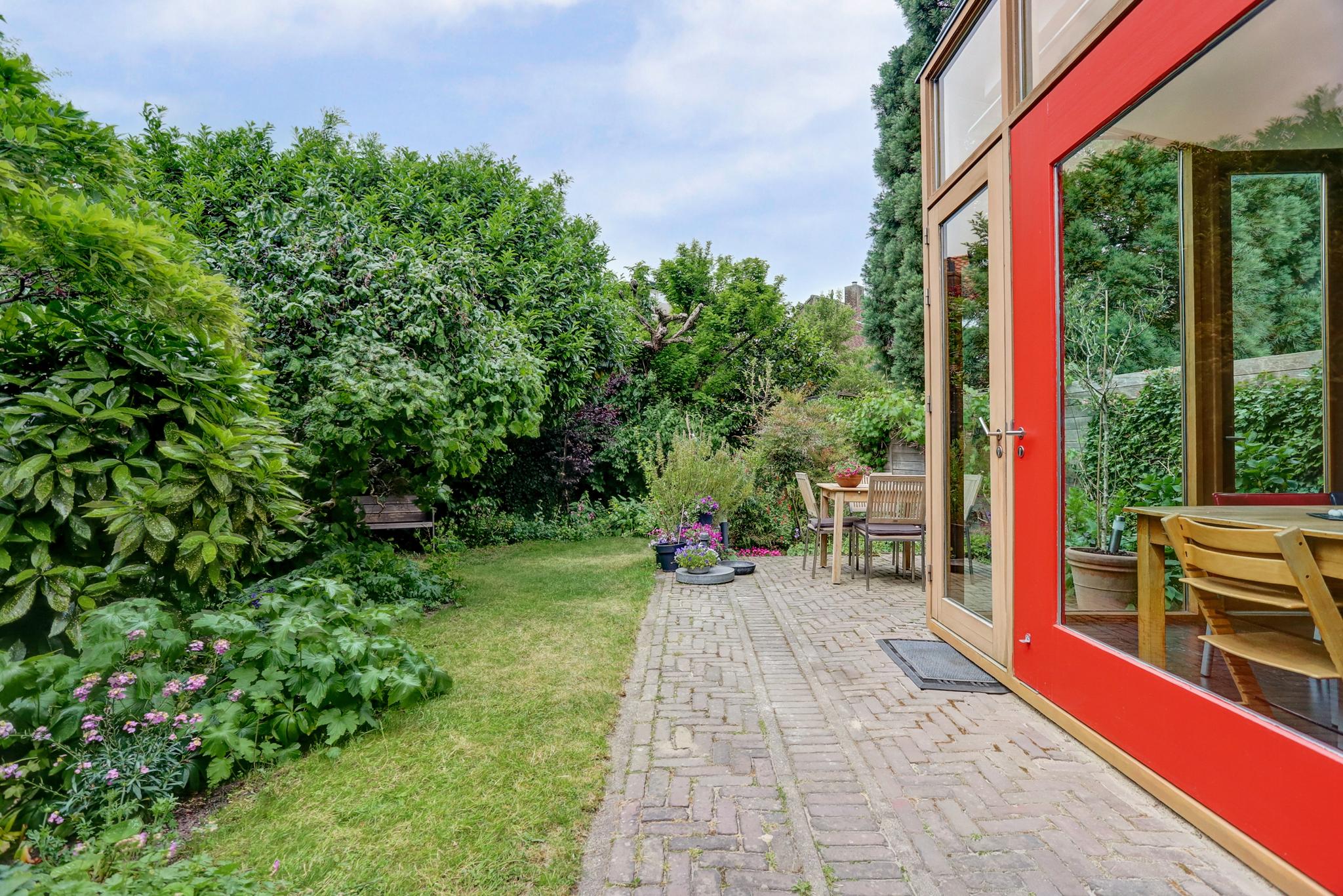 Begane grond: entree via een vestibule, gangpartij met toegang tot de provisiekelder en het toilet. De sfeervolle woonkamer en-suite heeft een fraaie erker aan de voorzijde, de originele schuifdeuren en een gezellige sfeer. De openslaande deuren aan de achterzijde geven toegang tot de mooie, diepe en zonnige tuin. Via de gang is eveneens de bijzondere woonkeuken bereikbaar. Deze lichte ruimte heeft een moderne inrichting inclusief diverse apparatuur en de ruimte voor een eettafel. Vanuit de woonkeuken zijn er verschillende toegangen via openslaande deuren naar omringend terras en tuin.