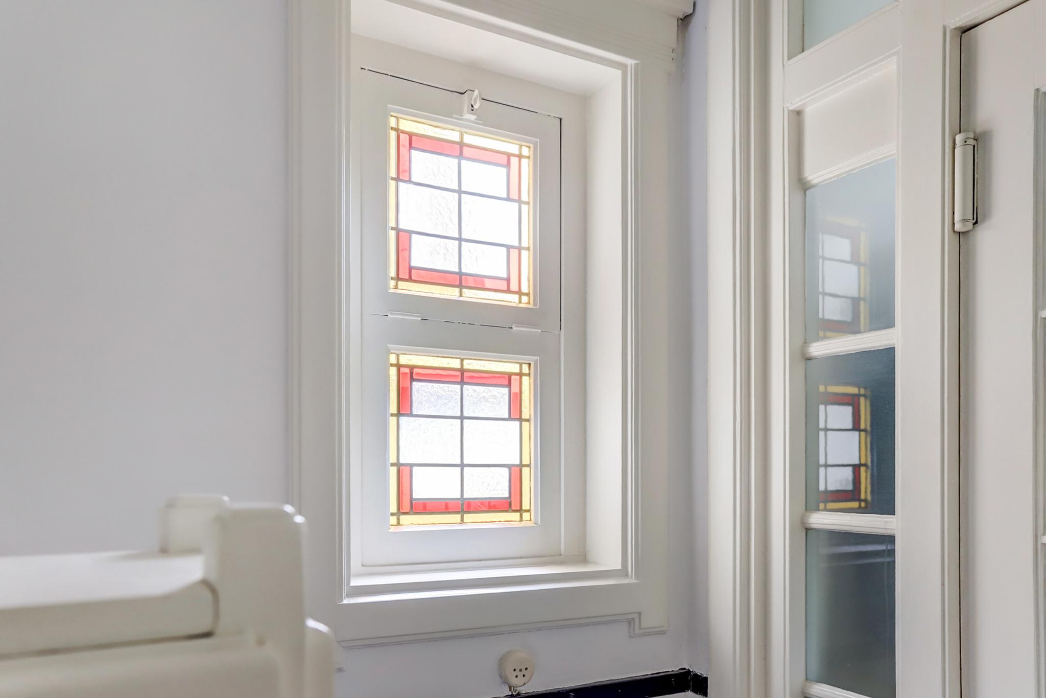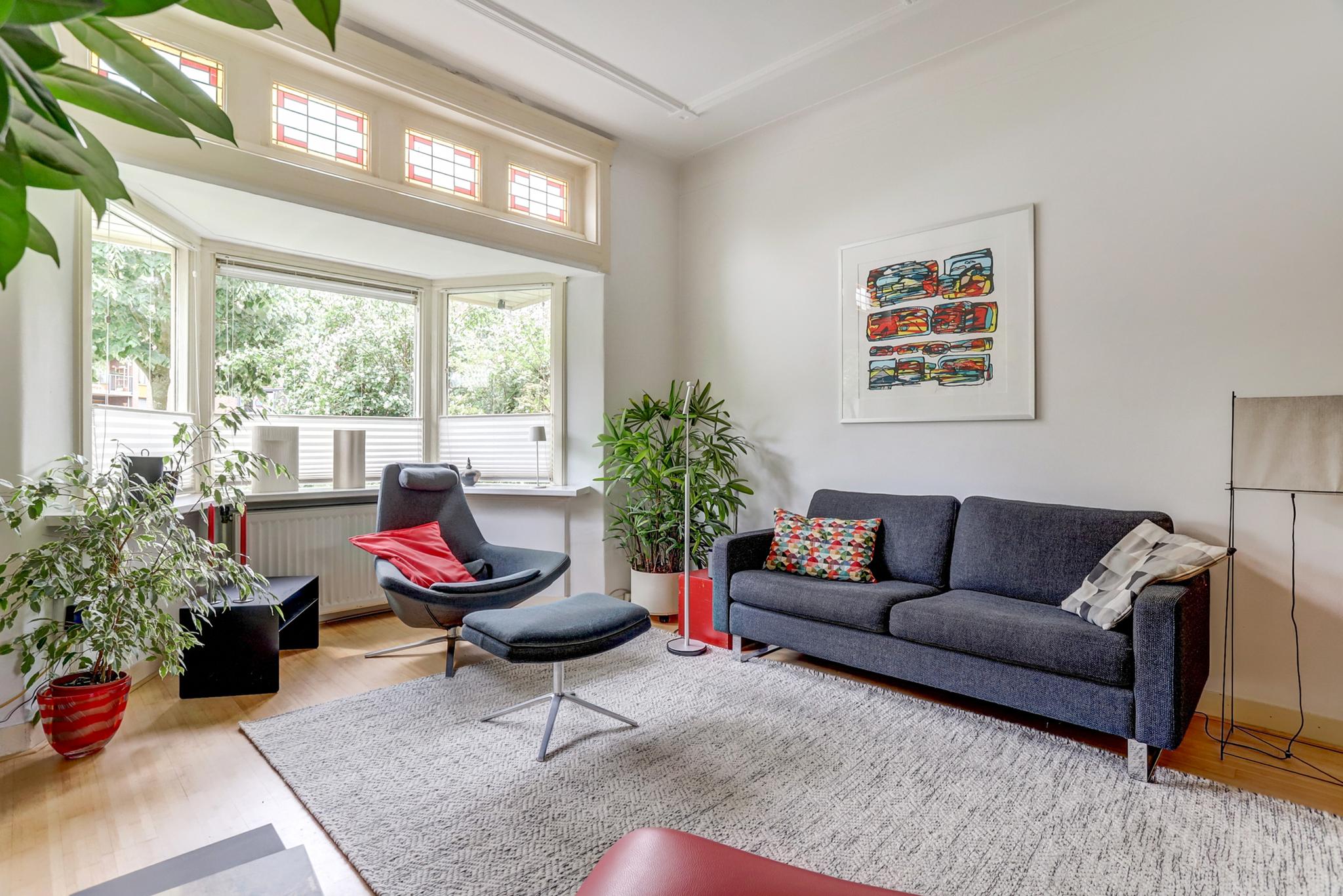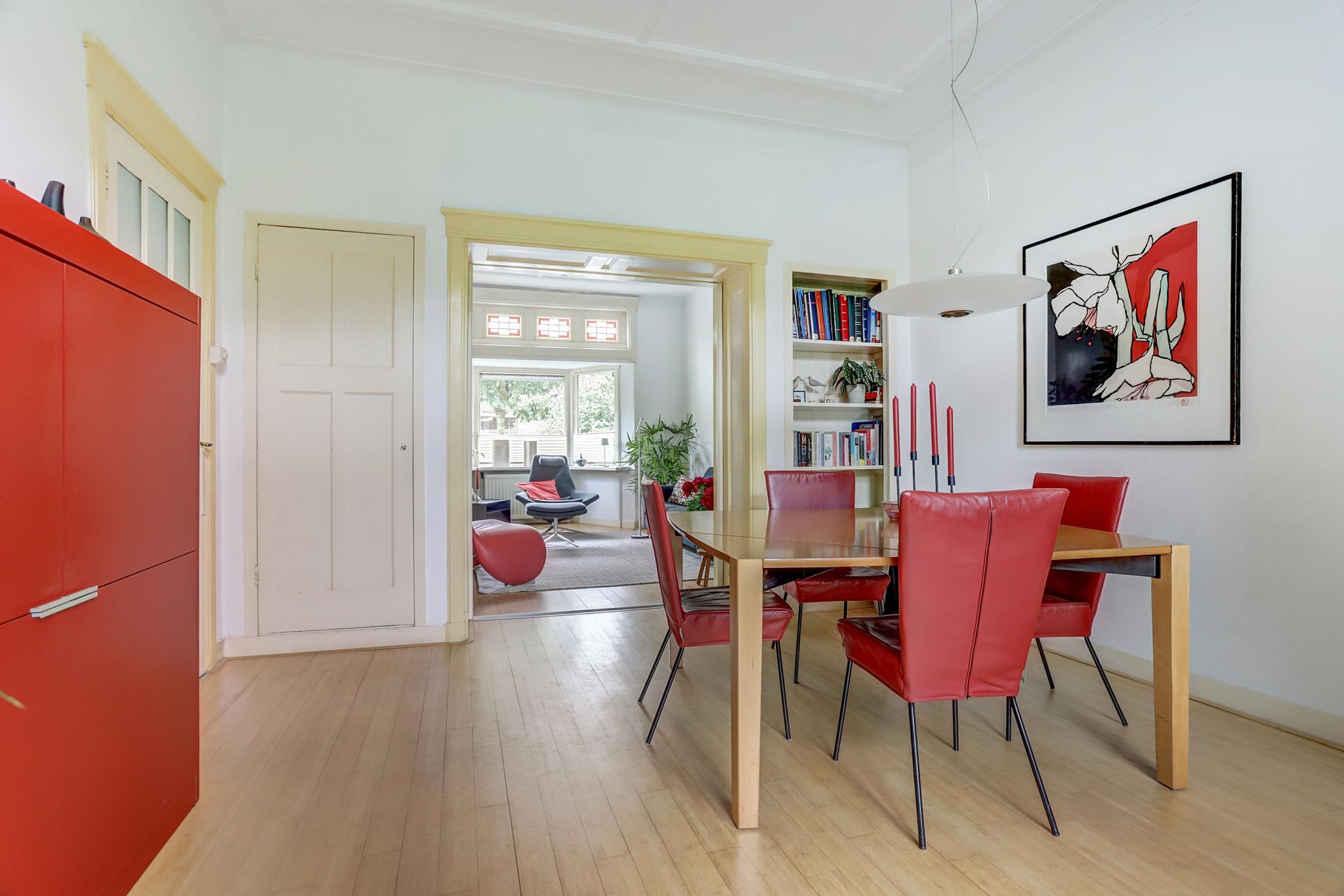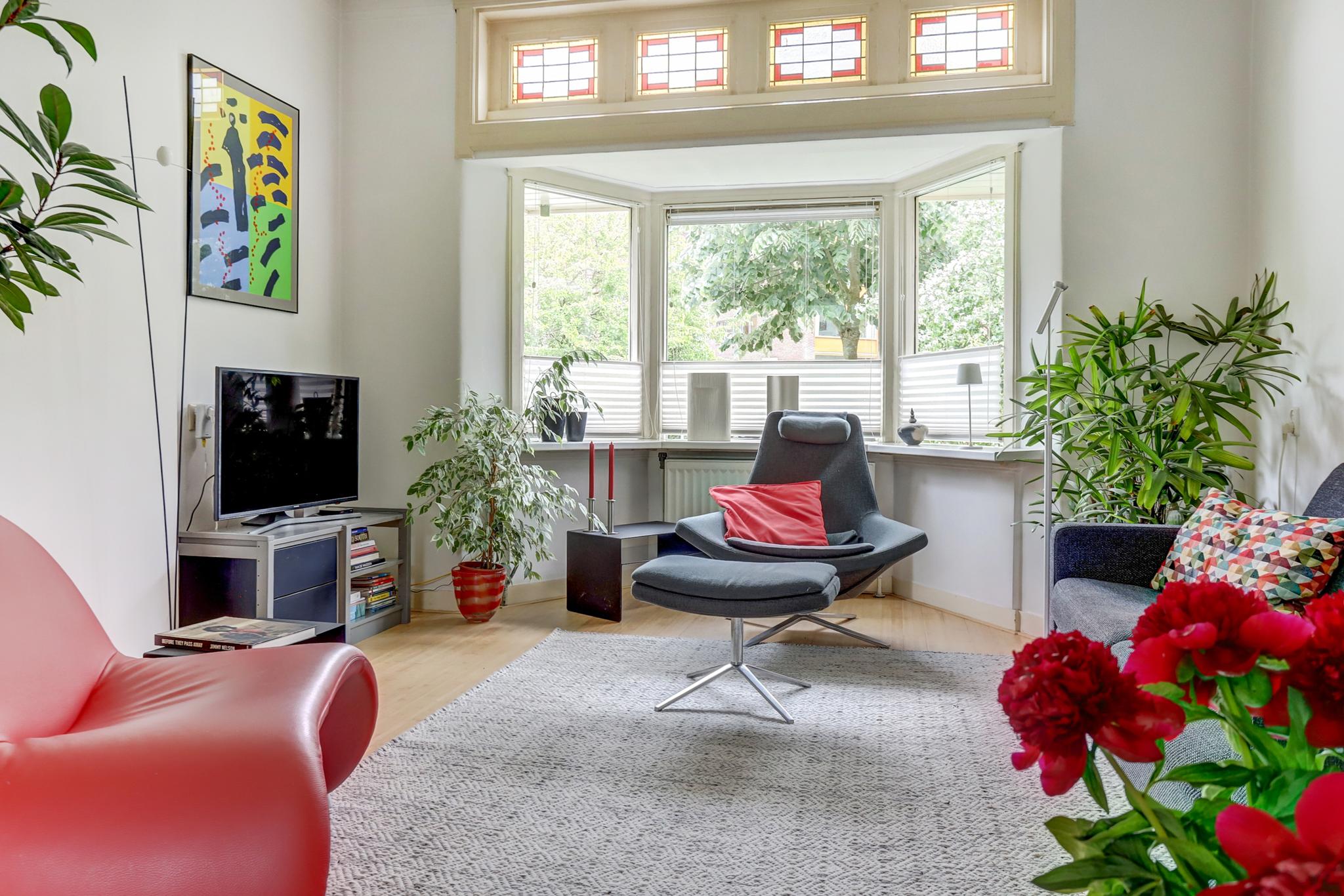 Begane grond: entree via een vestibule, gangpartij met toegang tot de provisiekelder en het toilet. De sfeervolle woonkamer en-suite heeft een fraaie erker aan de voorzijde, de originele schuifdeuren en een gezellige sfeer. De openslaande deuren aan de achterzijde geven toegang tot de mooie, diepe en zonnige tuin. Via de gang is eveneens de bijzondere woonkeuken bereikbaar. Deze lichte ruimte heeft een moderne inrichting inclusief diverse apparatuur en de ruimte voor een eettafel. Vanuit de woonkeuken zijn er verschillende toegangen via openslaande deuren naar omringend terras en tuin.