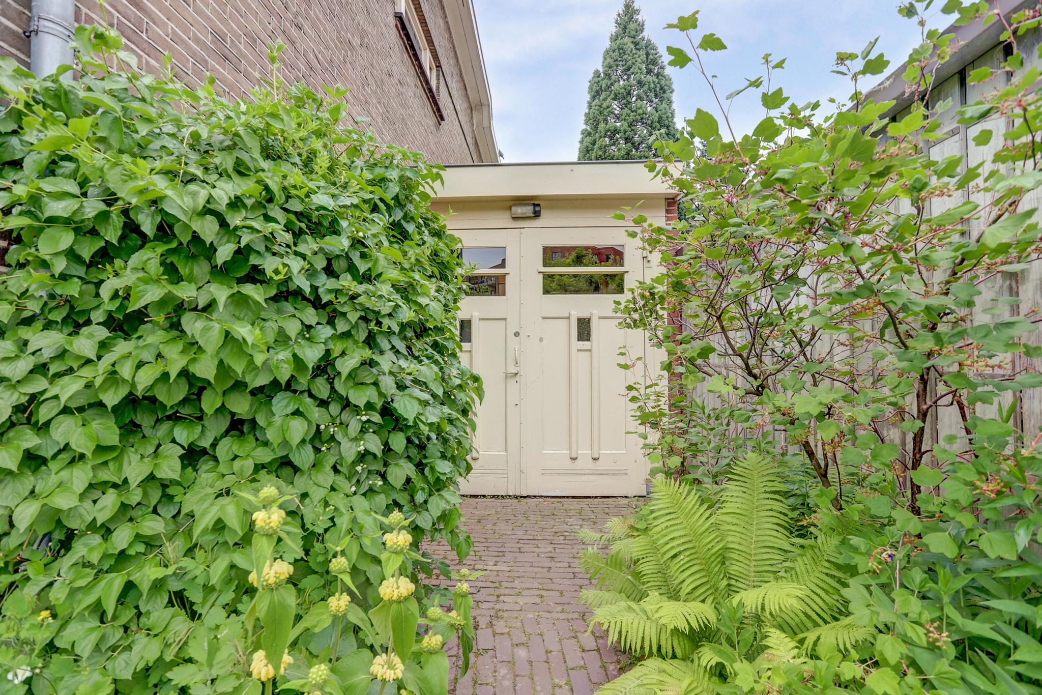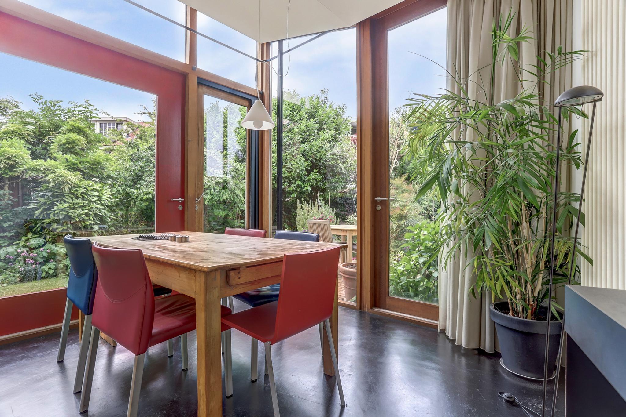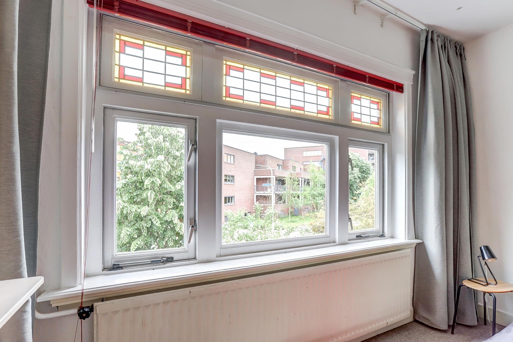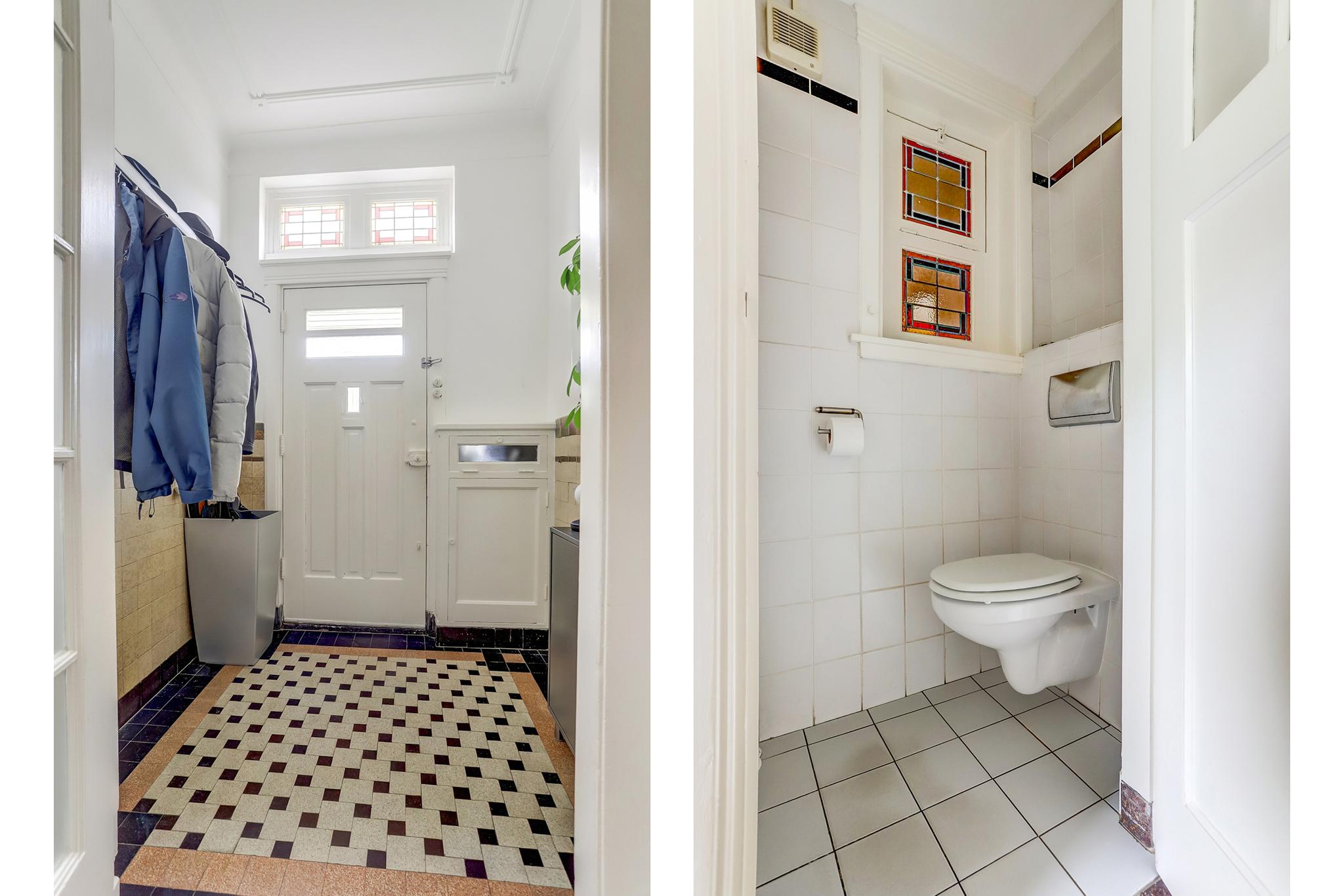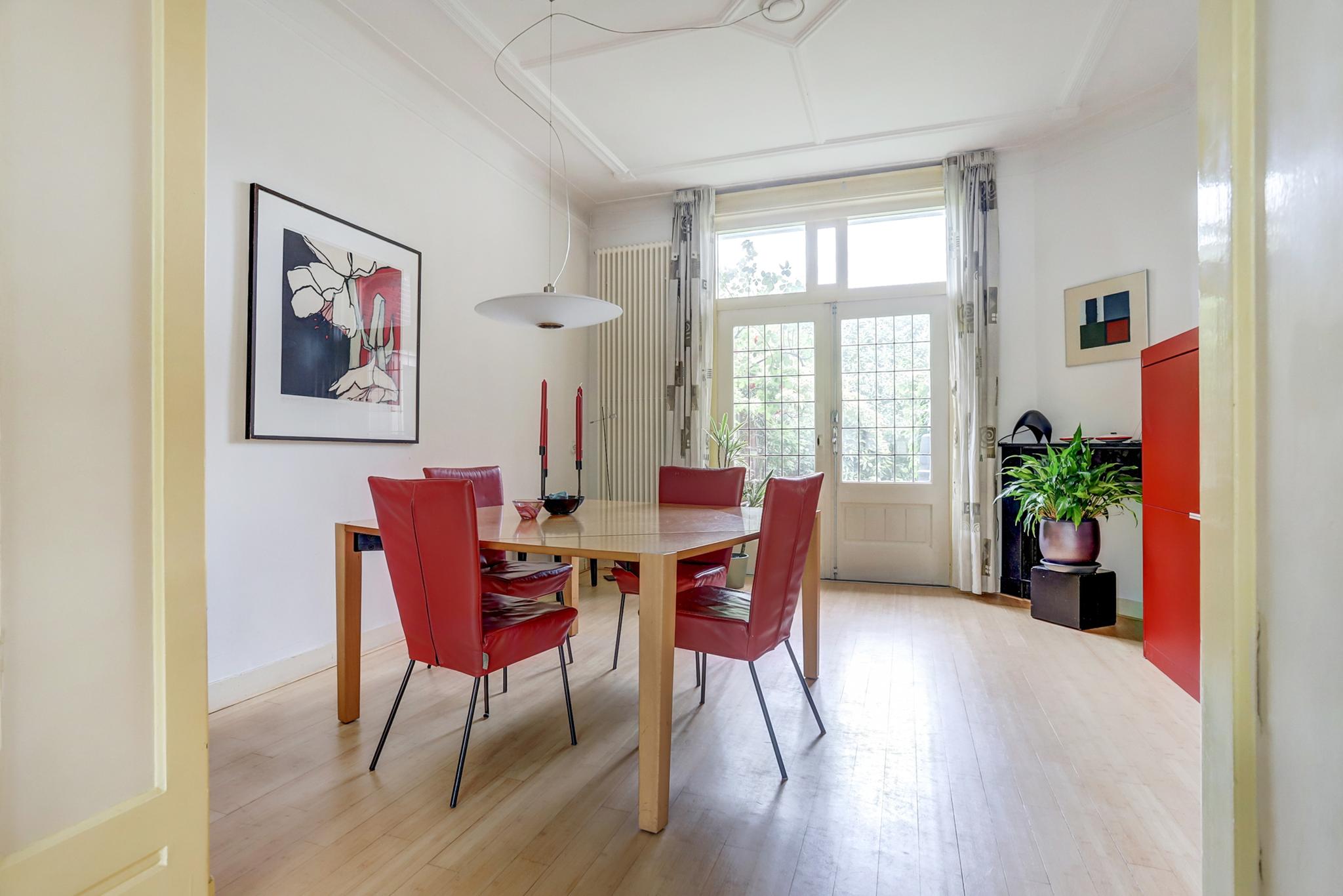 Begane grond: entree via een vestibule, gangpartij met toegang tot de provisiekelder en het toilet. De sfeervolle woonkamer en-suite heeft een fraaie erker aan de voorzijde, de originele schuifdeuren en een gezellige sfeer. De openslaande deuren aan de achterzijde geven toegang tot de mooie, diepe en zonnige tuin. Via de gang is eveneens de bijzondere woonkeuken bereikbaar. Deze lichte ruimte heeft een moderne inrichting inclusief diverse apparatuur en de ruimte voor een eettafel. Vanuit de woonkeuken zijn er verschillende toegangen via openslaande deuren naar omringend terras en tuin.