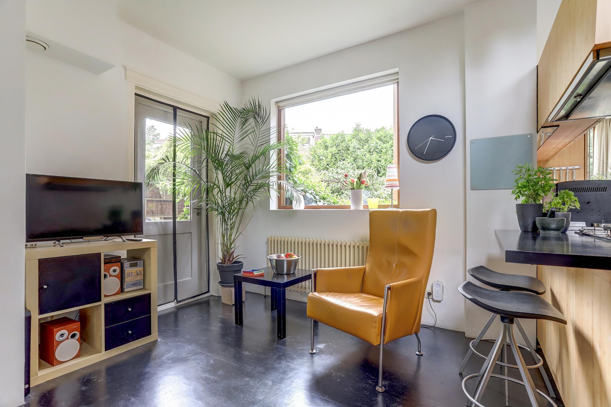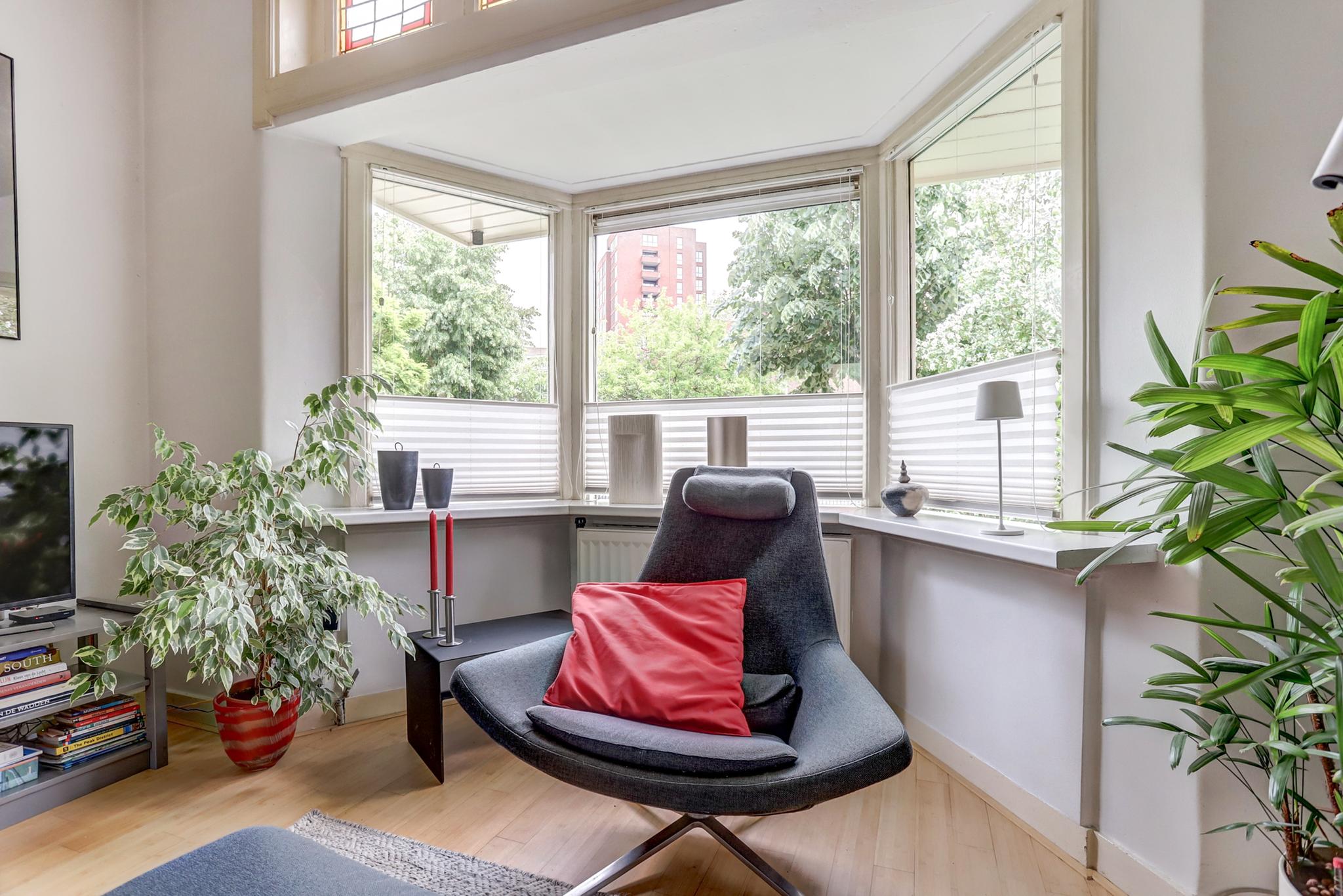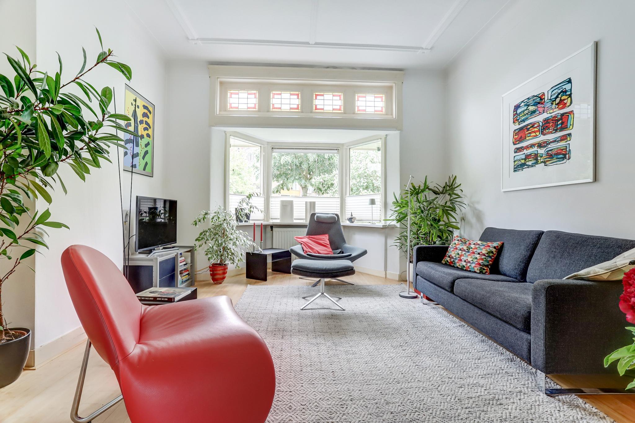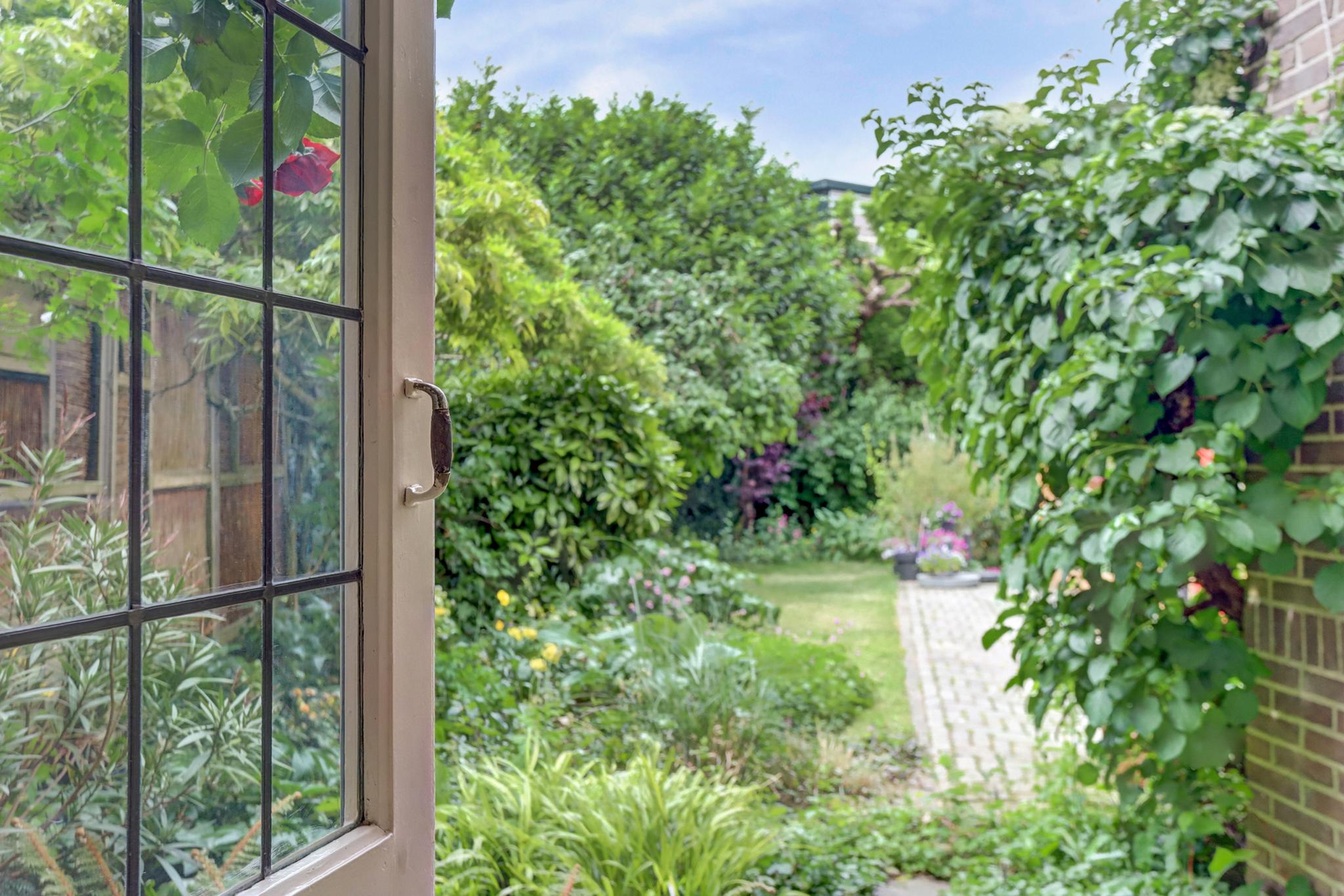 Begane grond: entree via een vestibule, gangpartij met toegang tot de provisiekelder en het toilet. De sfeervolle woonkamer en-suite heeft een fraaie erker aan de voorzijde, de originele schuifdeuren en een gezellige sfeer. De openslaande deuren aan de achterzijde geven toegang tot de mooie, diepe en zonnige tuin. Via de gang is eveneens de bijzondere woonkeuken bereikbaar. Deze lichte ruimte heeft een moderne inrichting inclusief diverse apparatuur en de ruimte voor een eettafel. Vanuit de woonkeuken zijn er verschillende toegangen via openslaande deuren naar omringend terras en tuin.