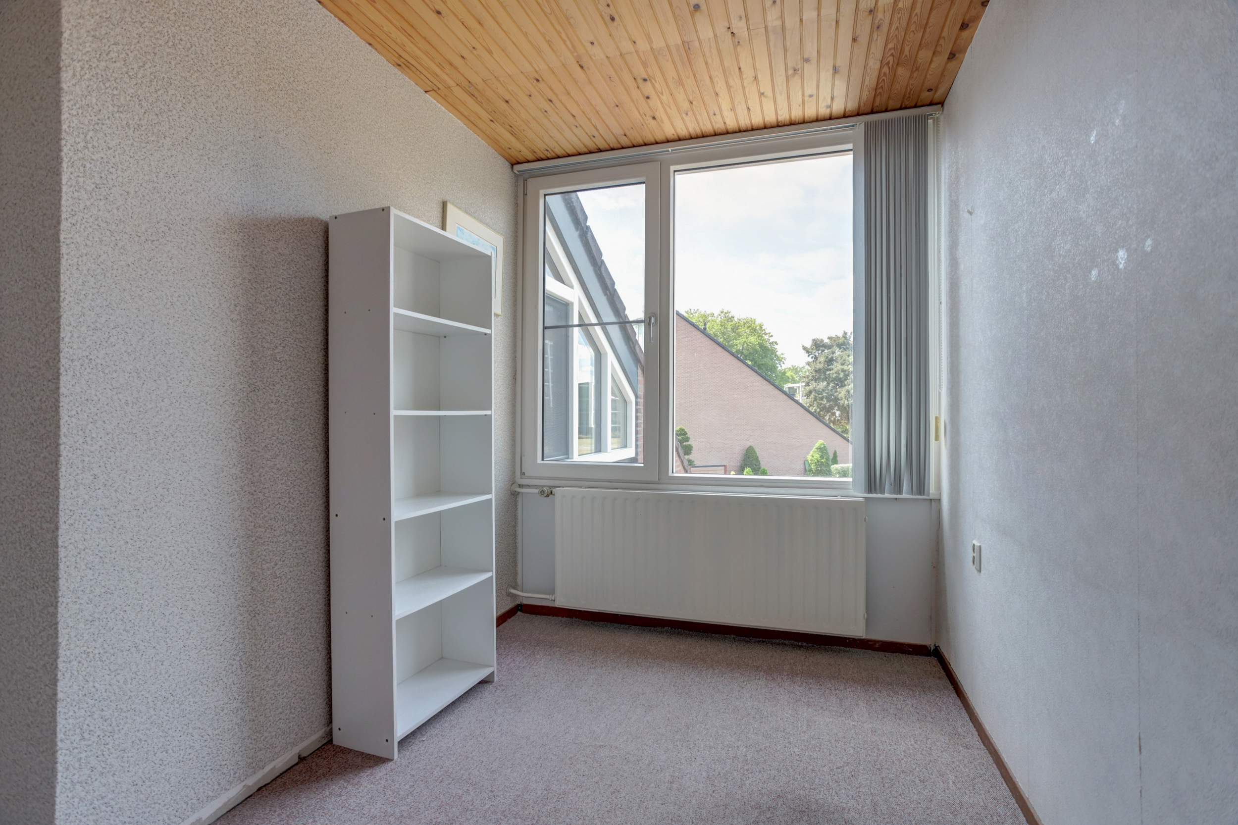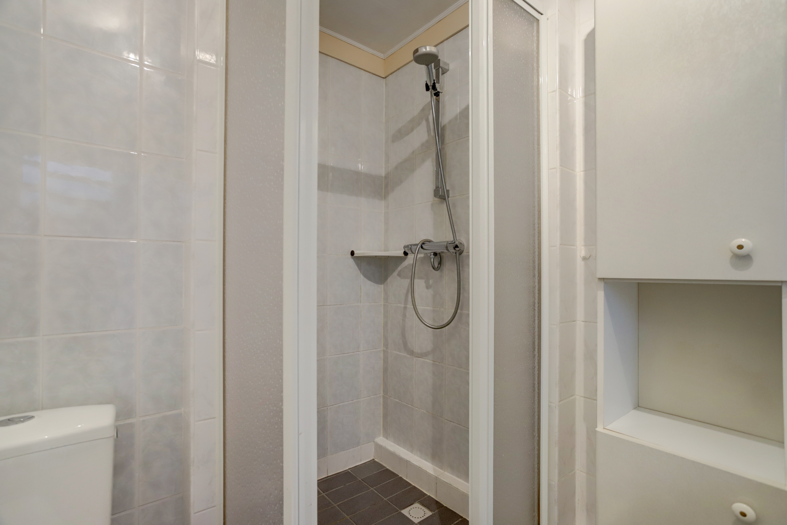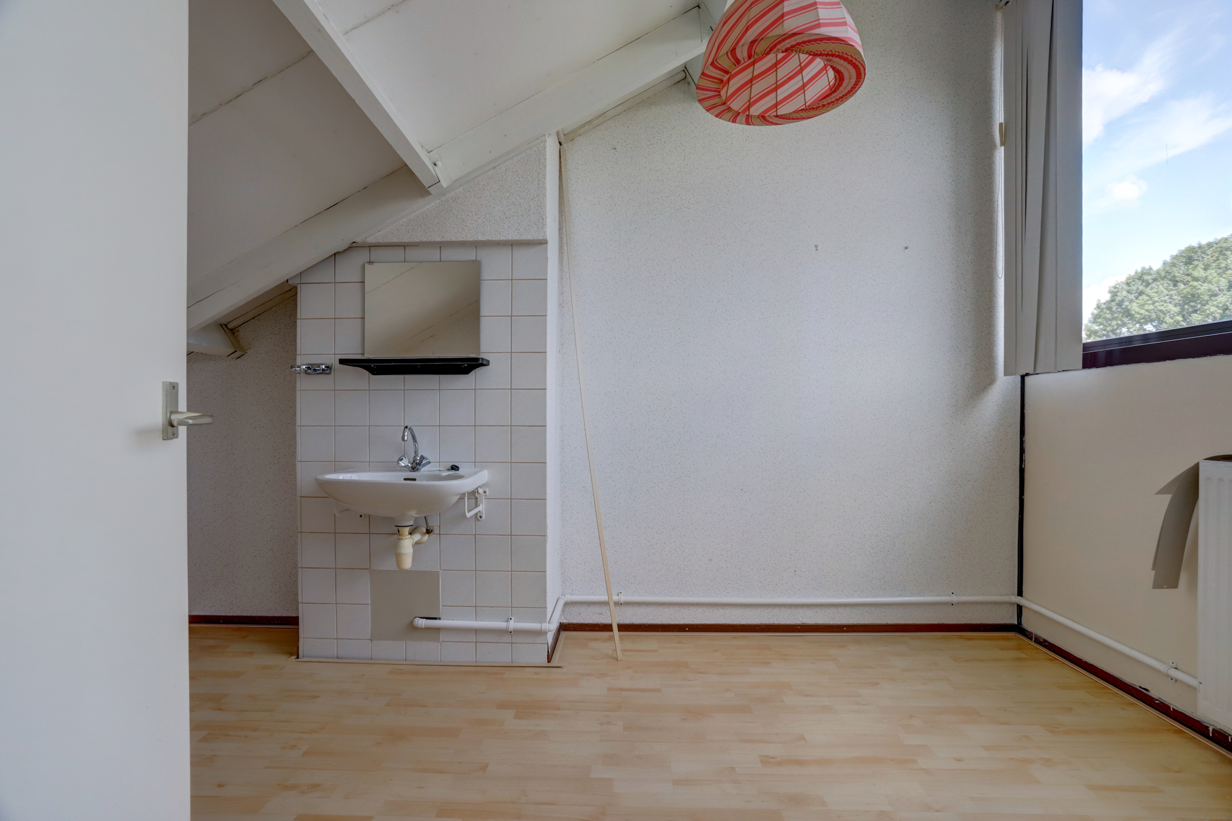 Eerste verdieping: overloop met vaste kast, in totaal zijn er 3 slaapkamers waarvan er 1 is voorzien van een vaste kast en een dakkapel. De badkamer heeft een douchecabine, wastafelmeubel en een toilet.