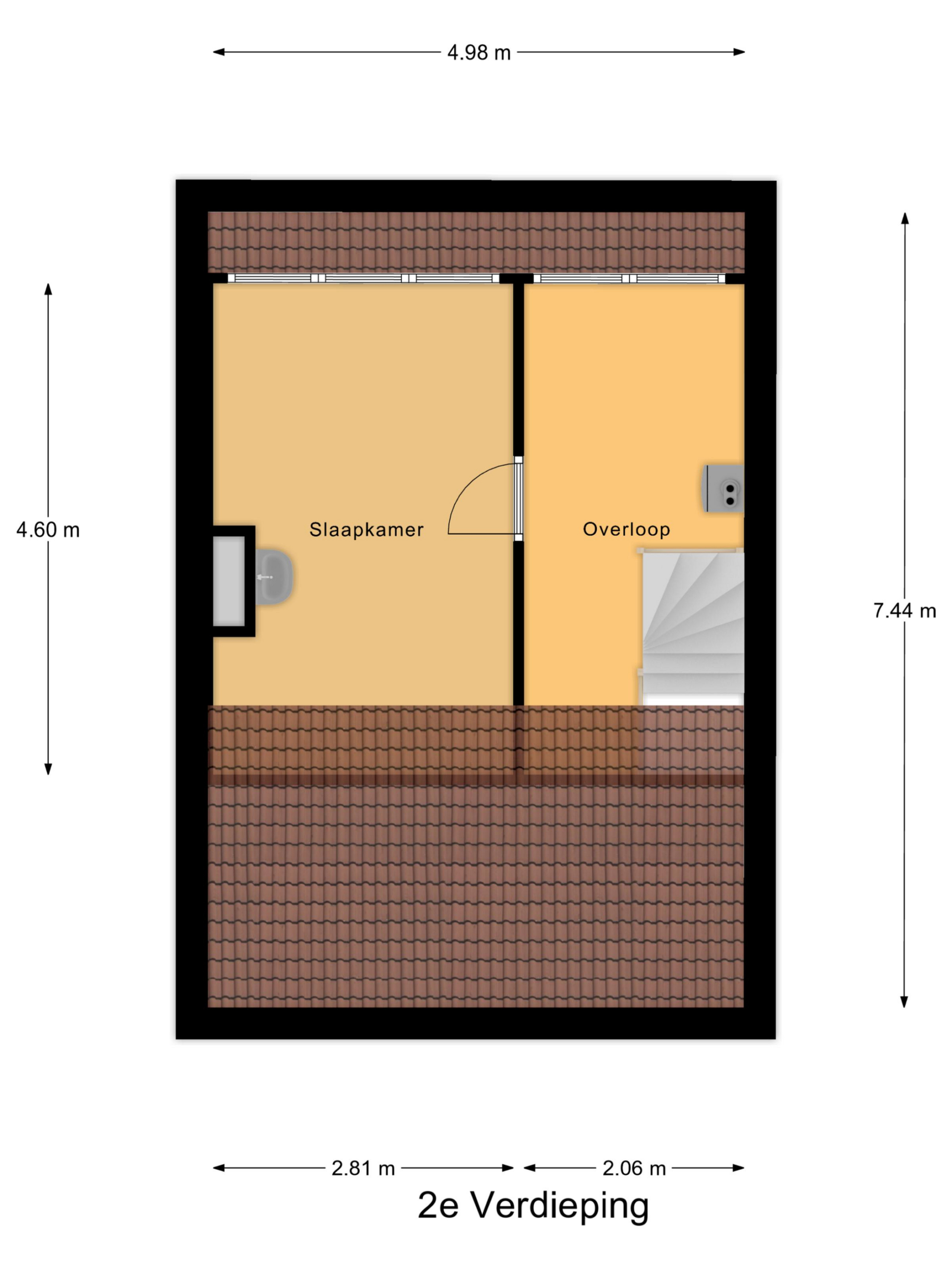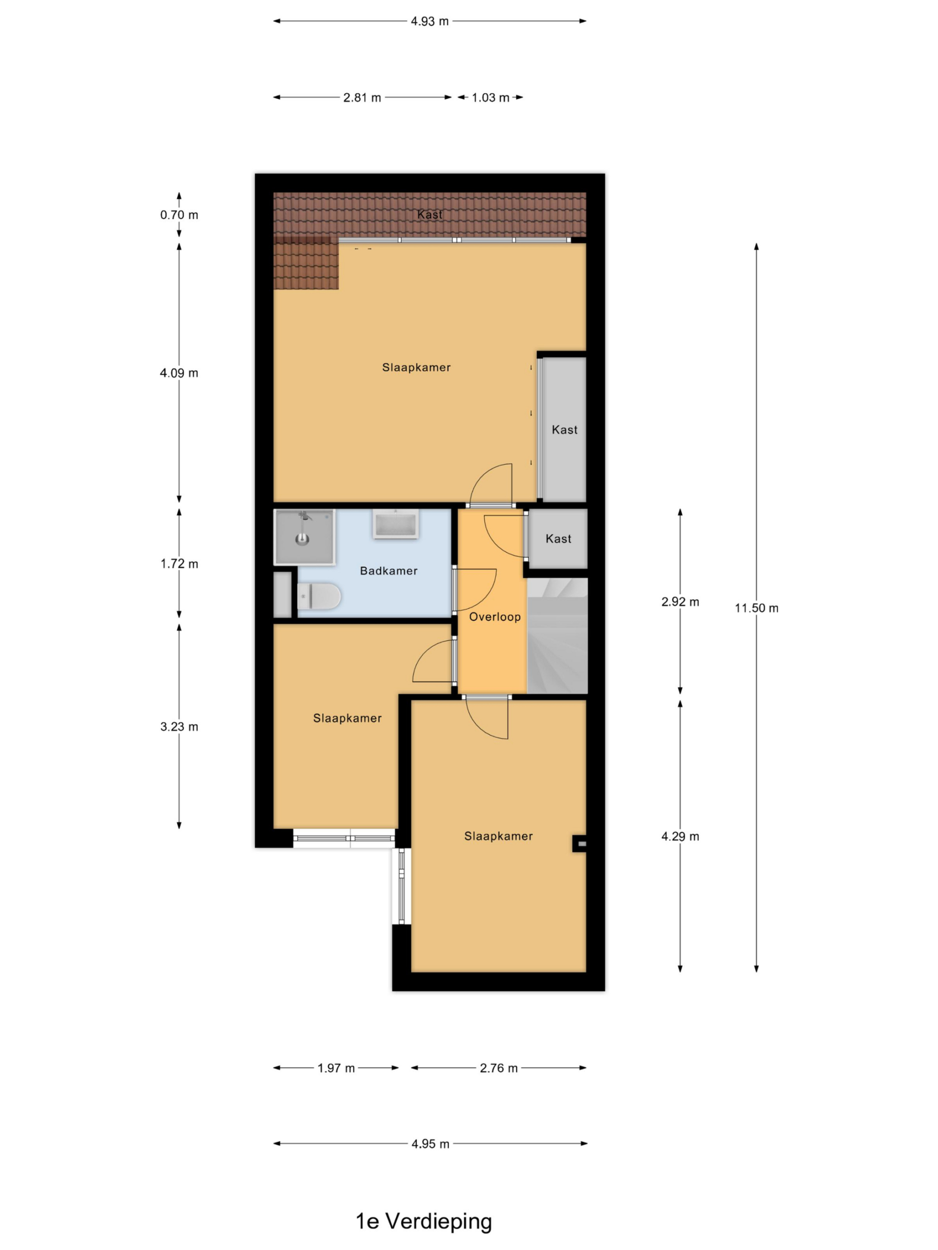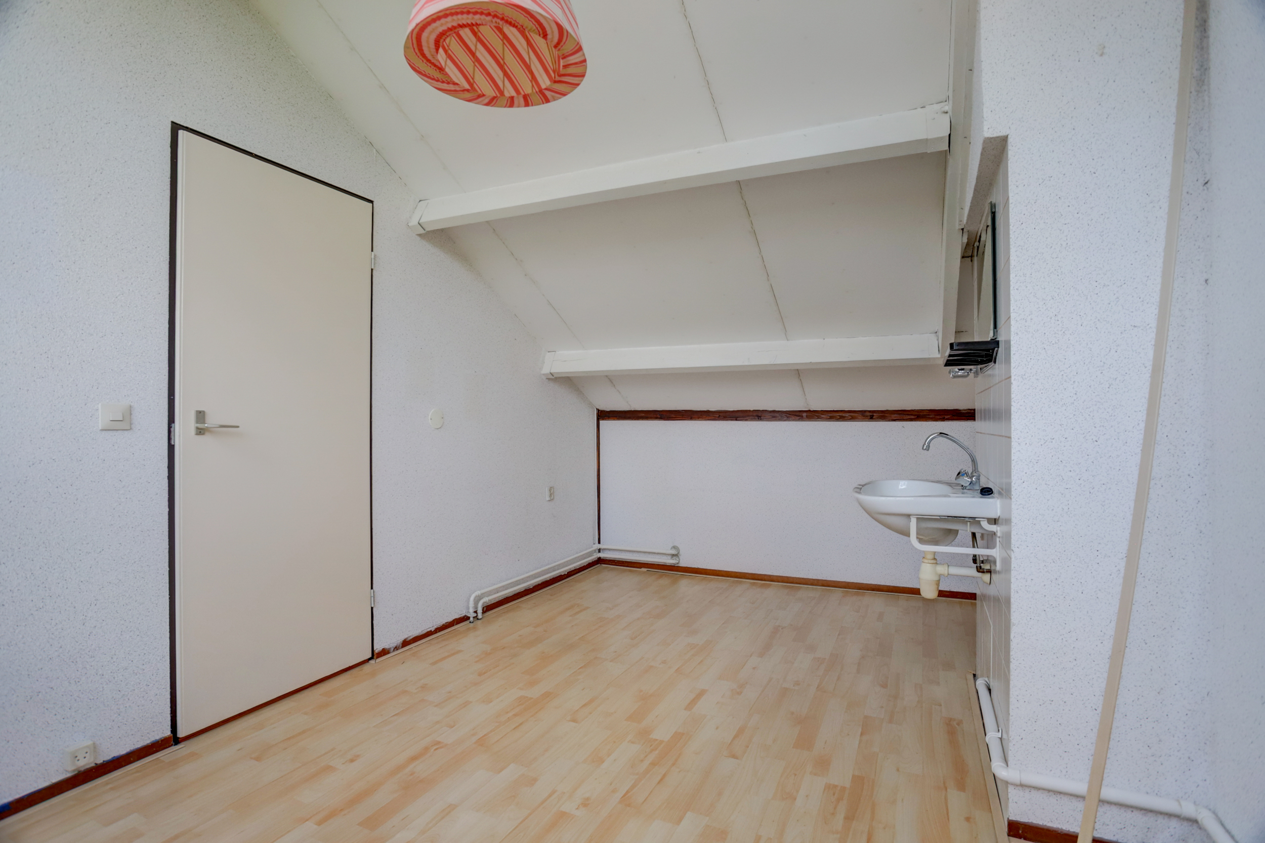 Eerste verdieping: overloop met vaste kast, in totaal zijn er 3 slaapkamers waarvan er 1 is voorzien van een vaste kast en een dakkapel. De badkamer heeft een douchecabine, wastafelmeubel en een toilet.