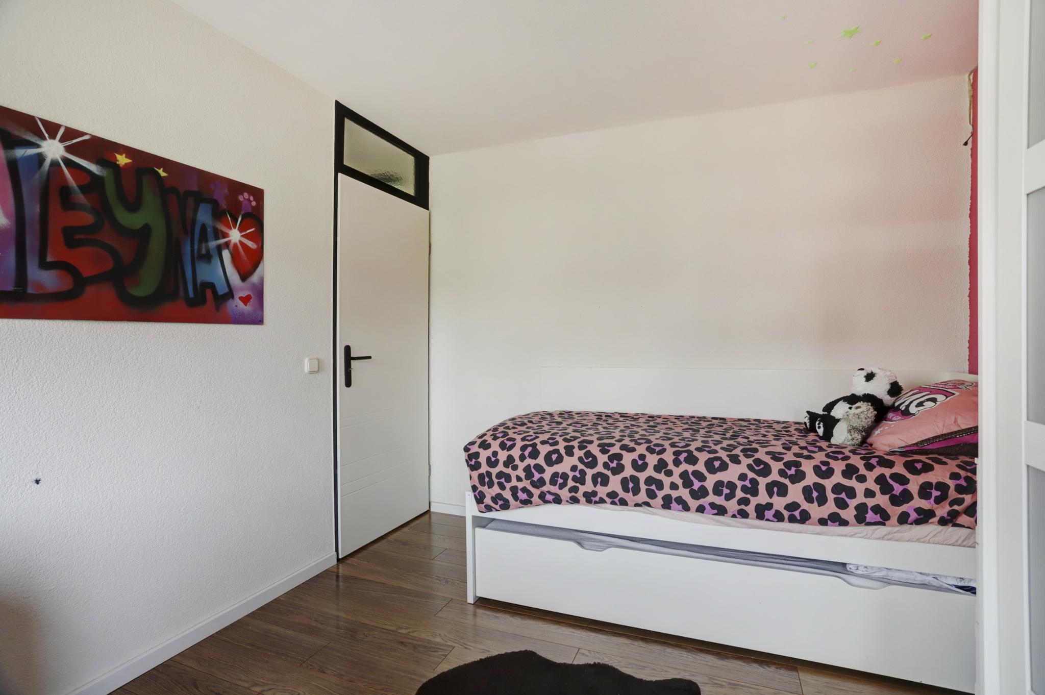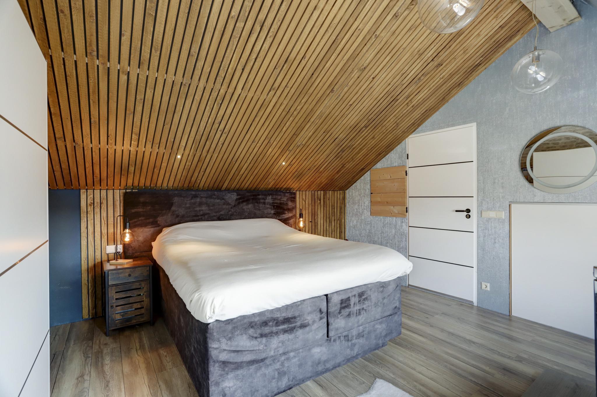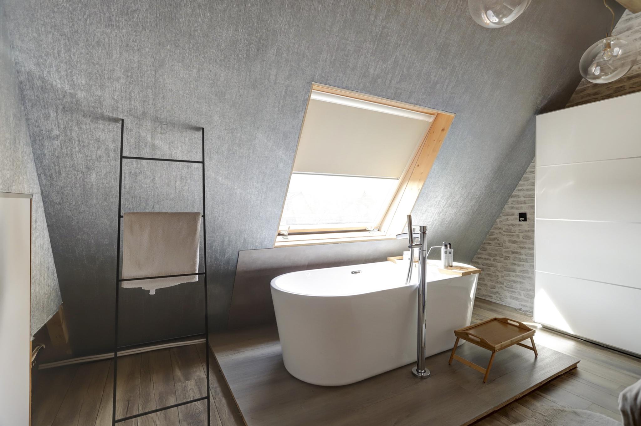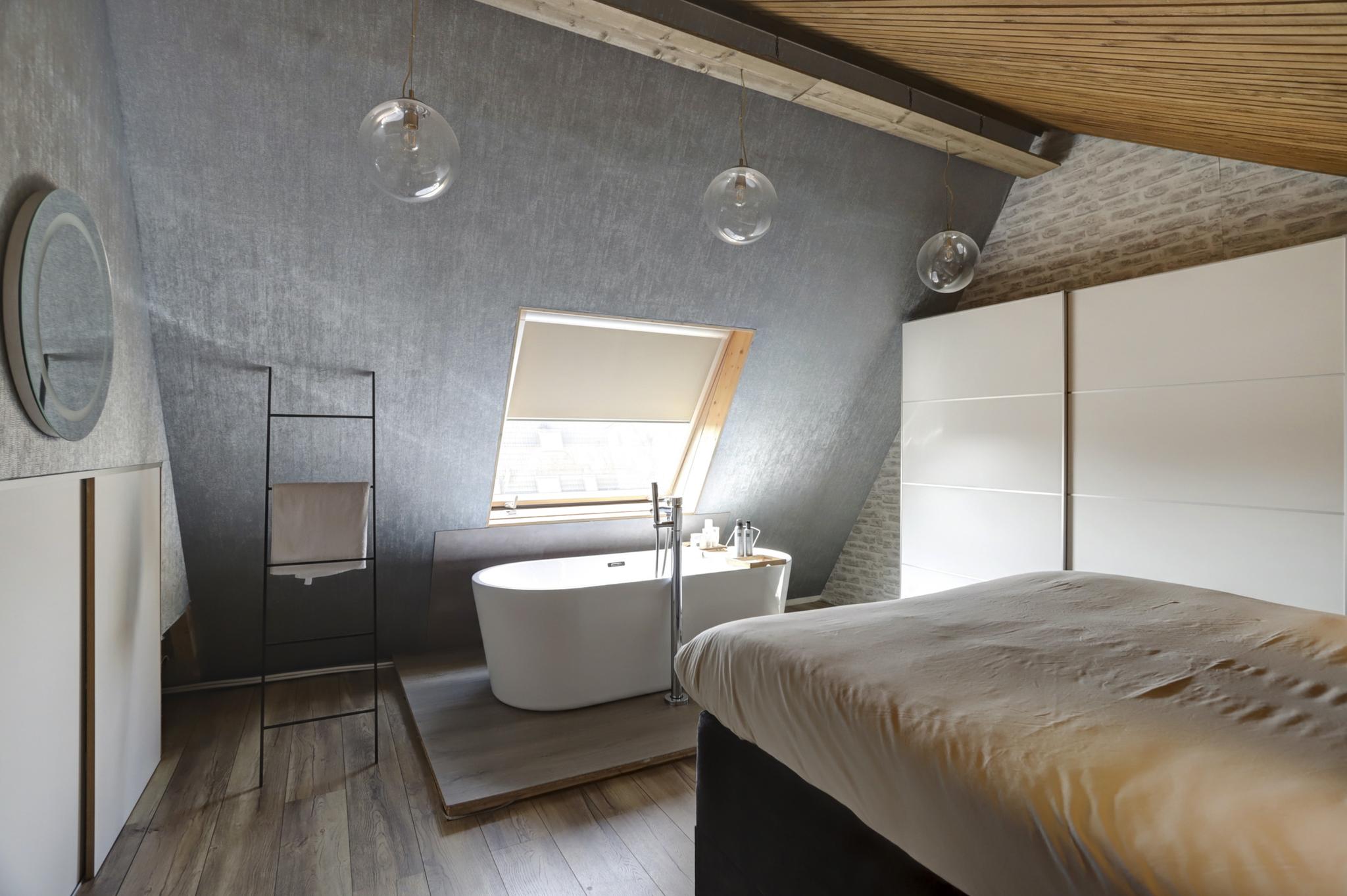 Tweede verdieping: je stapt binnen in de ruime 4e slaapkamer die is voorzien van een groot dakraam. De wasmachine-aansluiting en de cv-ketel (2021) zijn netjes weggewerkt in inbouwkasten. Op deze kamer staat jouw eigen privé-ligbad!