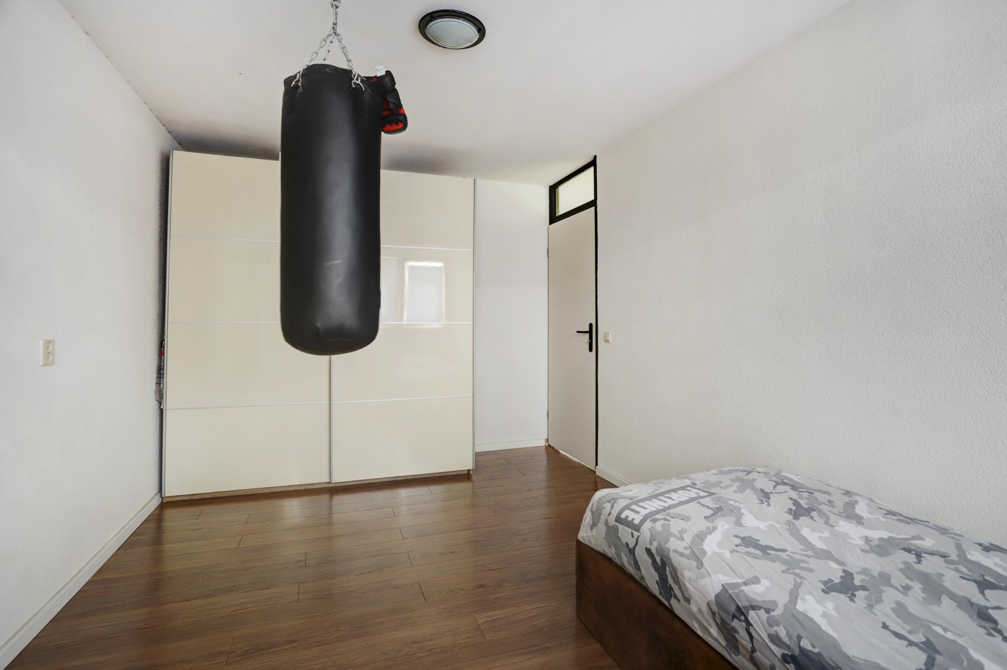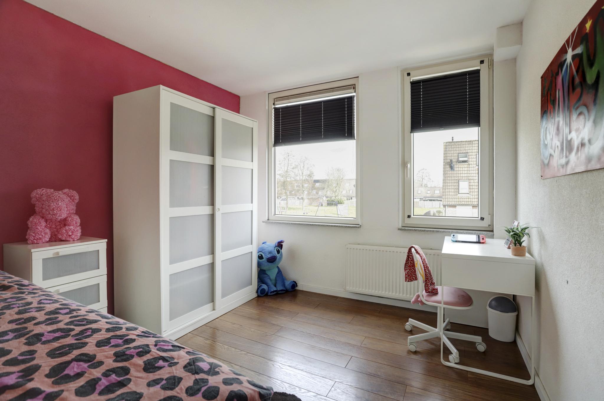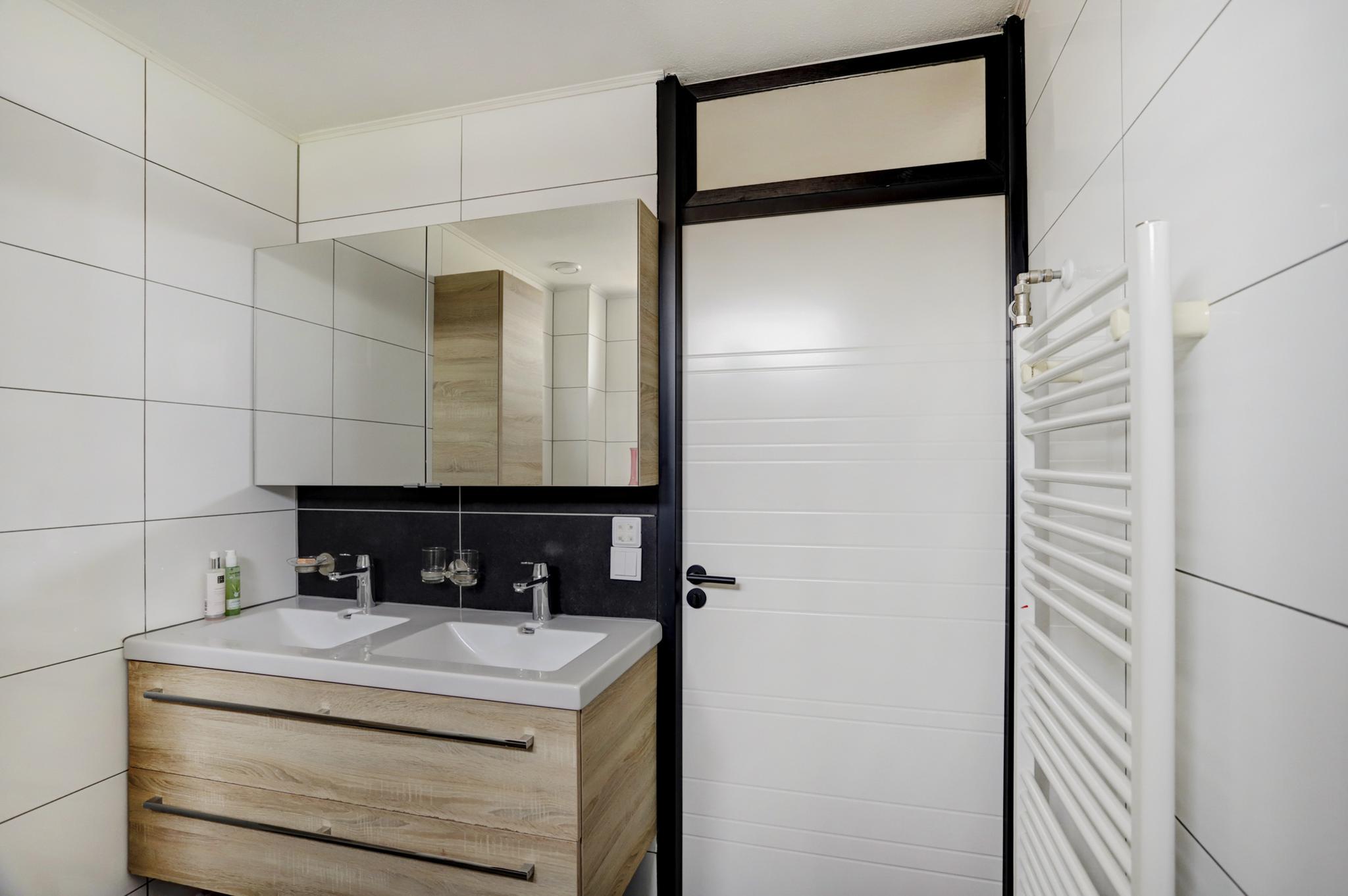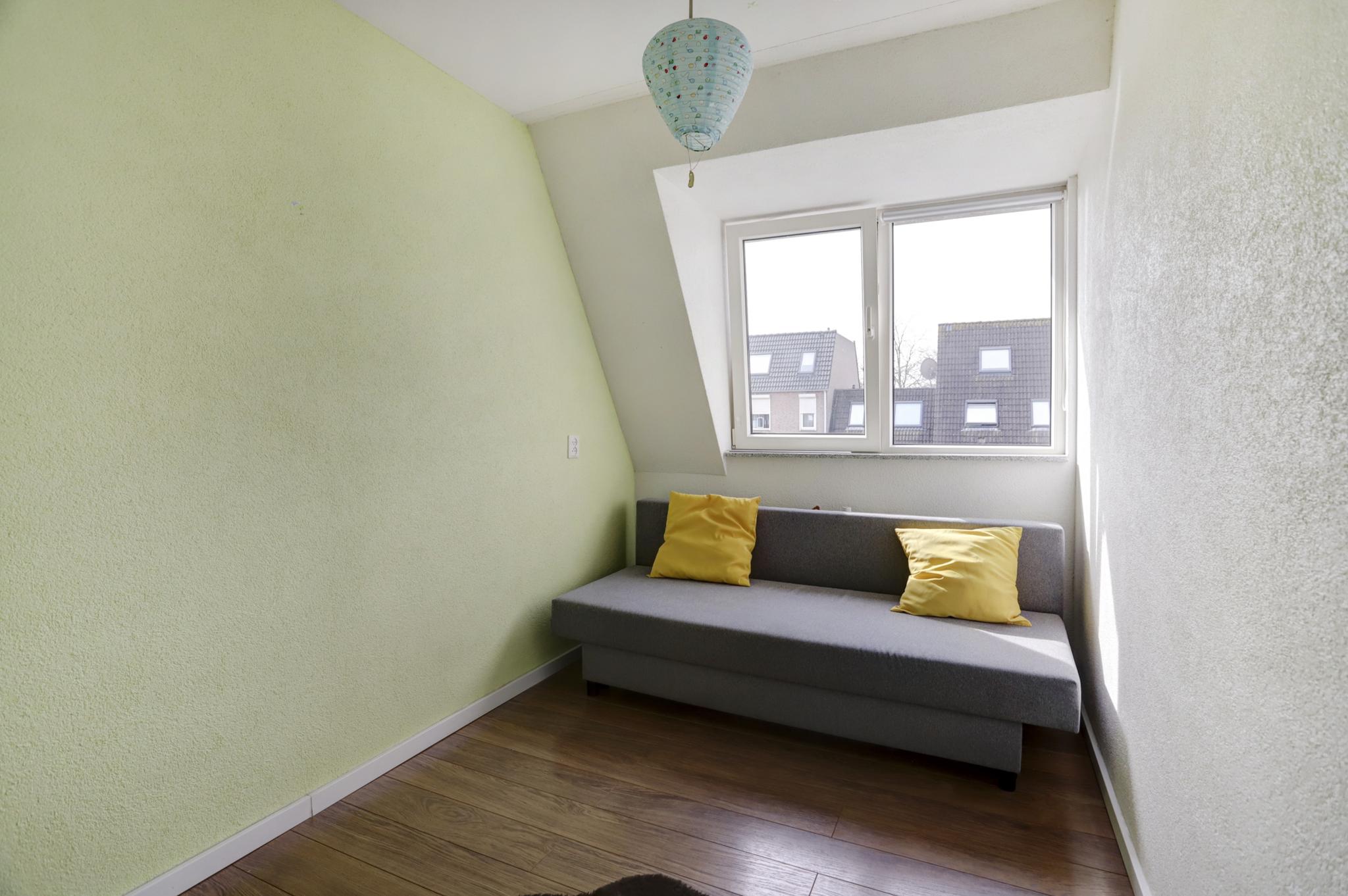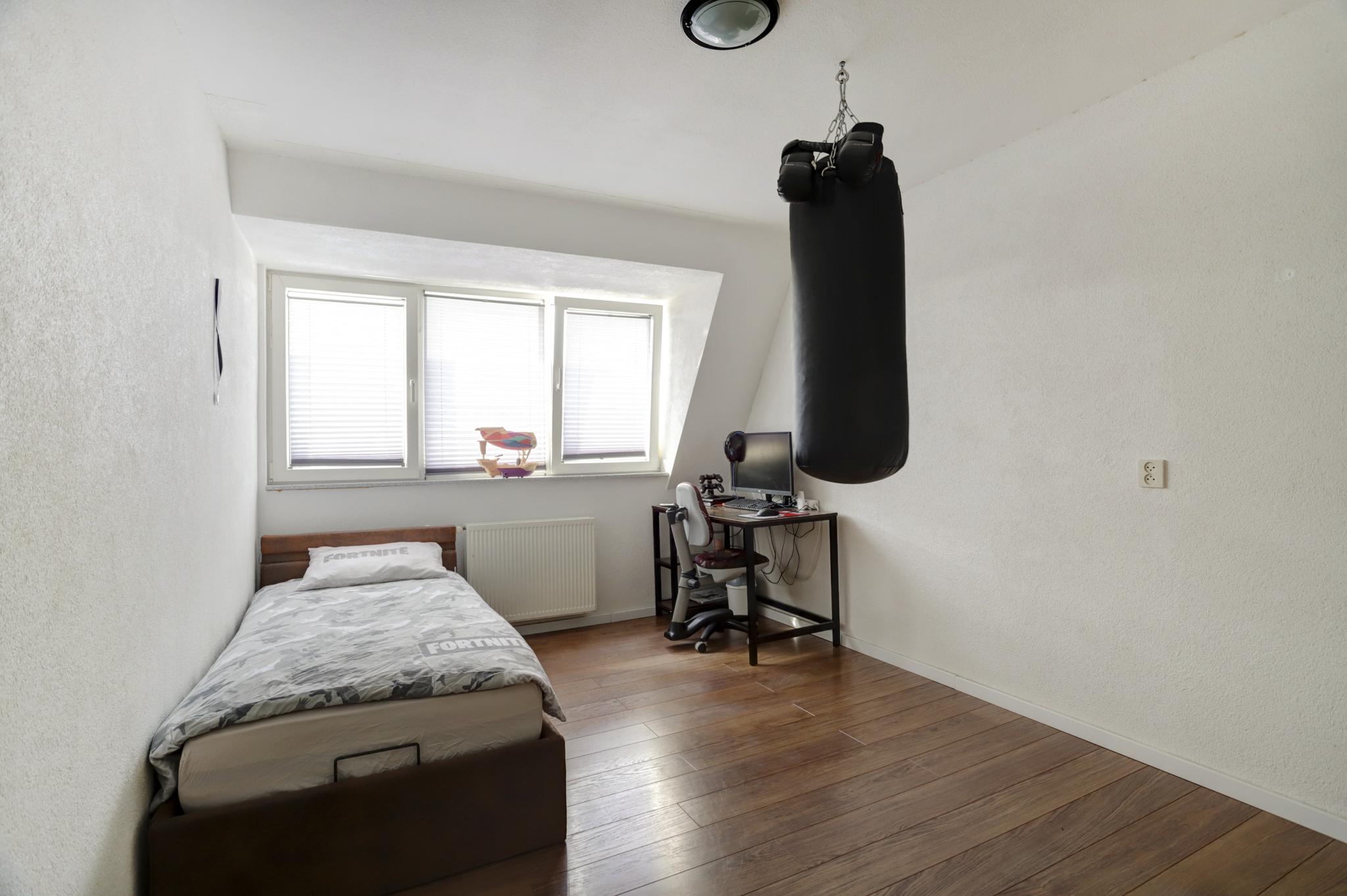 Tweede verdieping: je stapt binnen in de ruime 4e slaapkamer die is voorzien van een groot dakraam. De wasmachine-aansluiting en de cv-ketel (2021) zijn netjes weggewerkt in inbouwkasten. Op deze kamer staat jouw eigen privé-ligbad!