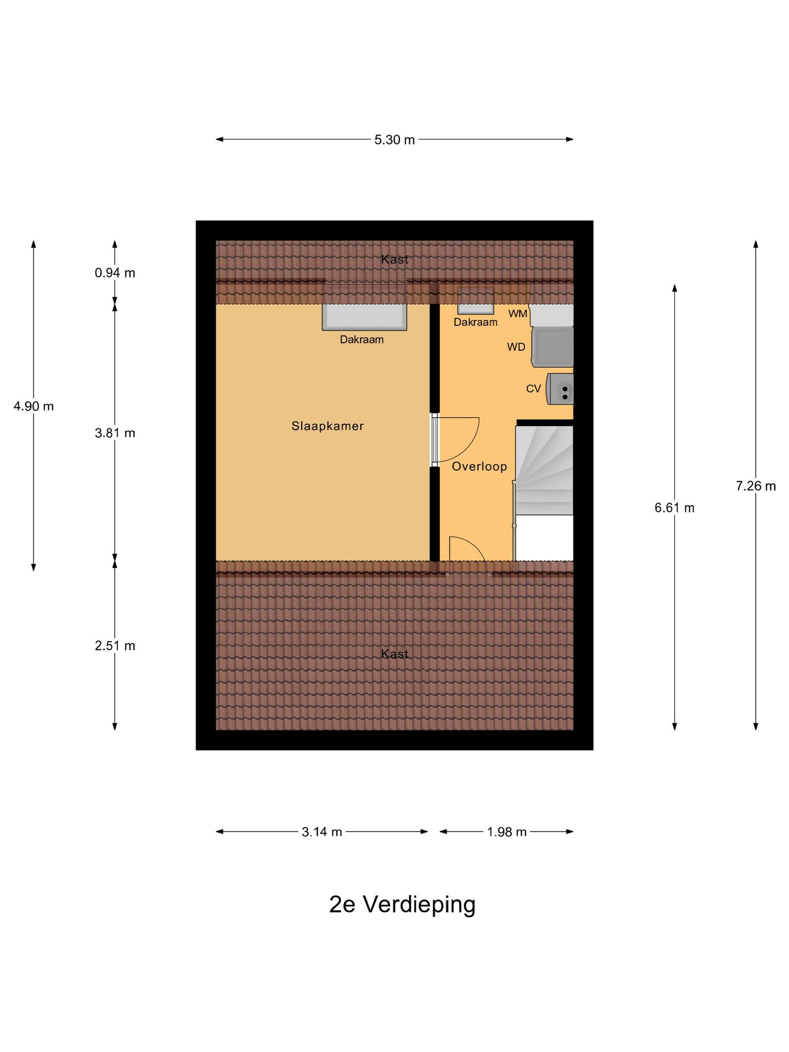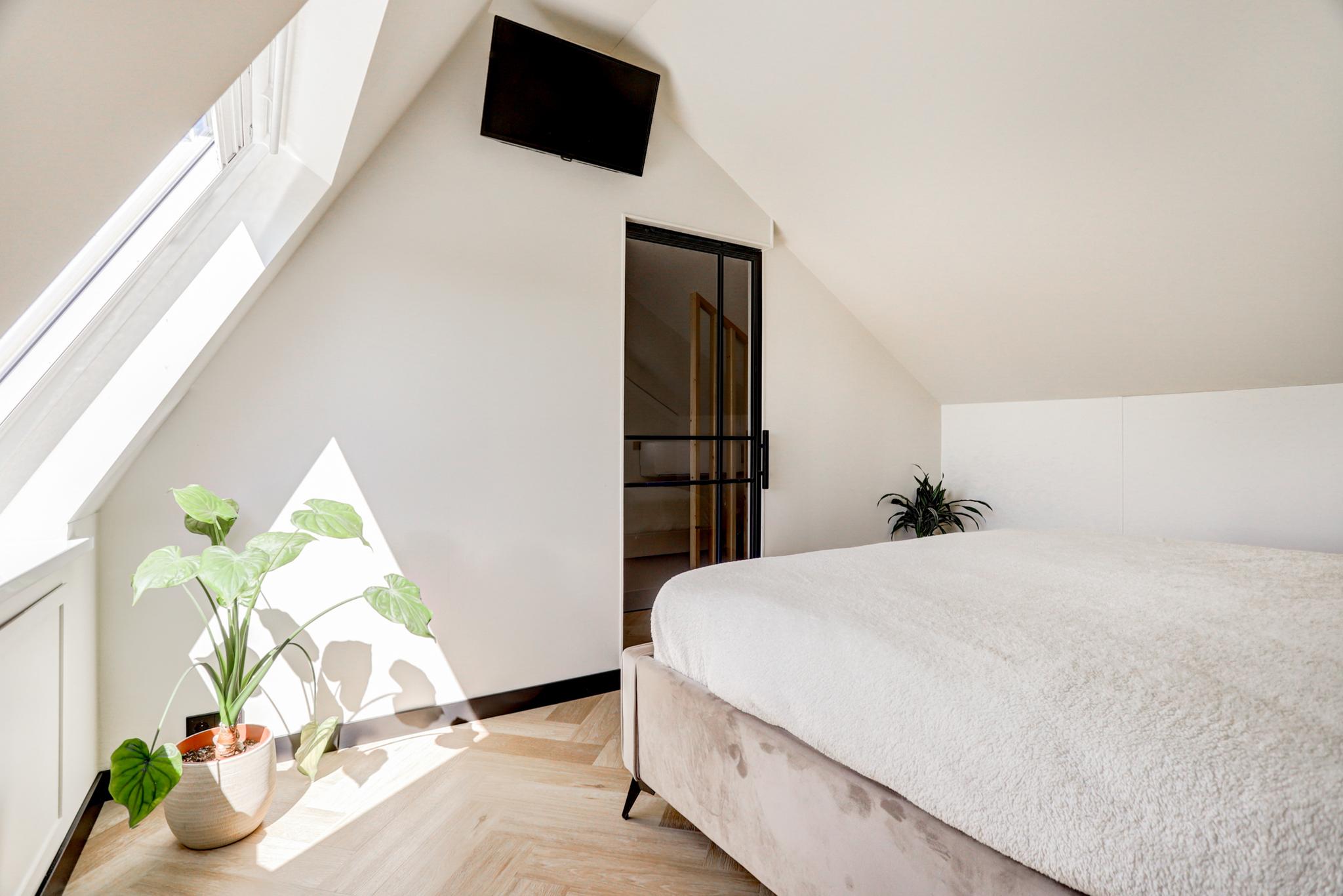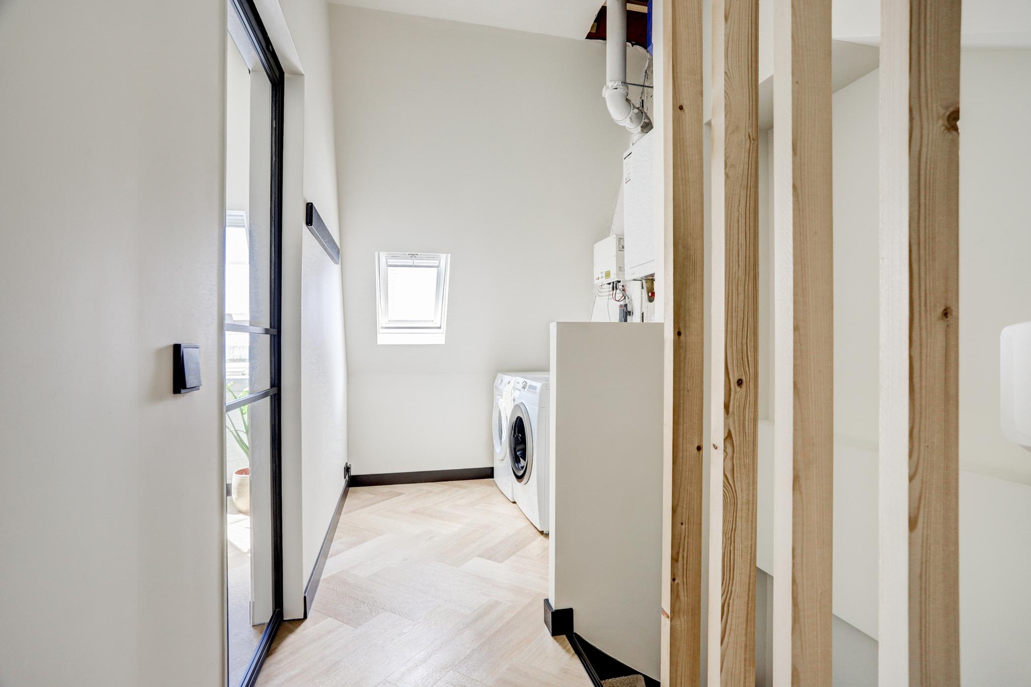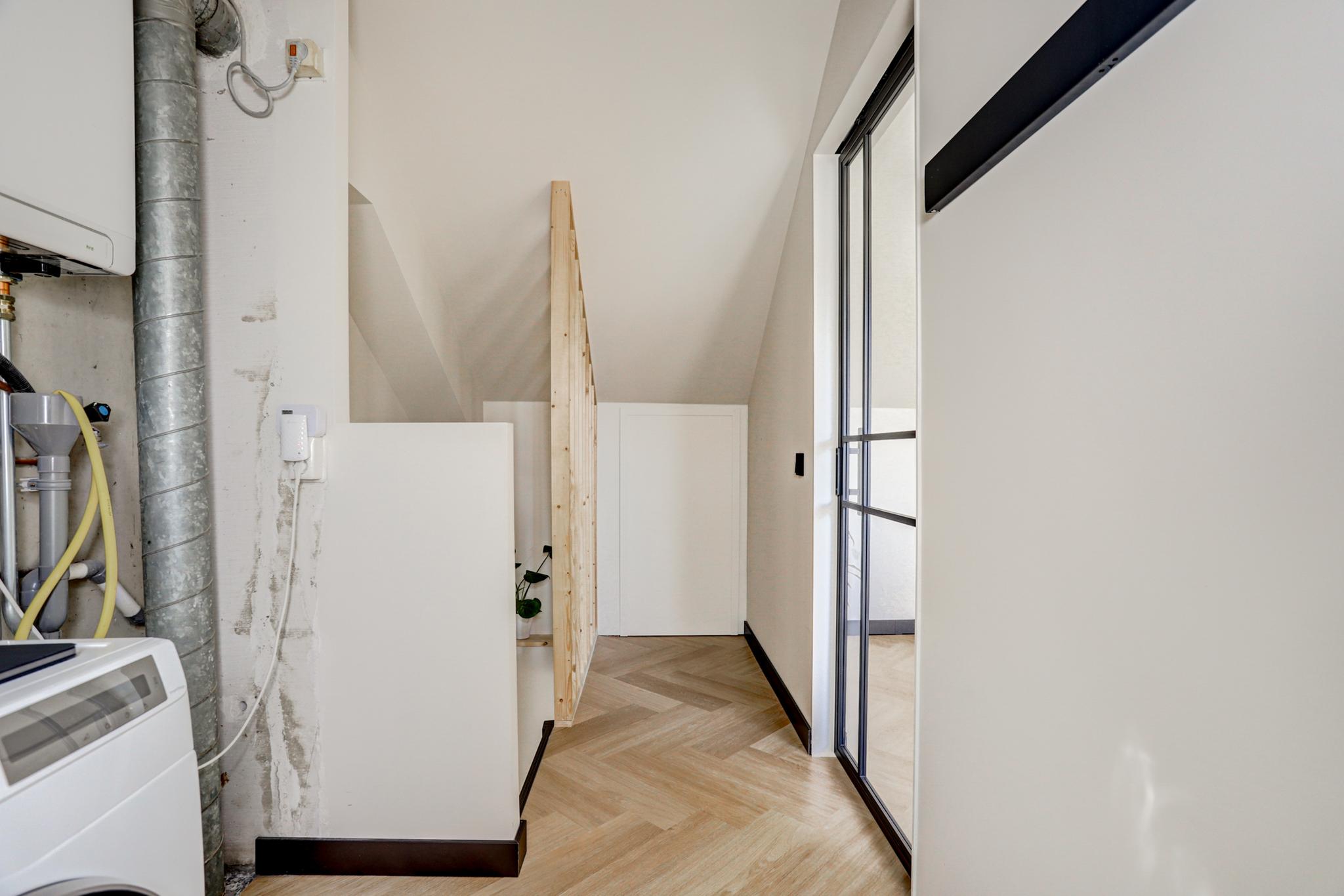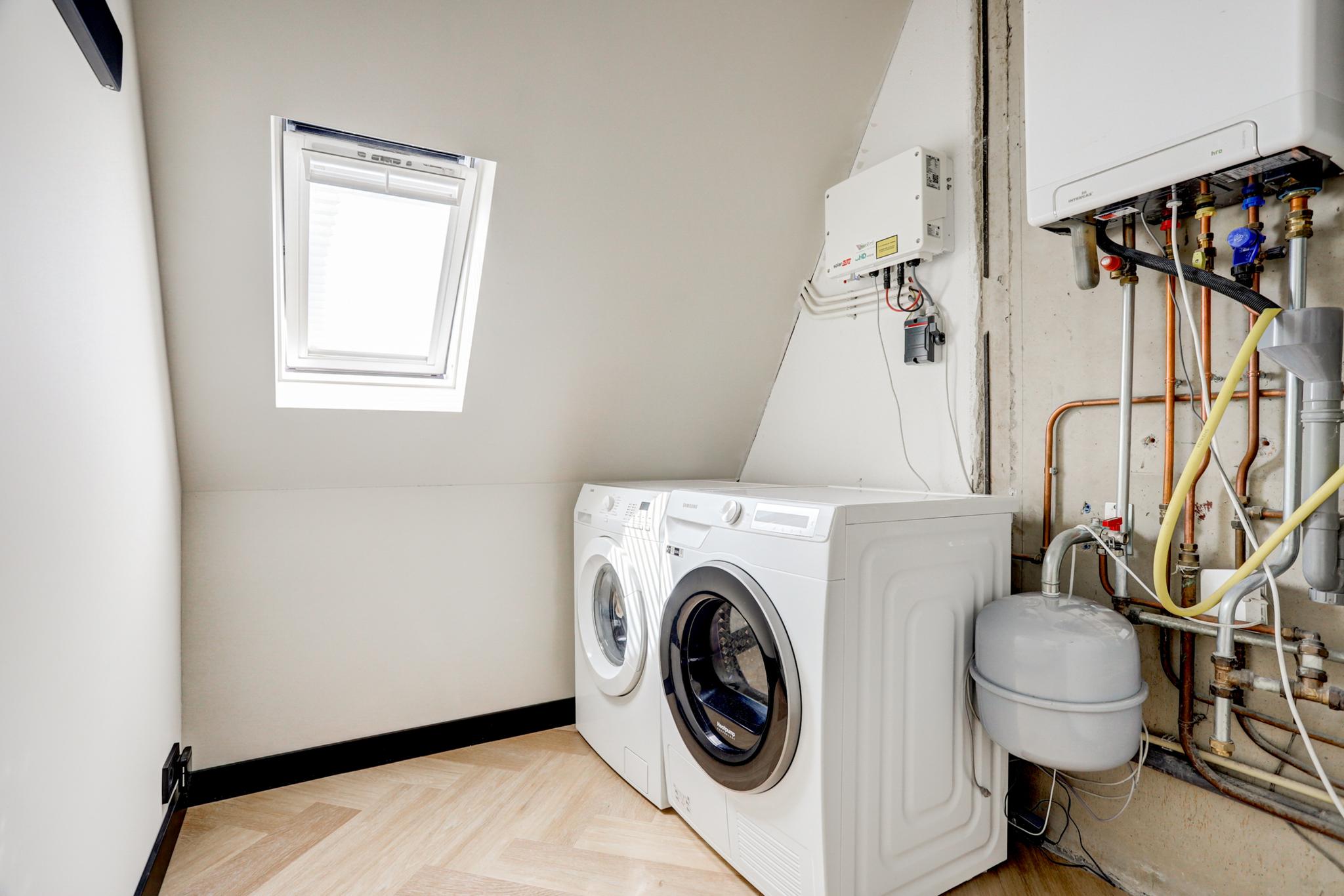 Tweede verdieping: voorzolder met wasmachine-aansluiting en cv-ketel (2017), zolderkamer met groot Velux dakraam.