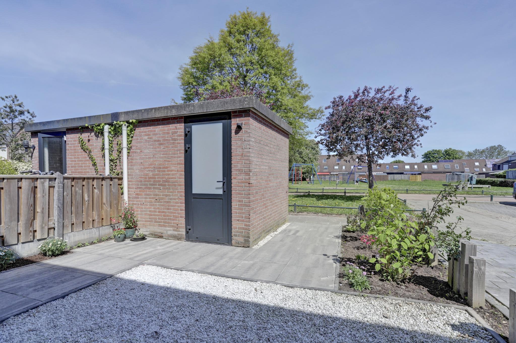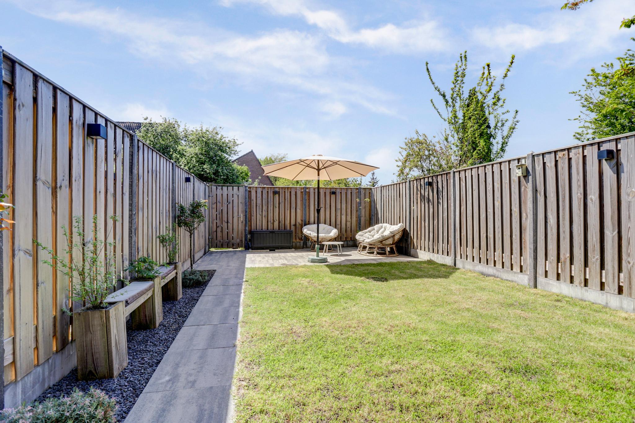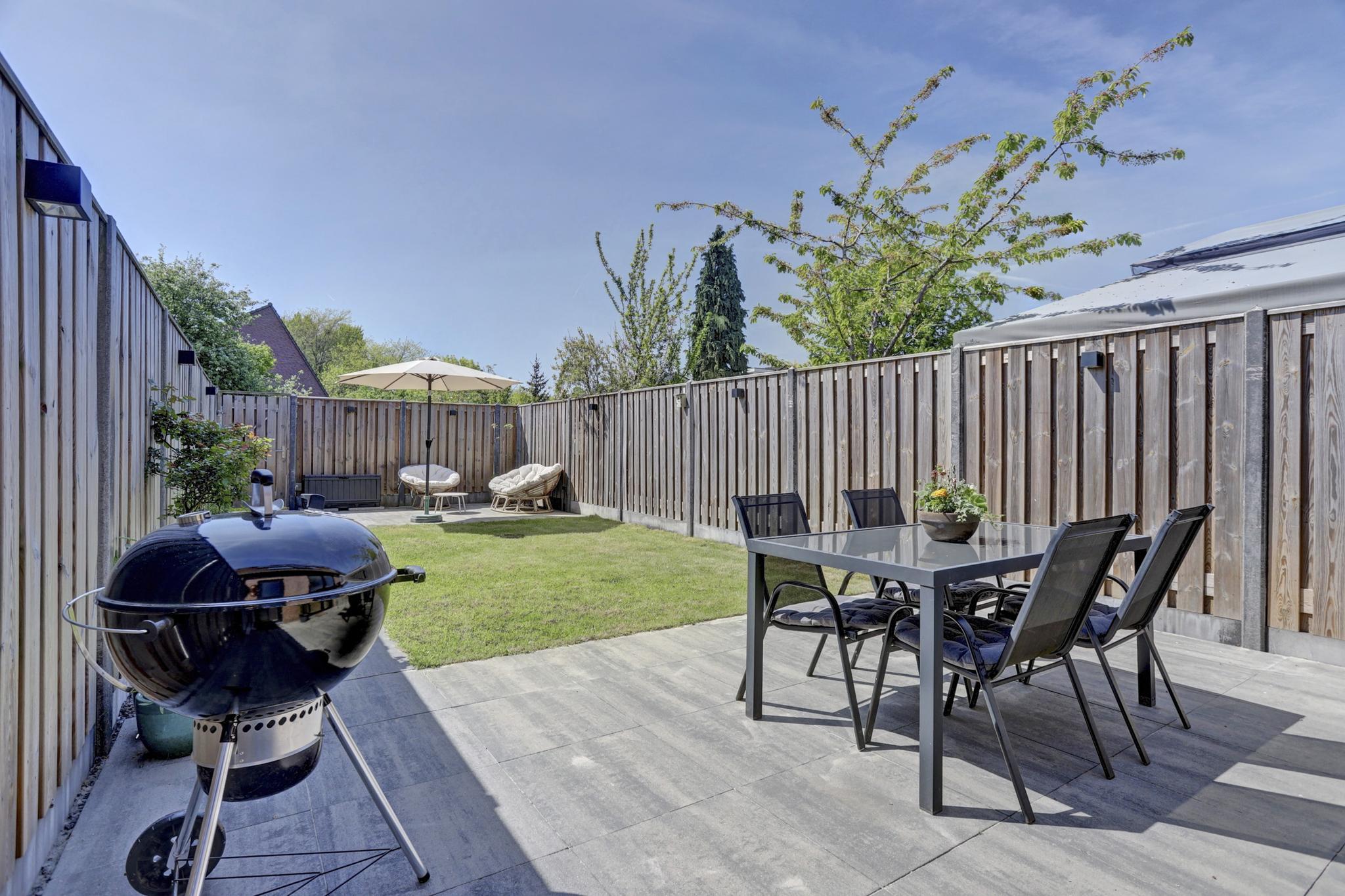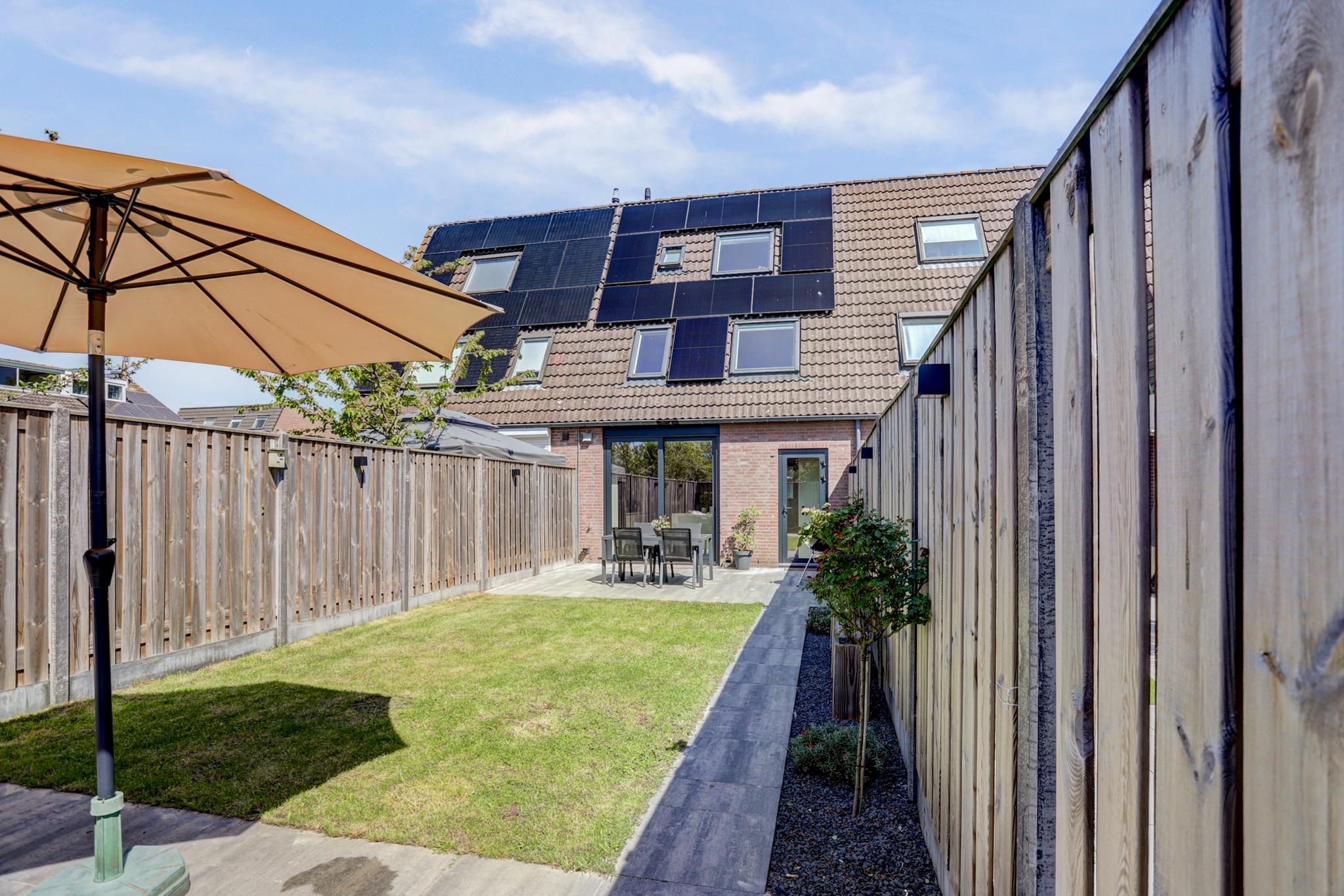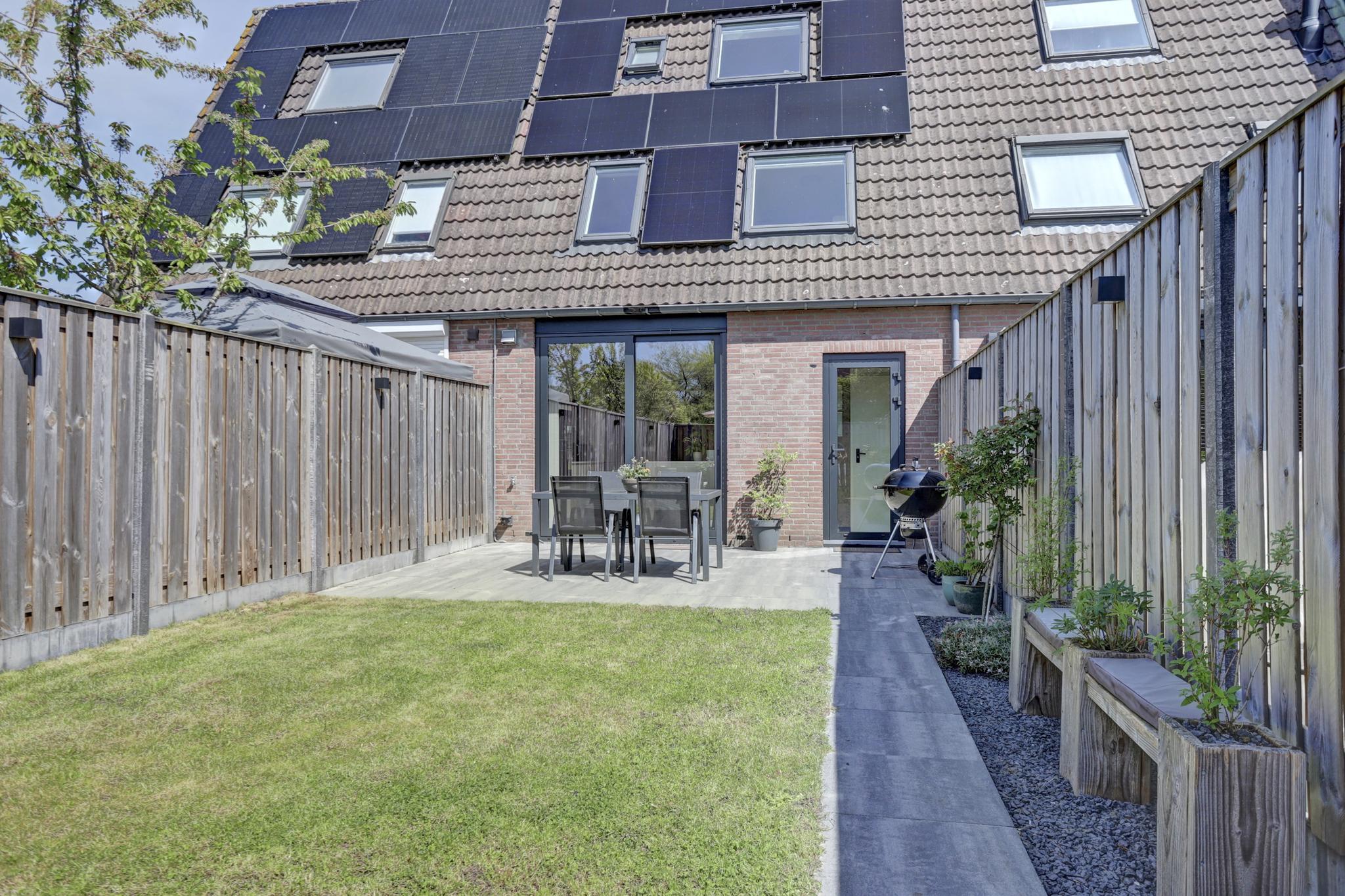 De achtertuin is gelegen op het zuidwesten en is circa 14 meter diep en voorzien van een achterom.