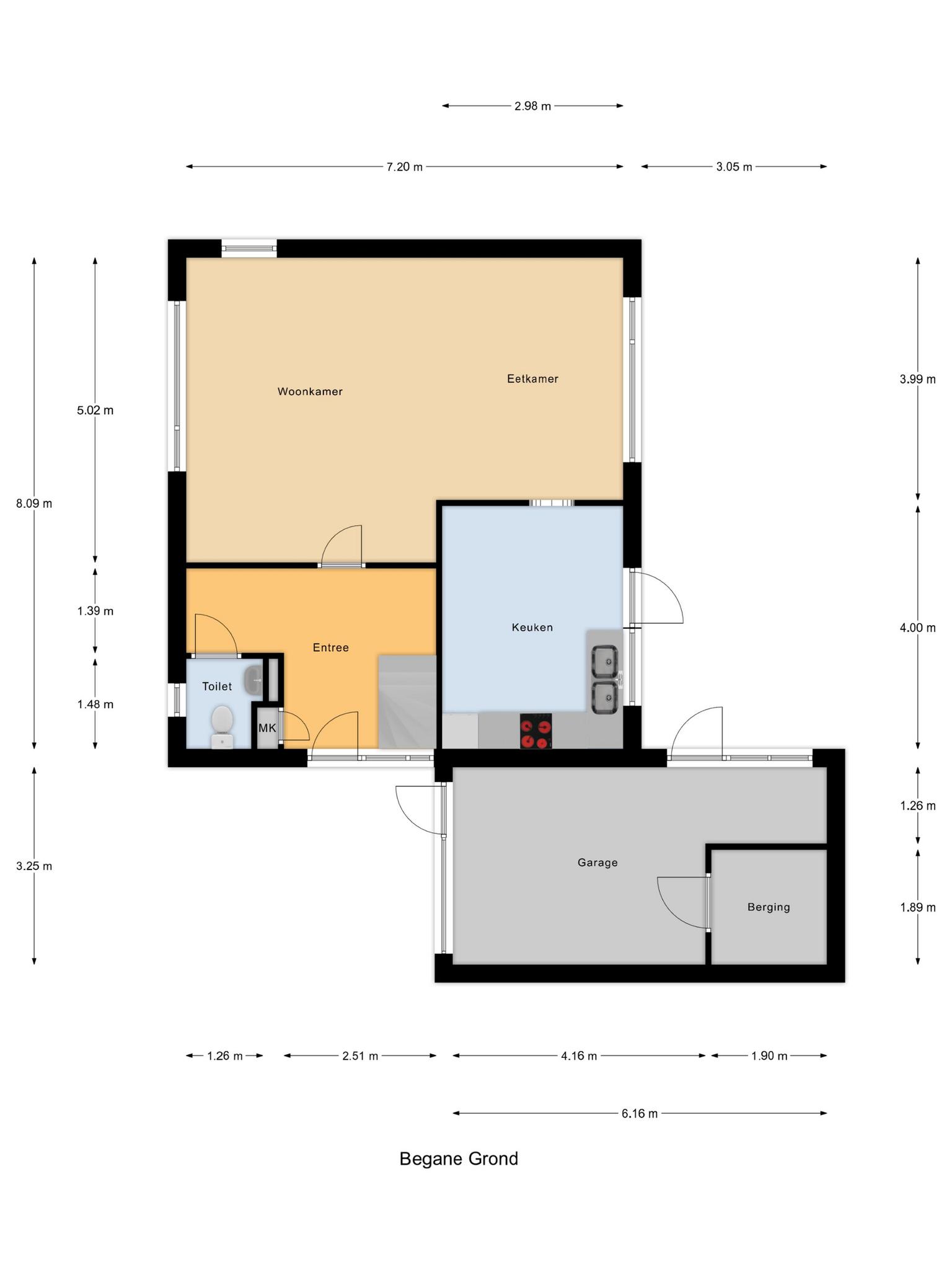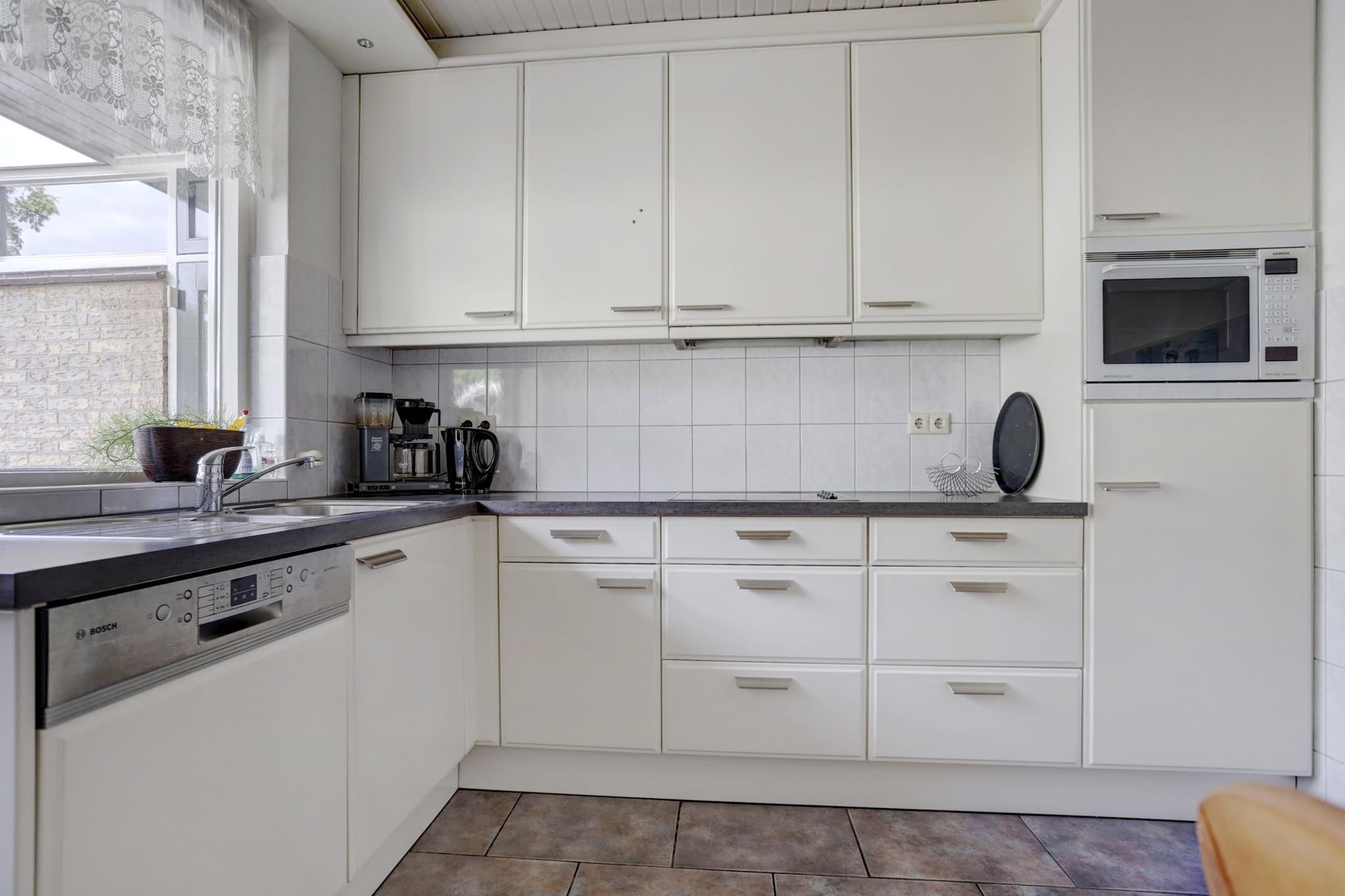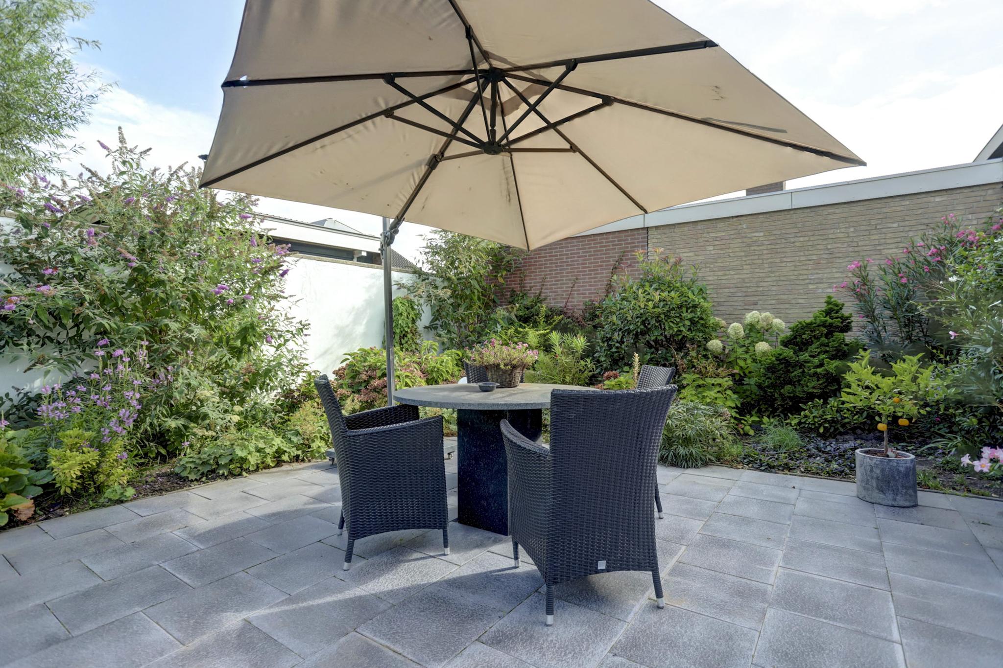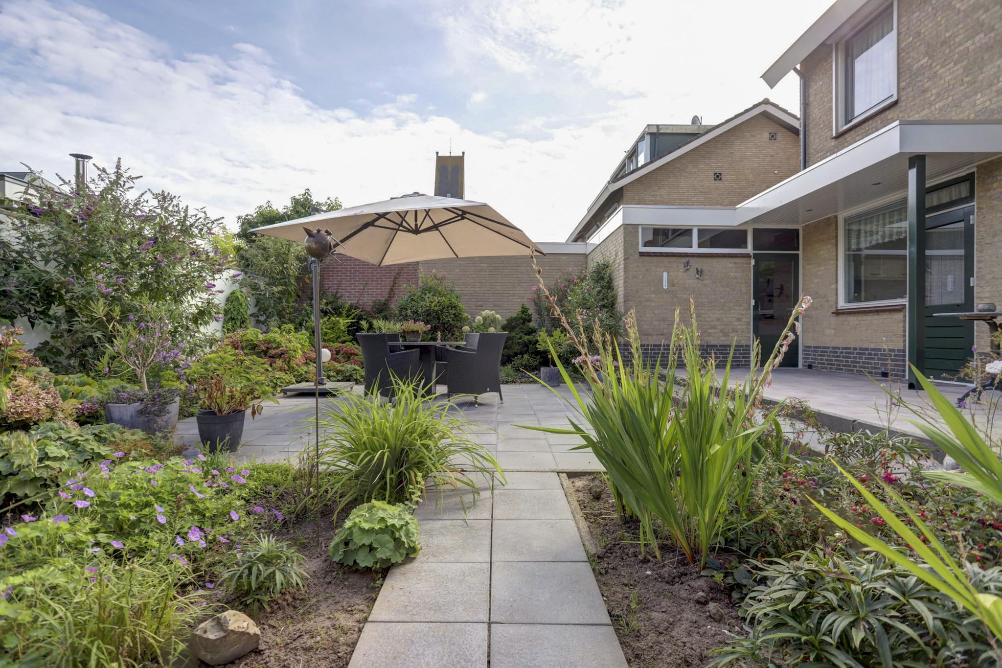 Begane grond: entree, hal met meterkast, toilet (wc met fonteintje), doorzon-woonkamer van 33 m2 met grote raampartijen en een airco-unit, half-open keuken met keurige inrichting inclusief diverse inbouwapparatuur zoals een vaatwasser, keramische kookplaat, koelkast, combimagnetron en close-in boiler. Vanuit de keuken is de weelderig beplante achtertuin bereikbaar. Deze ligt op het zuidoosten en is grofweg 10 meter diep en 16 meter breed en heeft een vrije en beschutte ligging. In de tuin staat een houten berging met overkapping (12 m2) Naast de woning is een stenen garage aangebouwd (circa 20 m2) die is voorzien van een kanteldeur met loopdeur. Voor de garage is een oprit aangelegd waar je twee auto’s kunt plaatsen.