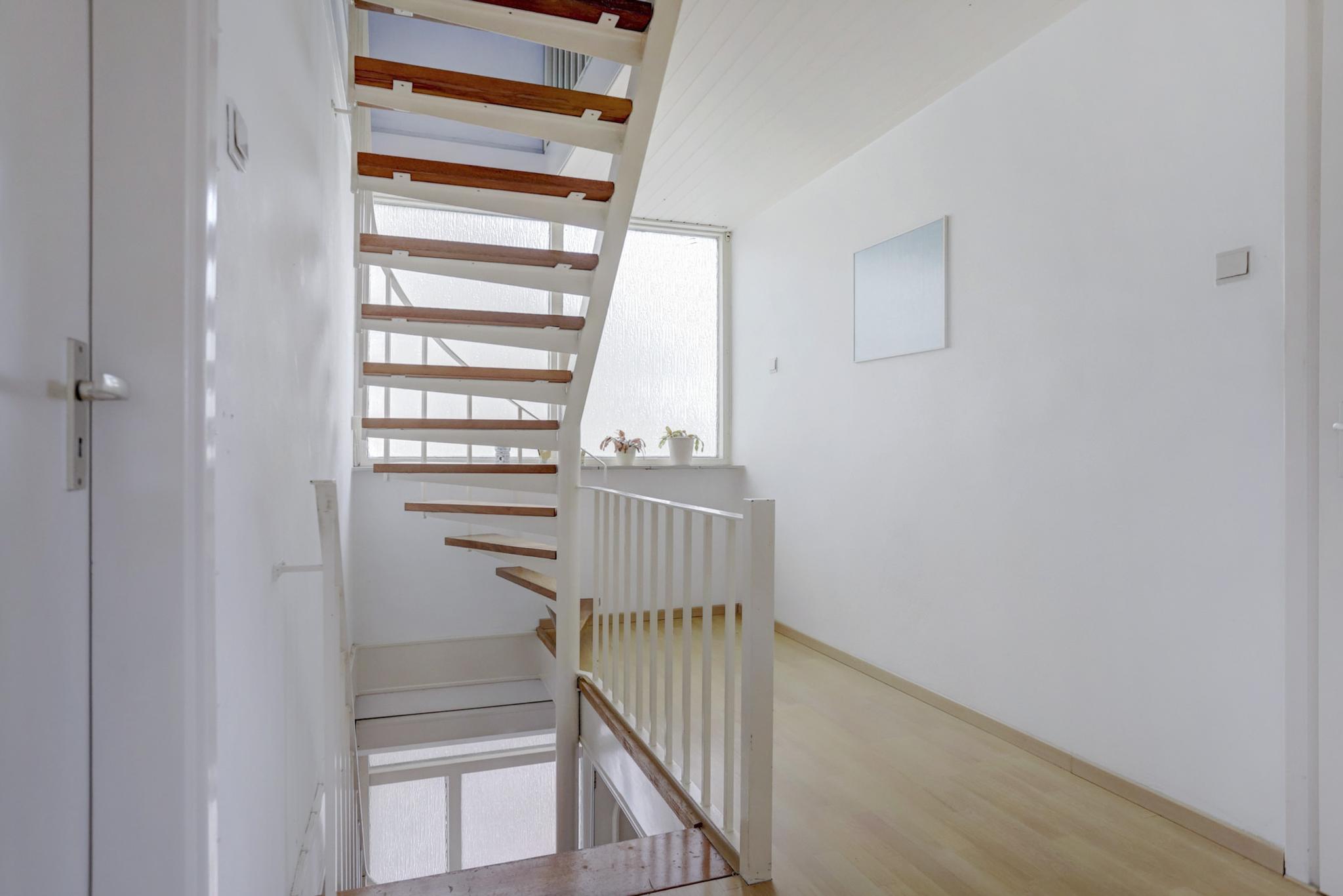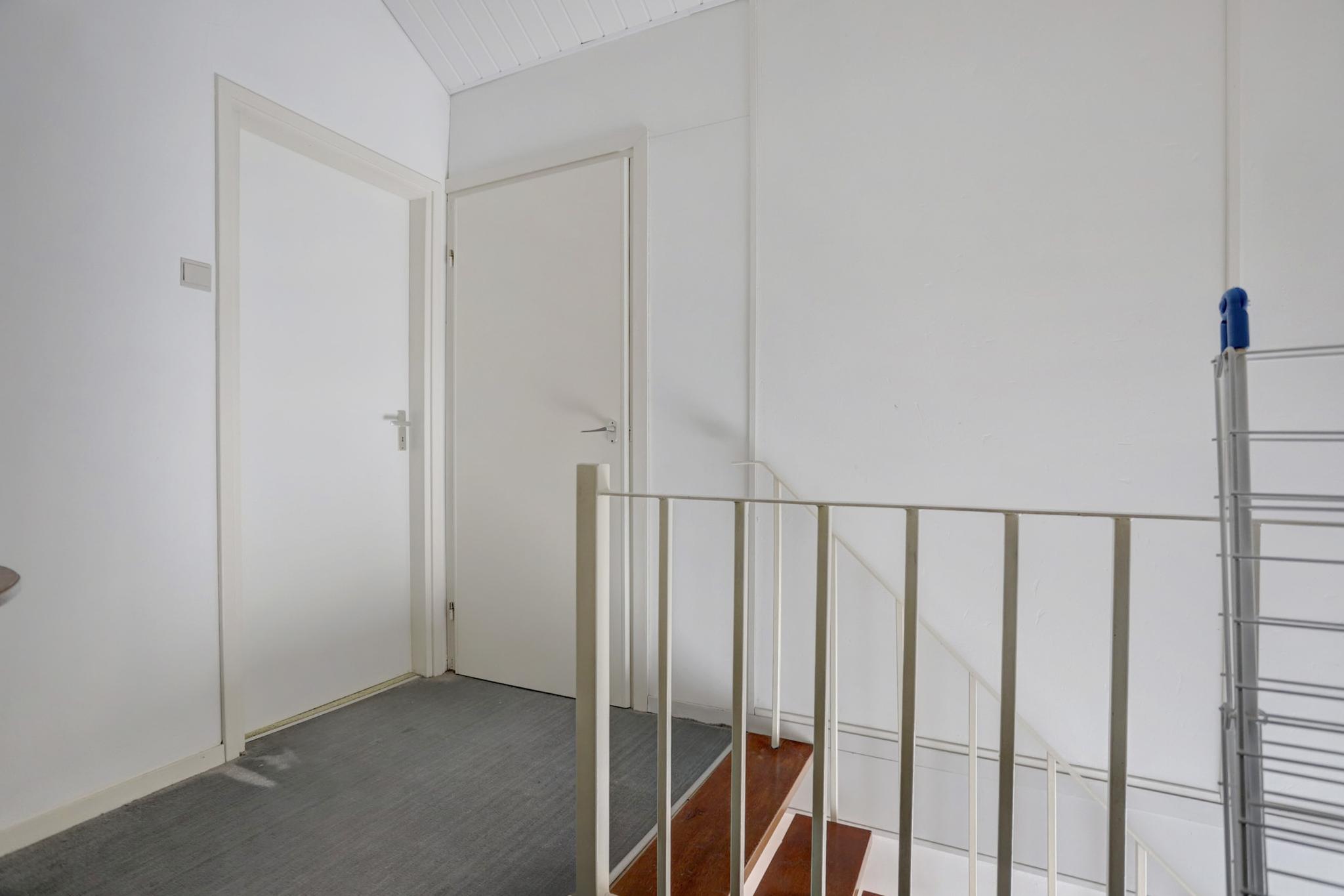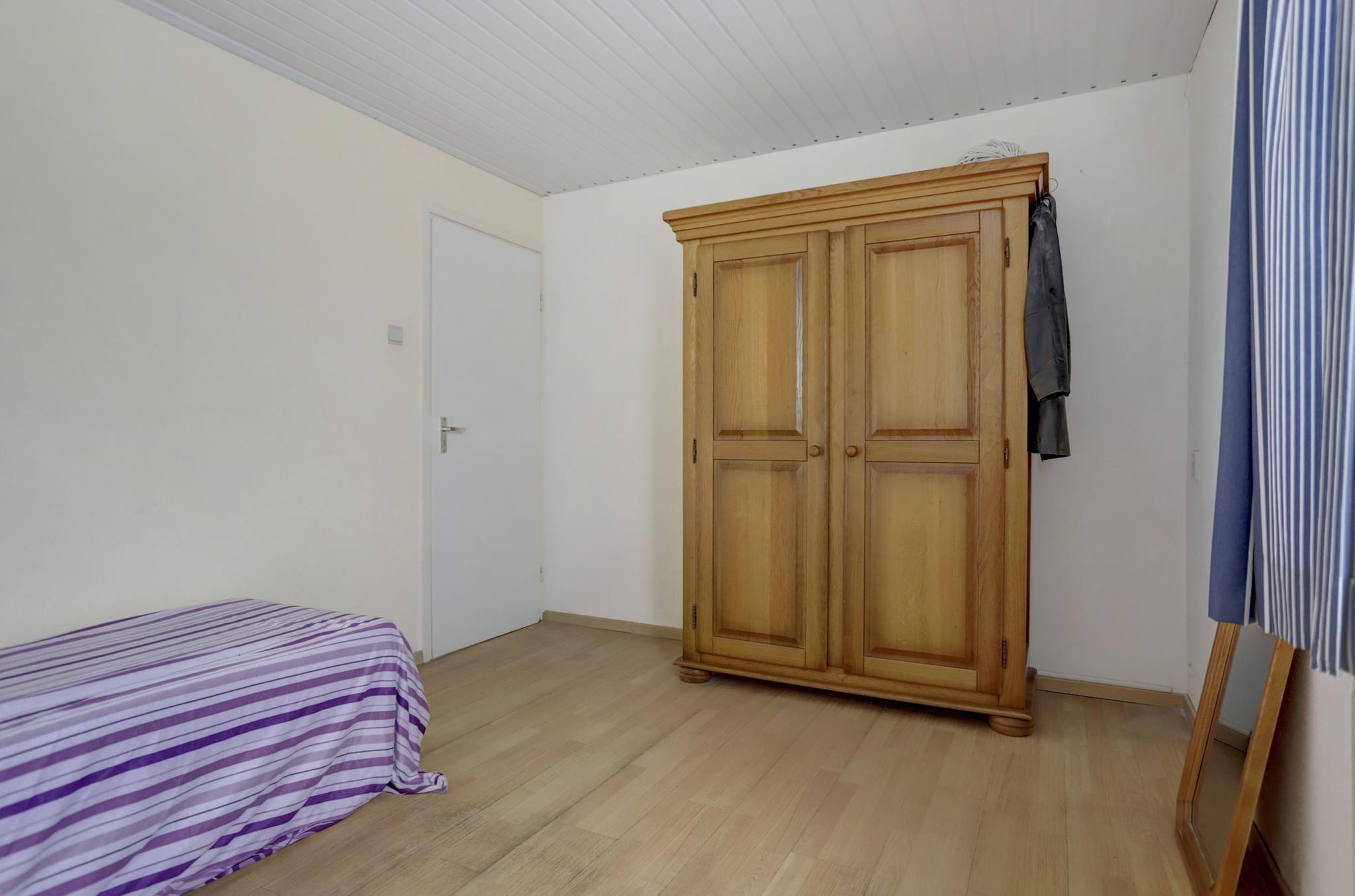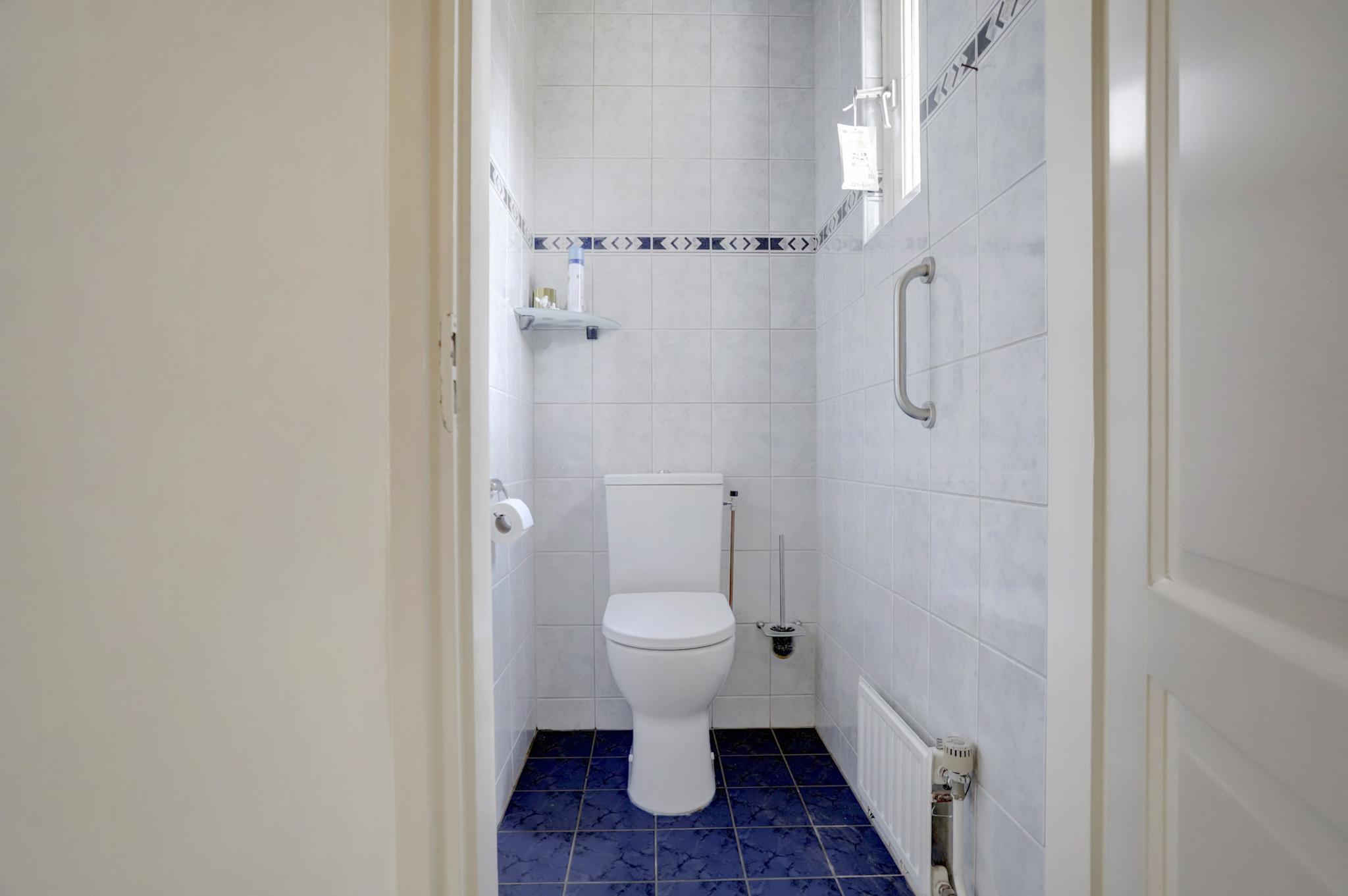 Tweede verdieping: via een vaste trap bereik je de voorzolder die voorzien is van een wasmachine-aansluiting, cv-ketel en de nodige bergruimte. Een strijkkamer met dakraam geeft nog meer bergruimte. Tevens is op deze verdieping de vierde slaapkamer die is voorzien van knieschotten met bergruimte en een vaste wastafel.
