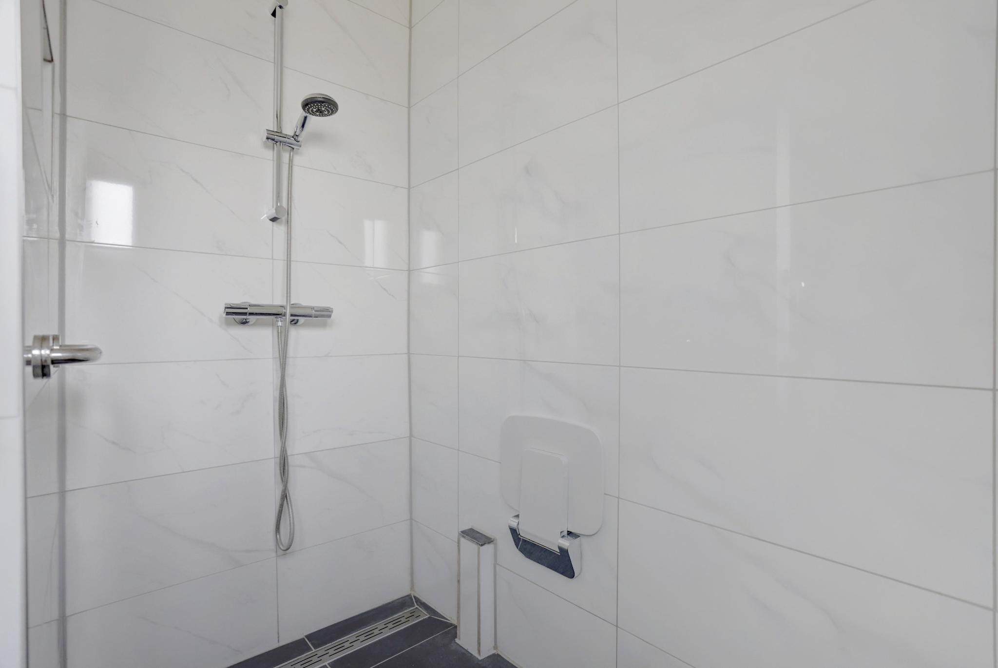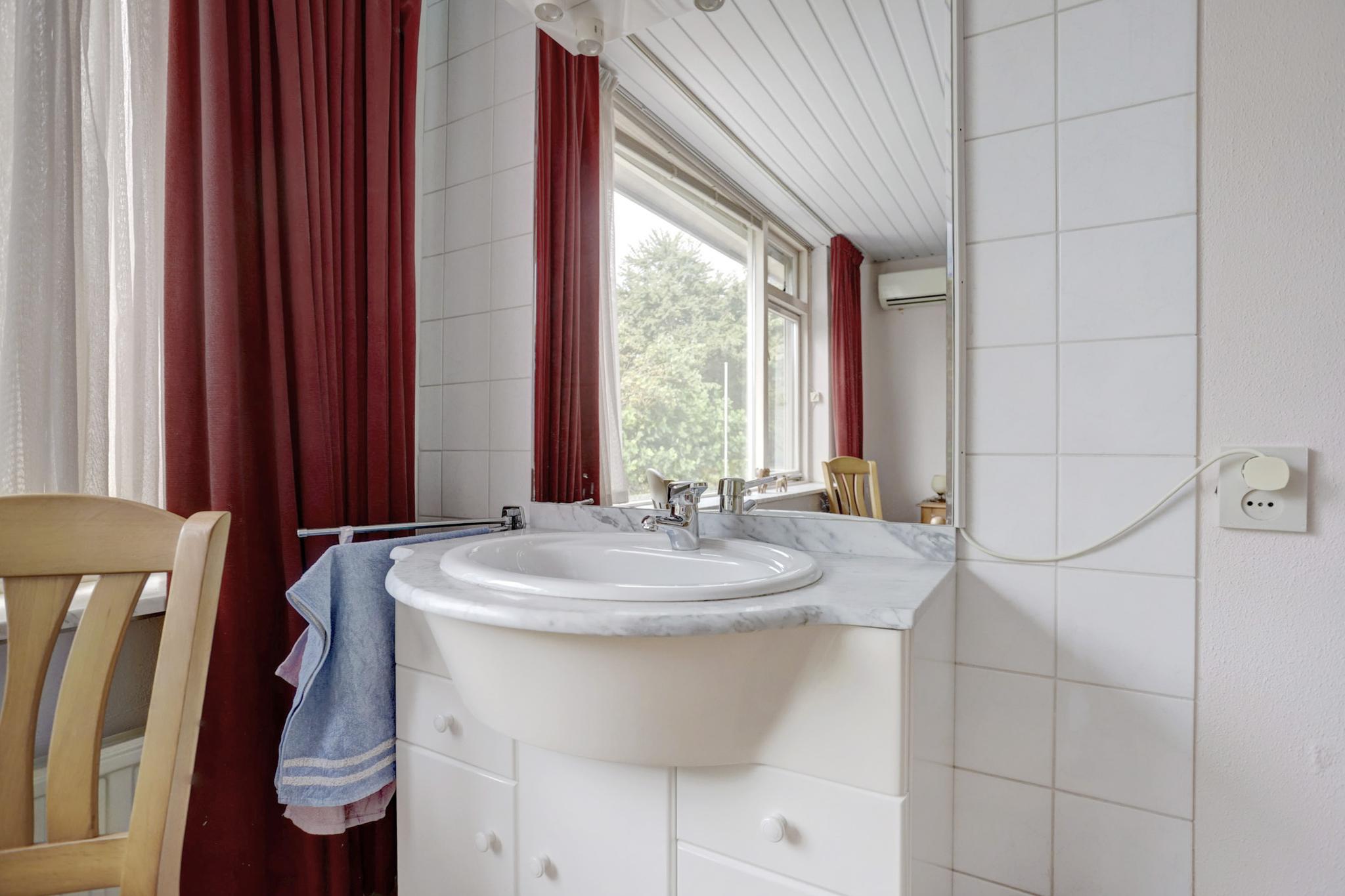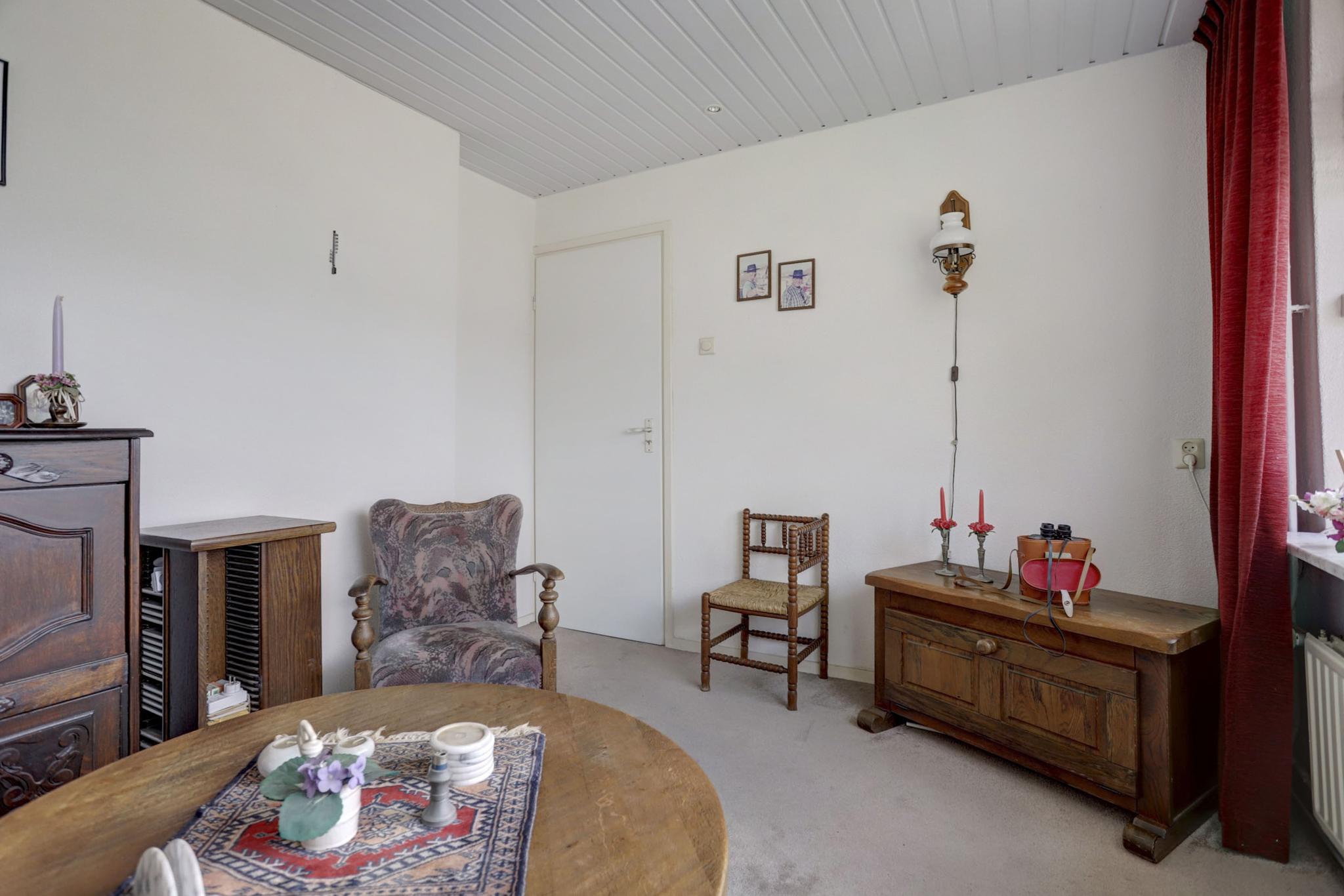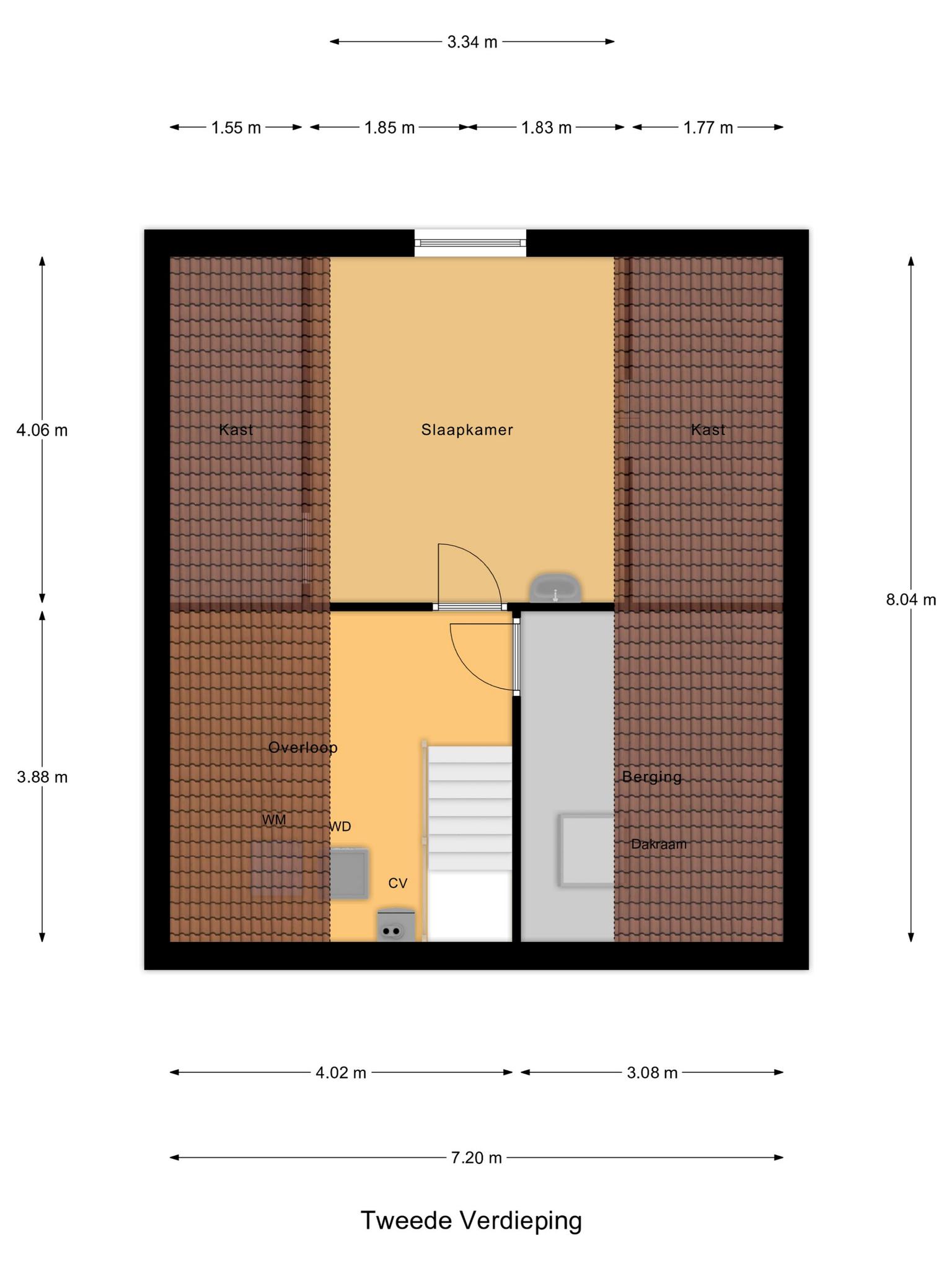 Tweede verdieping: via een vaste trap bereik je de voorzolder die voorzien is van een wasmachine-aansluiting, cv-ketel en de nodige bergruimte. Een strijkkamer met dakraam geeft nog meer bergruimte. Tevens is op deze verdieping de vierde slaapkamer die is voorzien van knieschotten met bergruimte en een vaste wastafel.