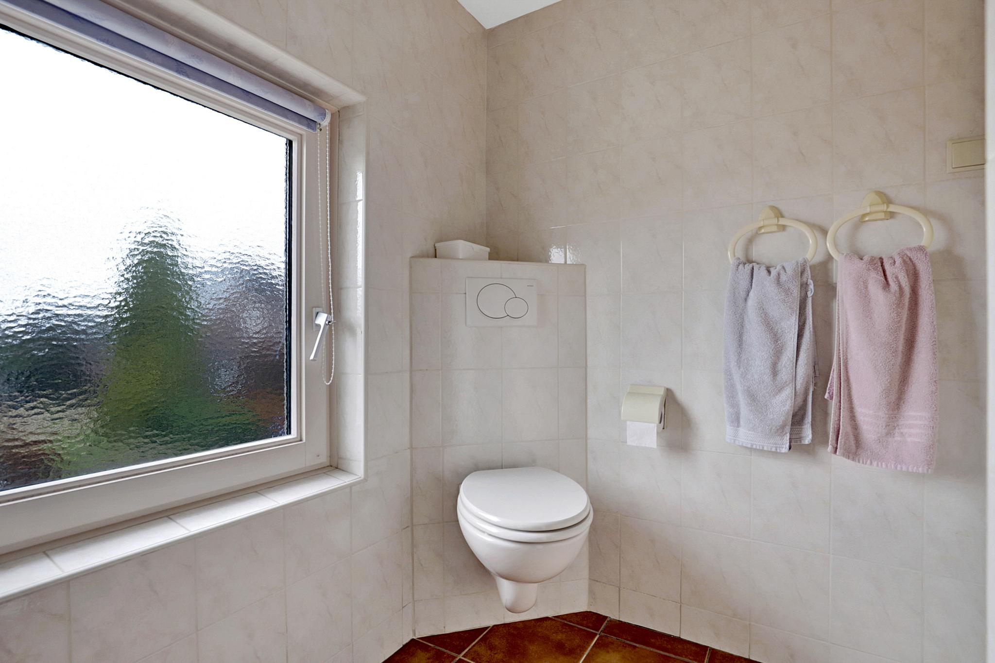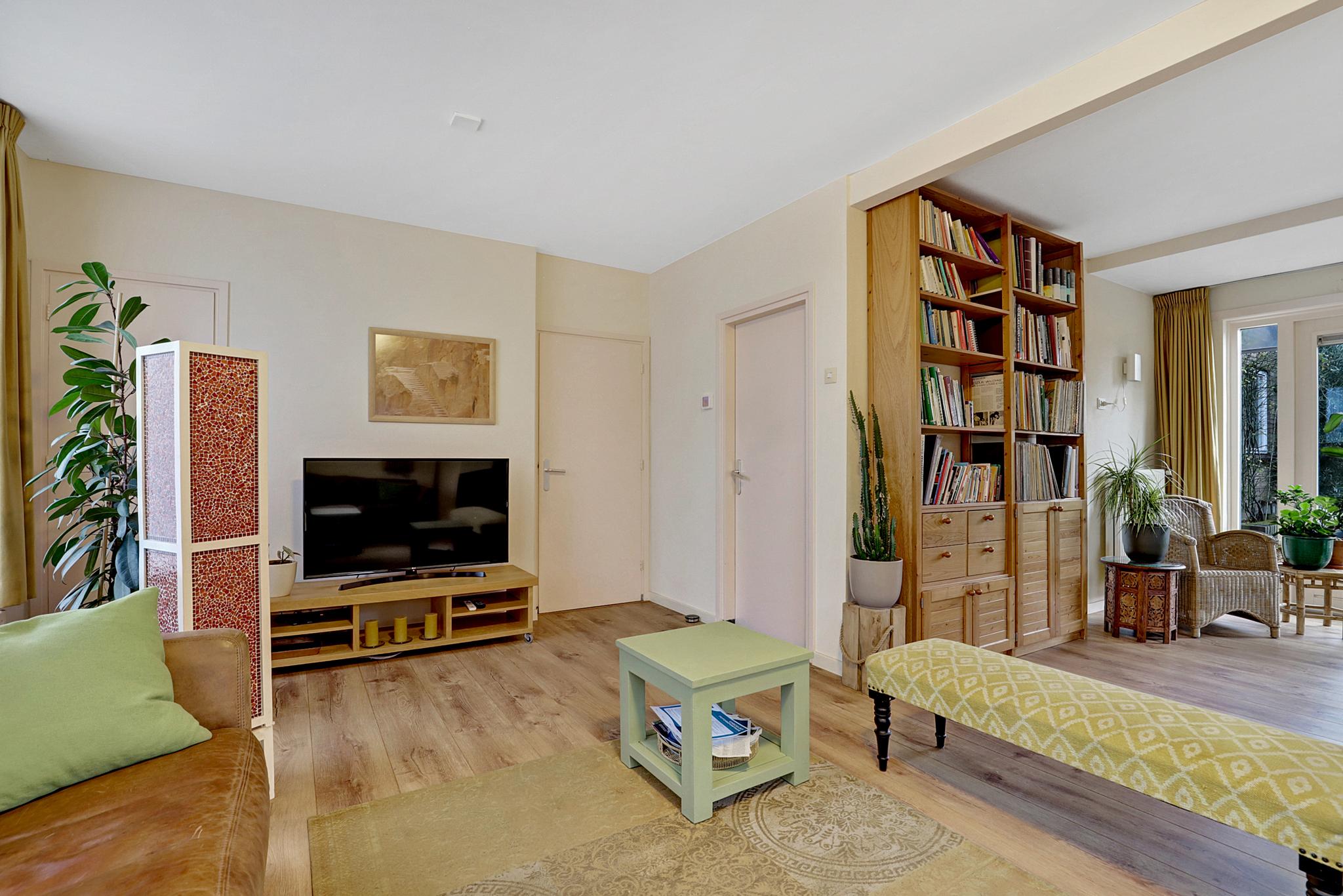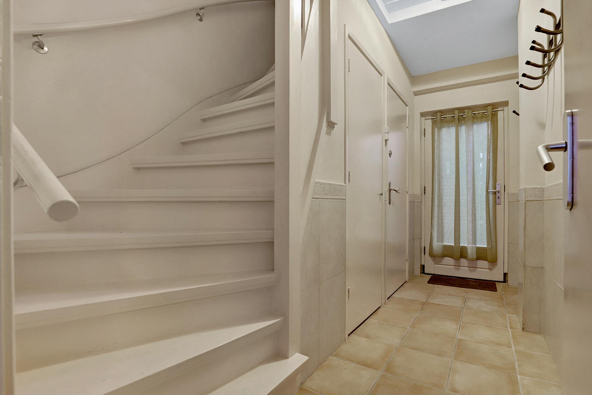 Vanuit de woonkamer is de gang bereikbaar waaraan de verdiepte trapkast en het toilet grenzen. Daarnaast is er nog een deur naar de achtertuin.