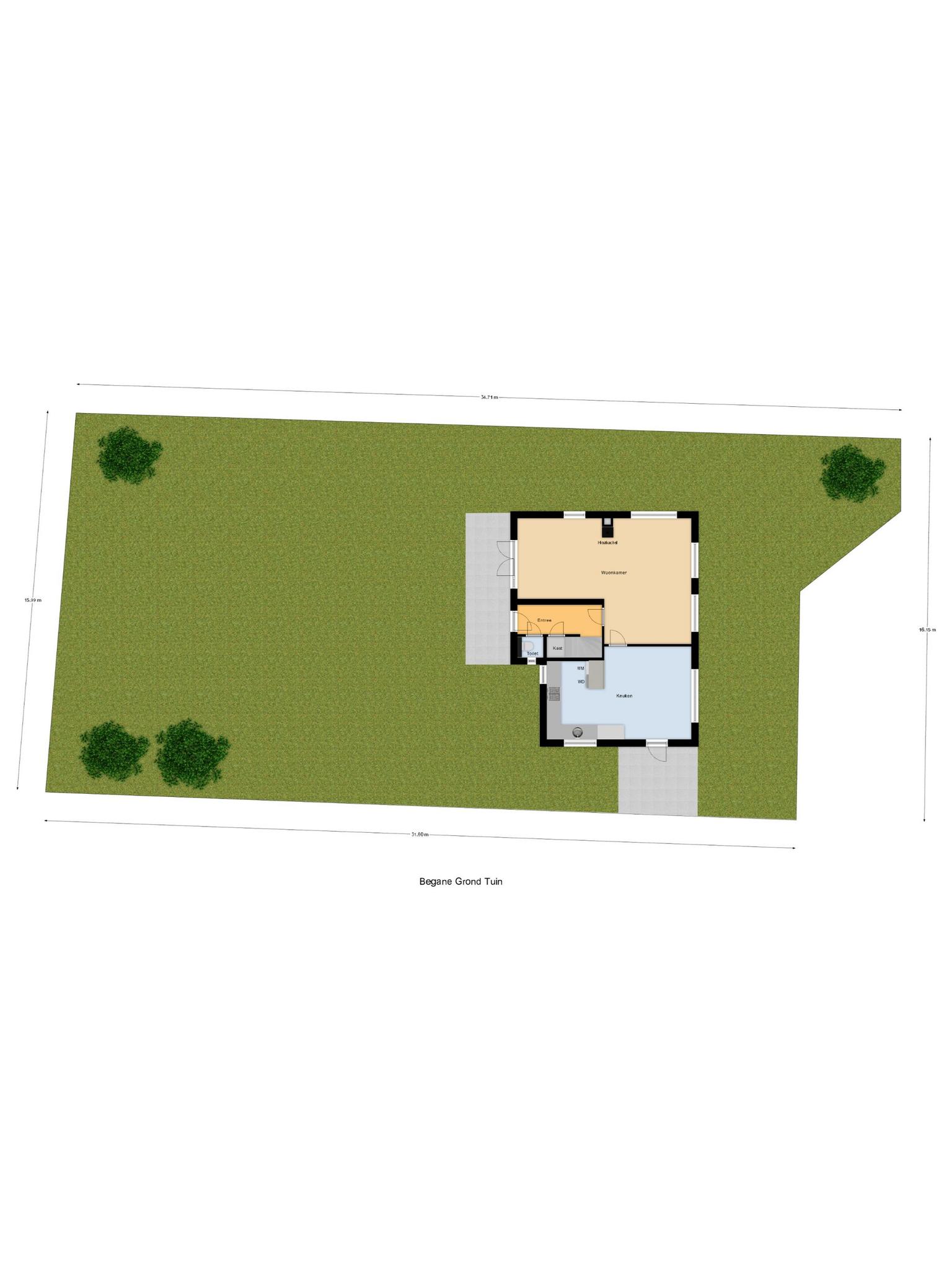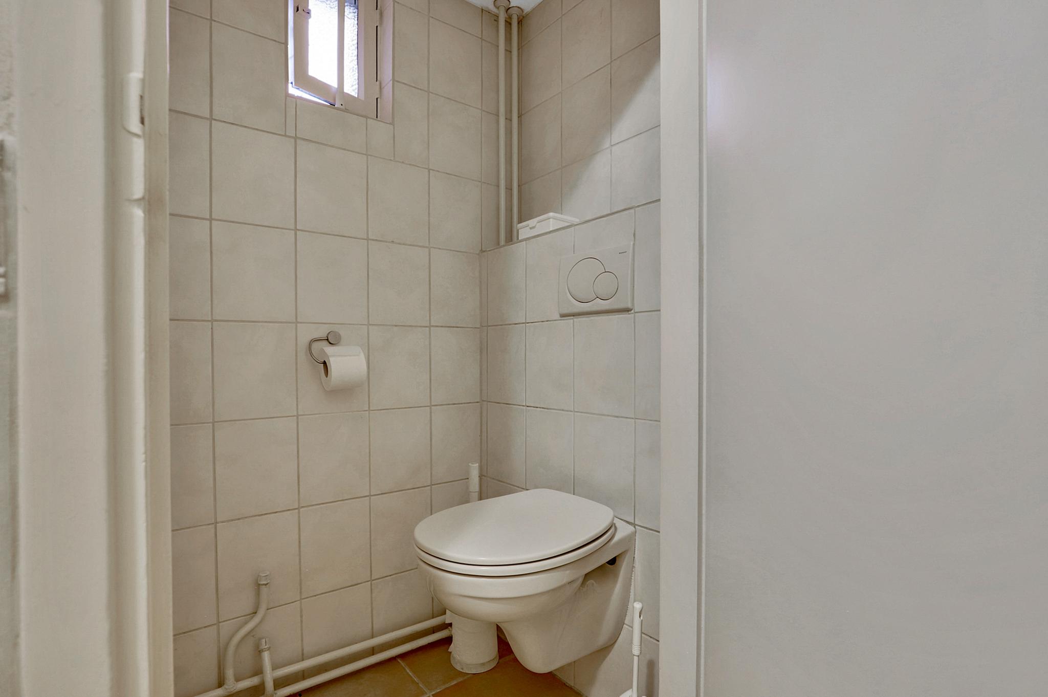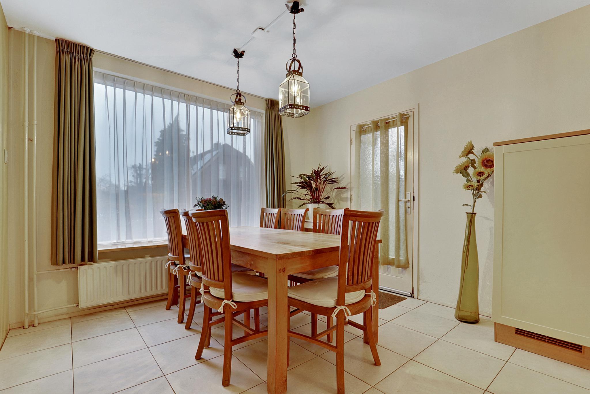 Vanuit de woonkamer is de gang bereikbaar waaraan de verdiepte trapkast en het toilet grenzen. Daarnaast is er nog een deur naar de achtertuin.