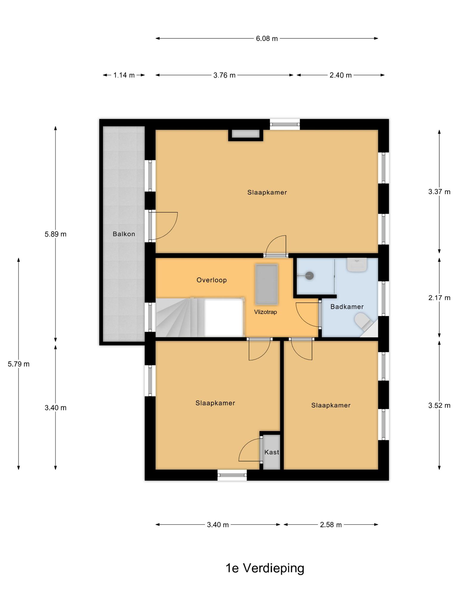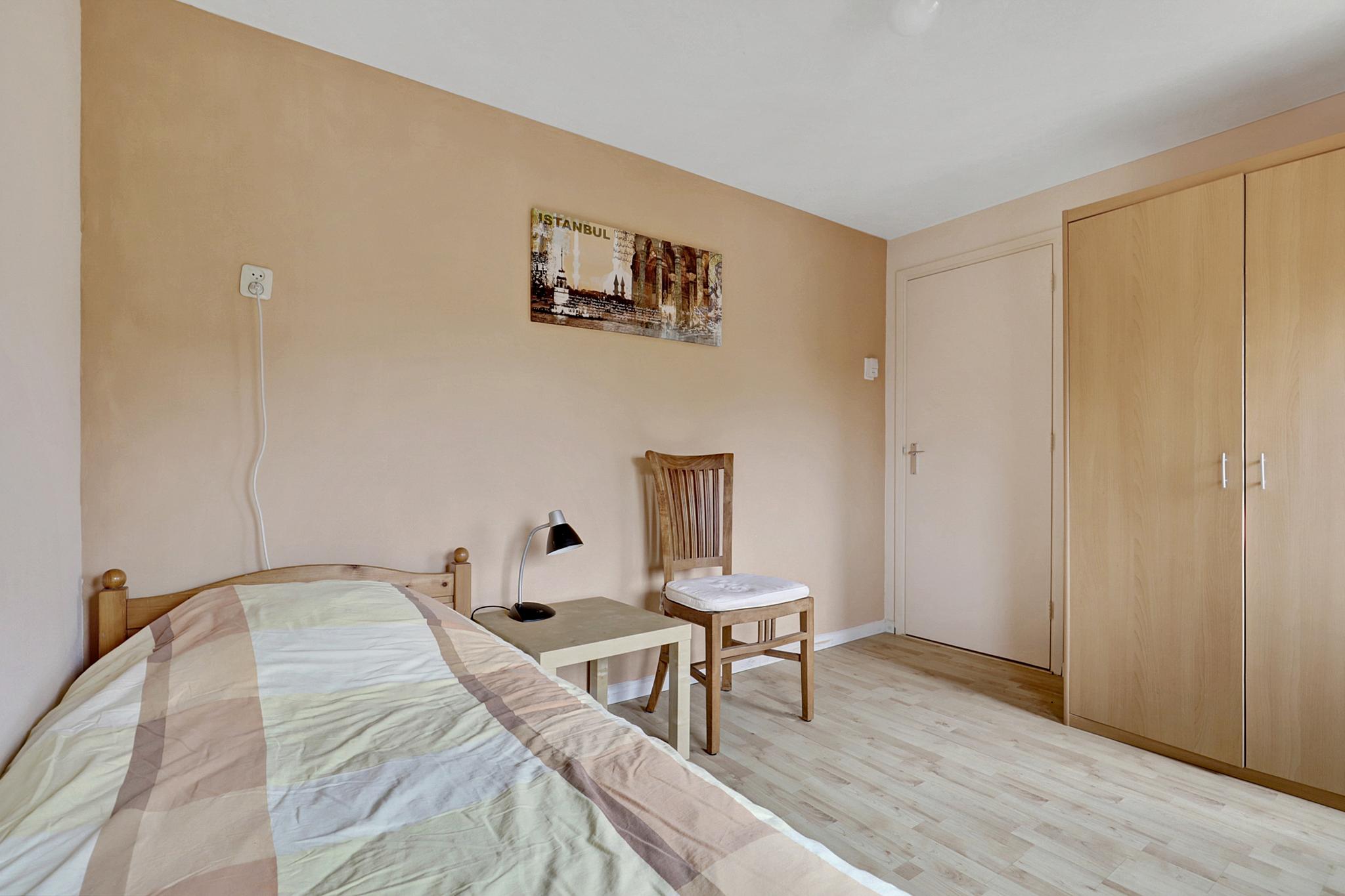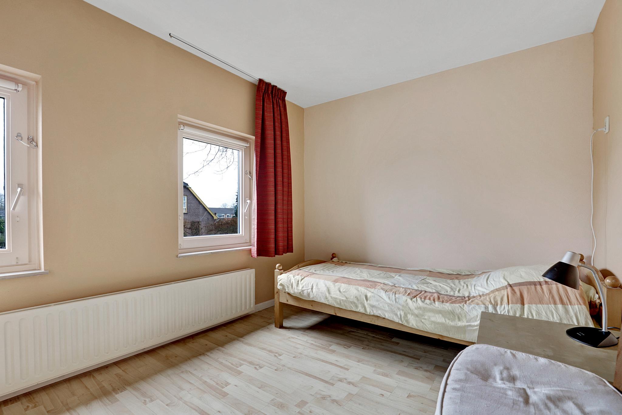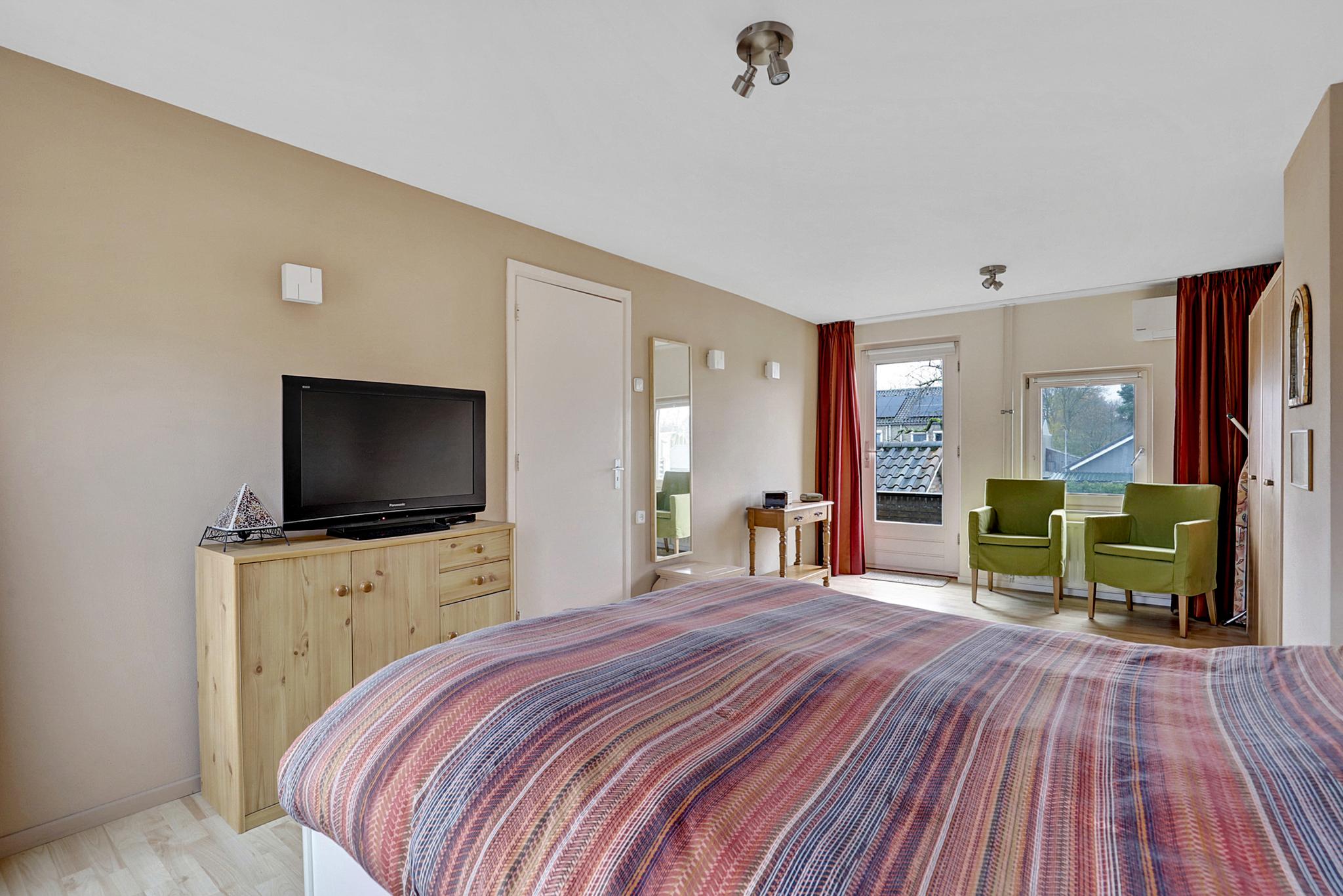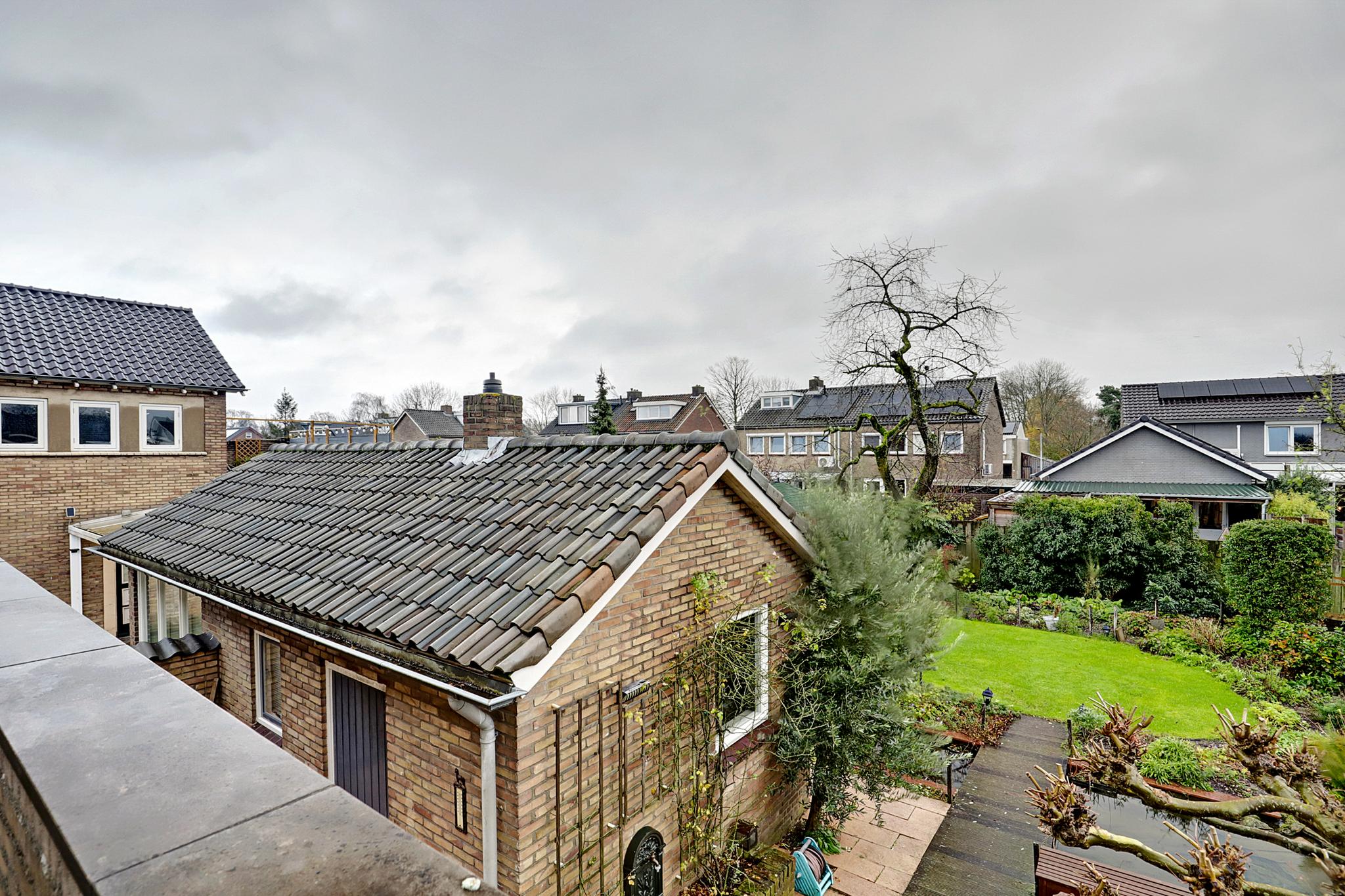 Eerste verdieping: overloop met luik naar de vliering. De badkamer is voorzien van een toilet, wastafel en douche. Verder zijn er drie slaapkamers; één kamer is voorzien van een vaste kast, terwijl de grootste kamer toegang biedt tot een balkon aan de achterzijde van de woning. Deze kamer is voorzien van een airco en is ontstaan uit het samenvoegen van twee kamers; het is goed mogelijk de originele indeling weer terug te brengen zodat er weer vier slaapkamers zijn.