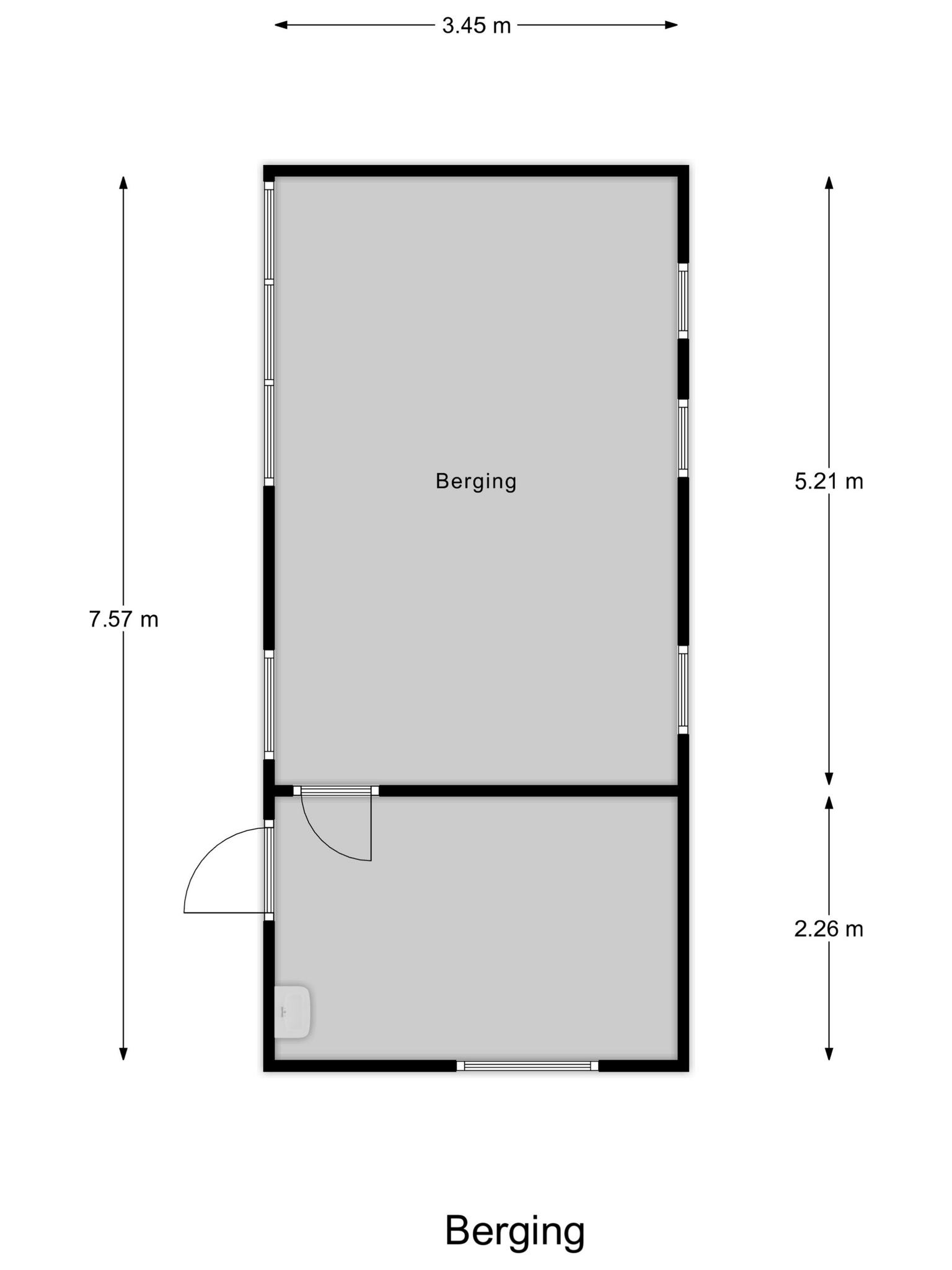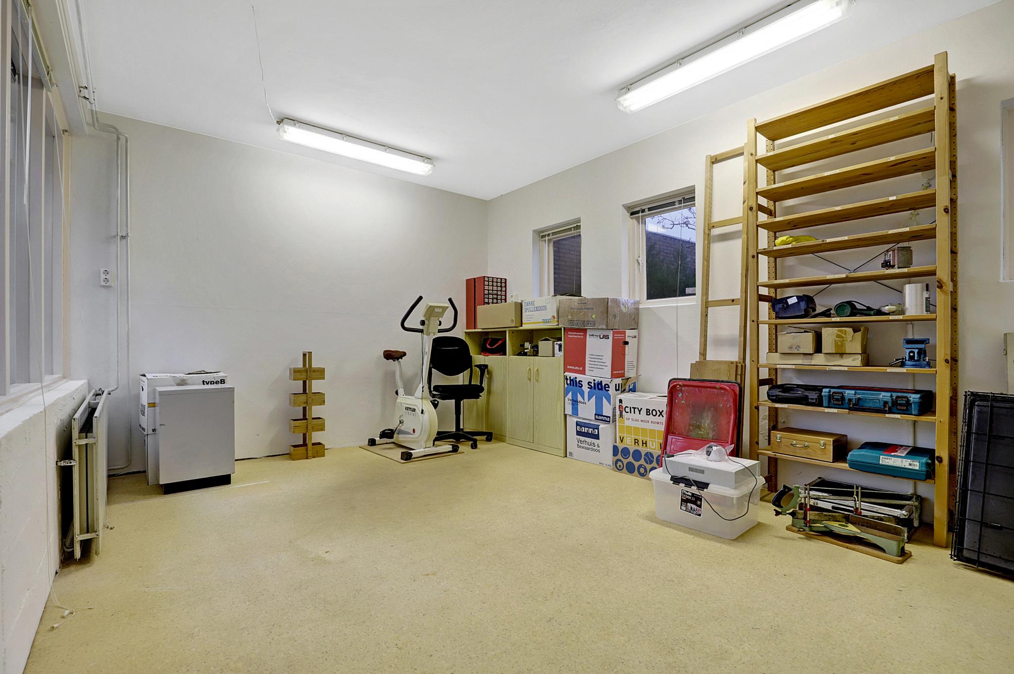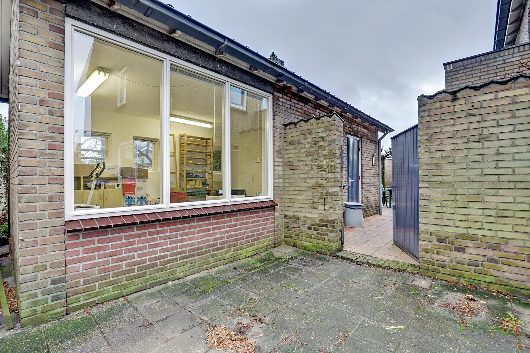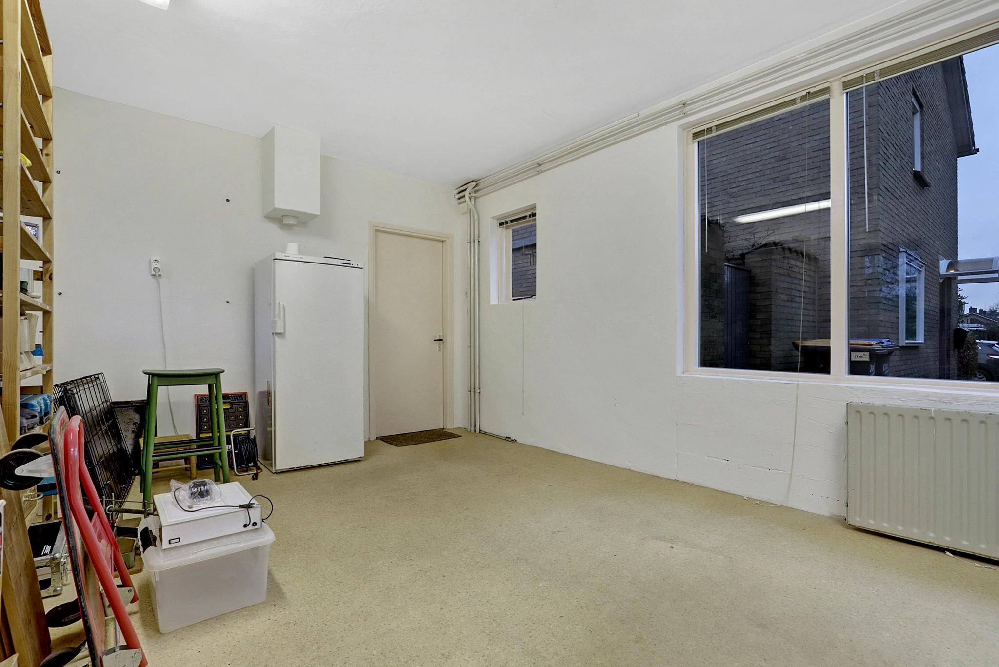 De in spouw gebouwde berging is ca. 26 m2 groot en heeft een voorportaal met de cv-ketel (Intergas, 2024) en een aparte hobbykamer. Naast de woning ligt nog een oprit die geschikt is voor 1 auto.