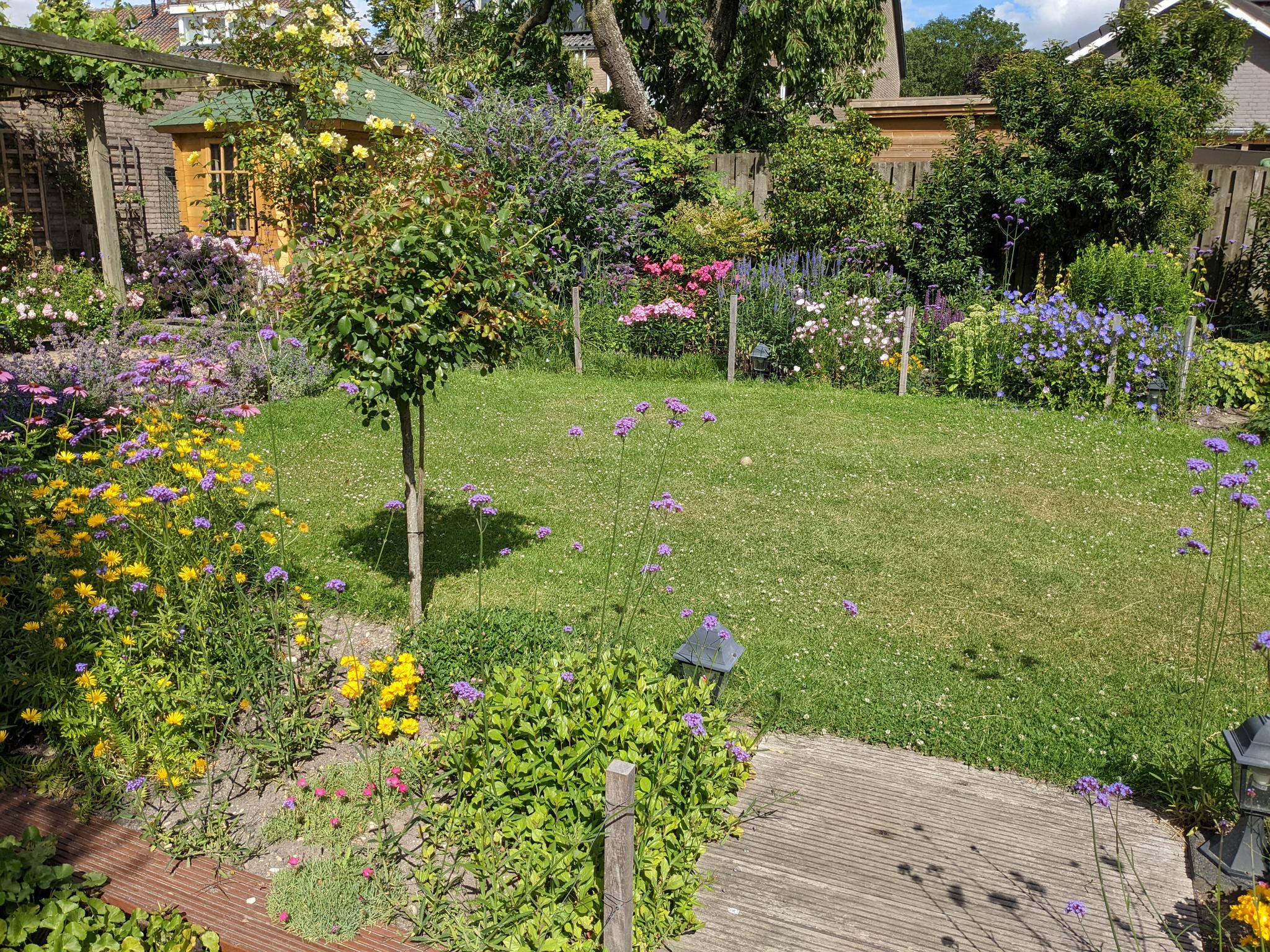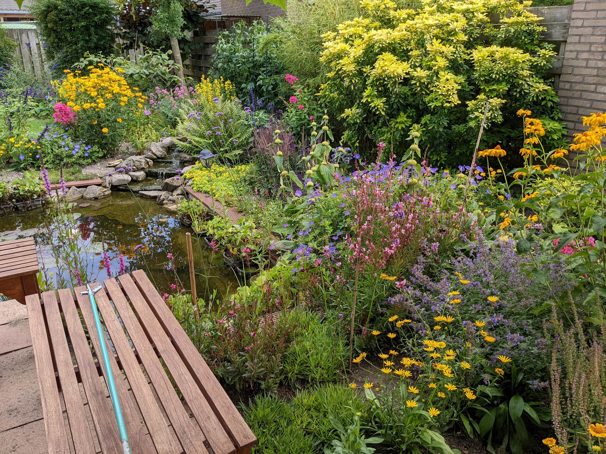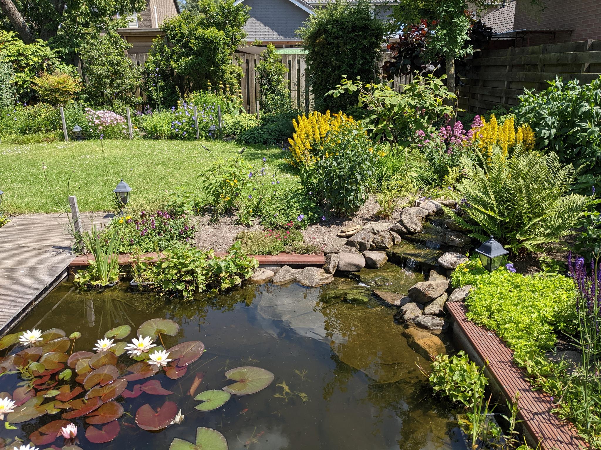 De tuin is prachtig aangelegd en voorzien van meerdere terrassen, een vijver, een tuinhuis en een puls ten behoeve van grondwater besproeiing. De tuin ligt op het oosten en biedt veel privacy.